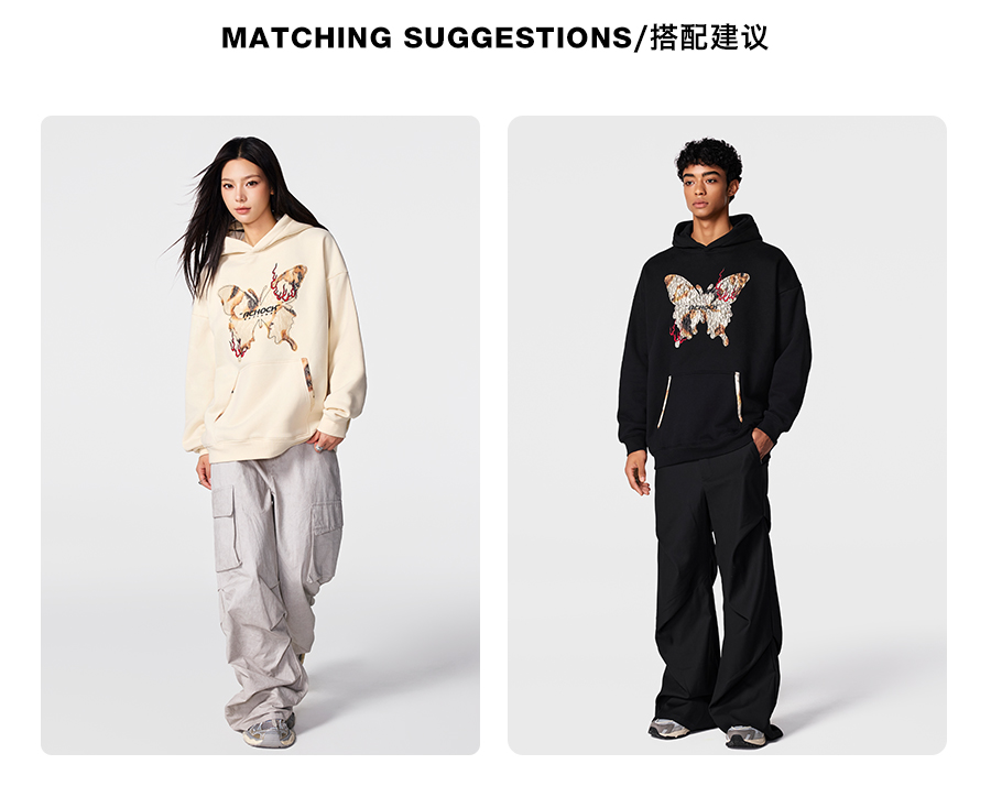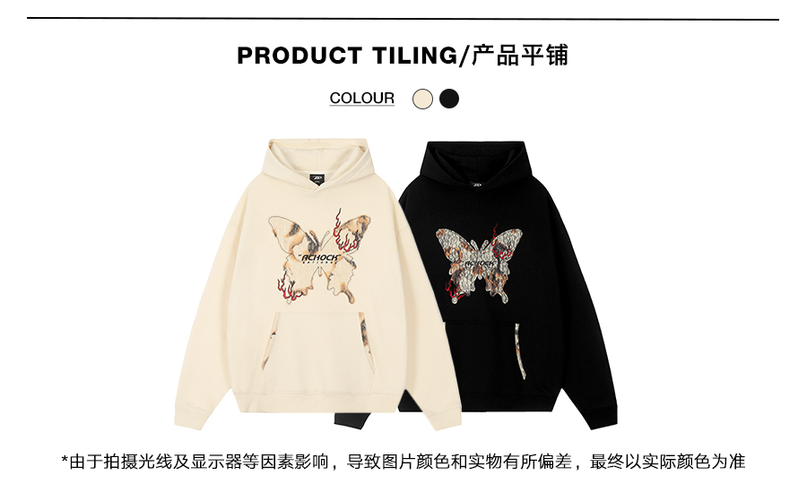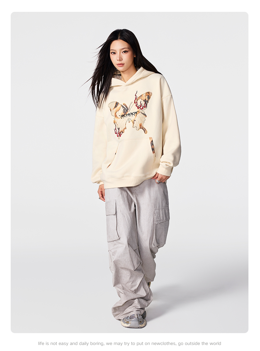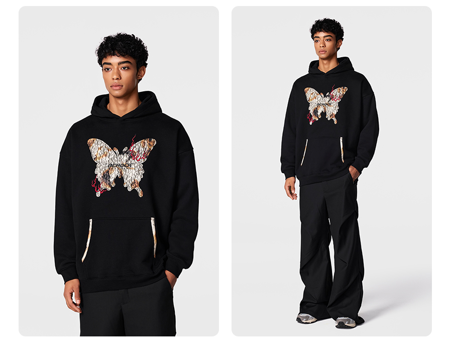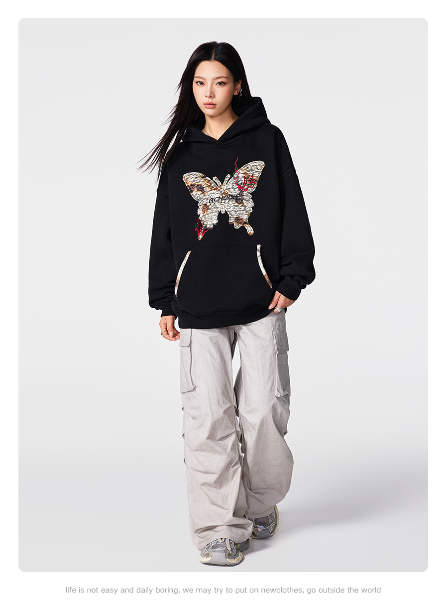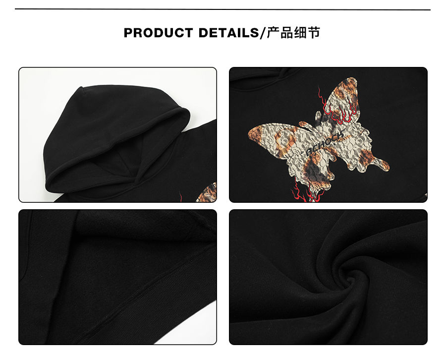 【Achock官方店】蝴蝶烧花蕾丝贴布刺绣连帽卫衣美式潮牌帽衫卫衣