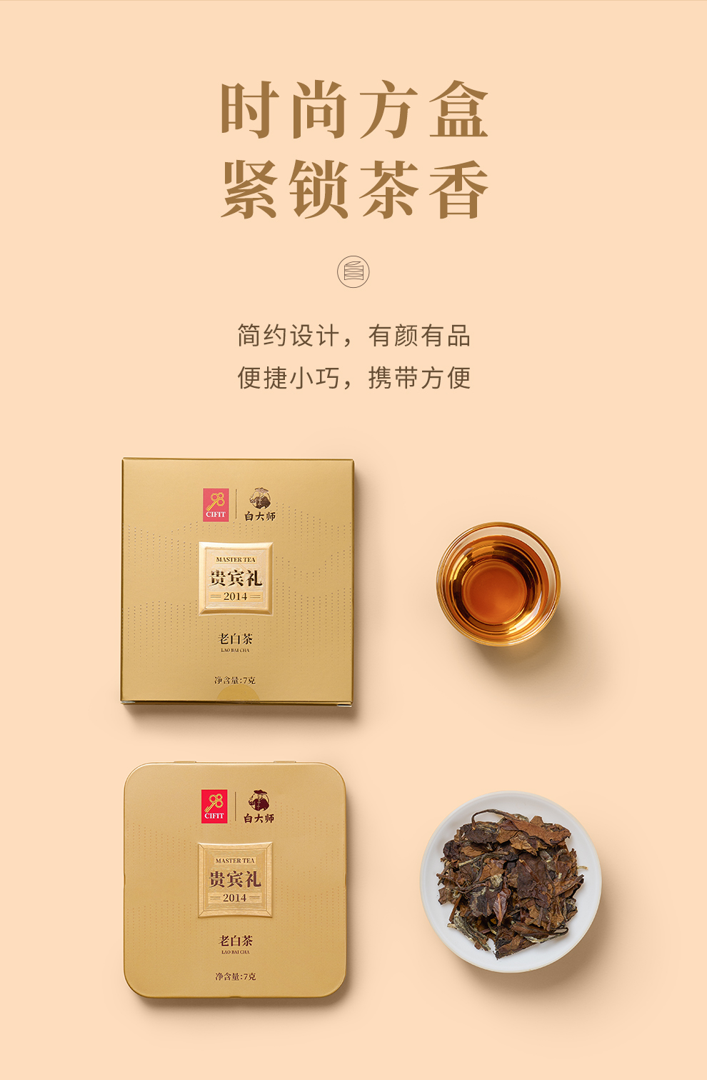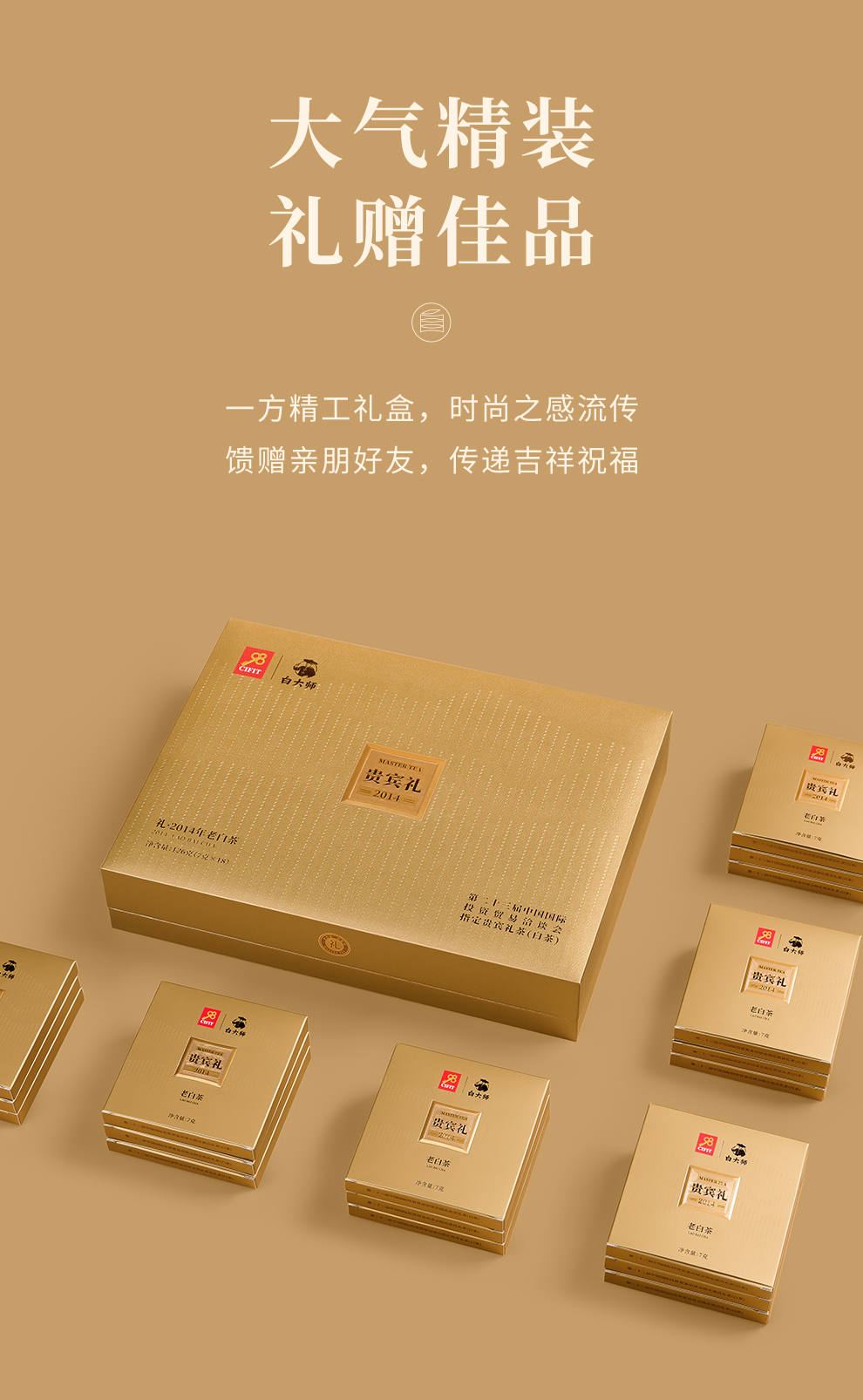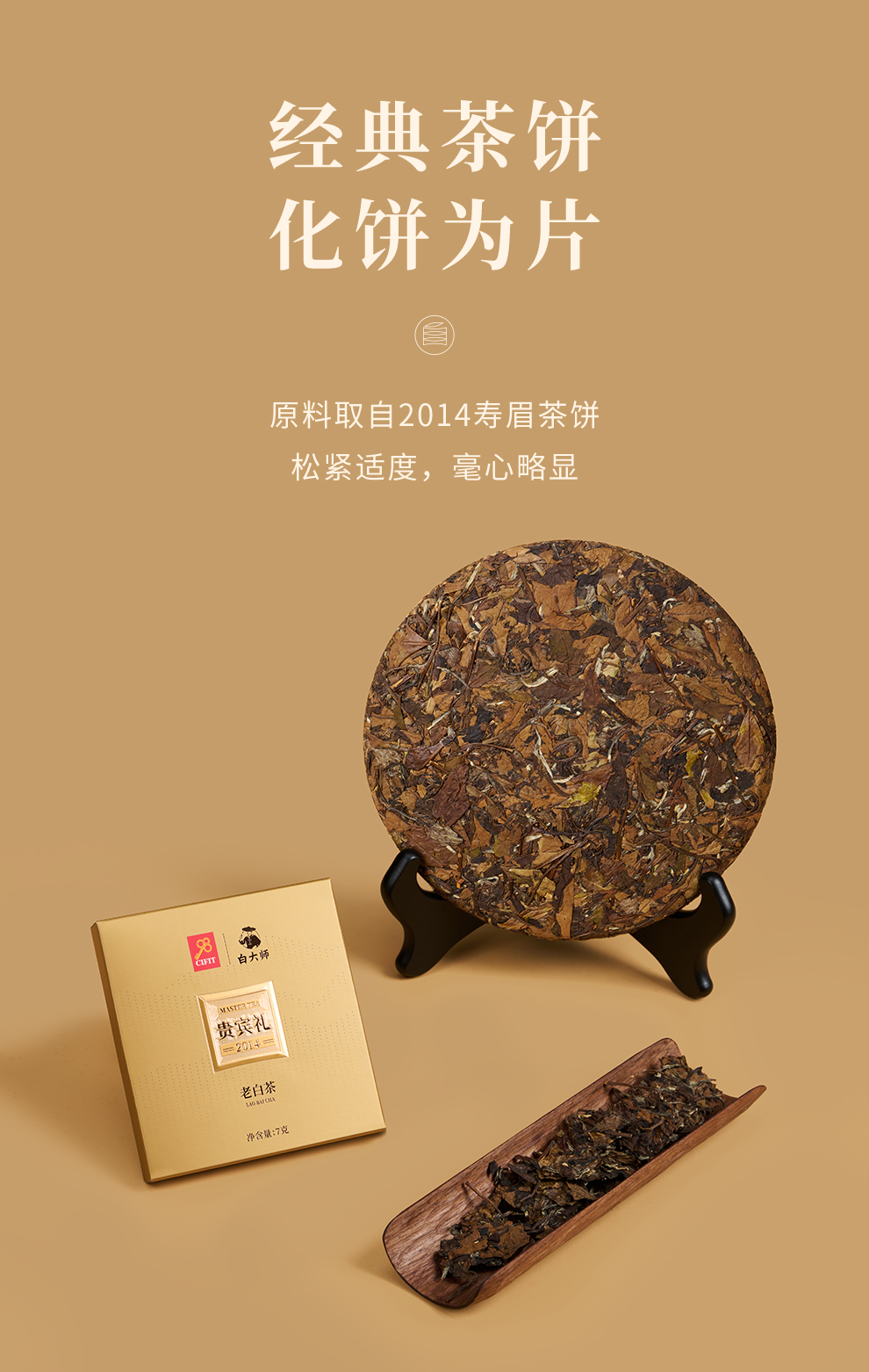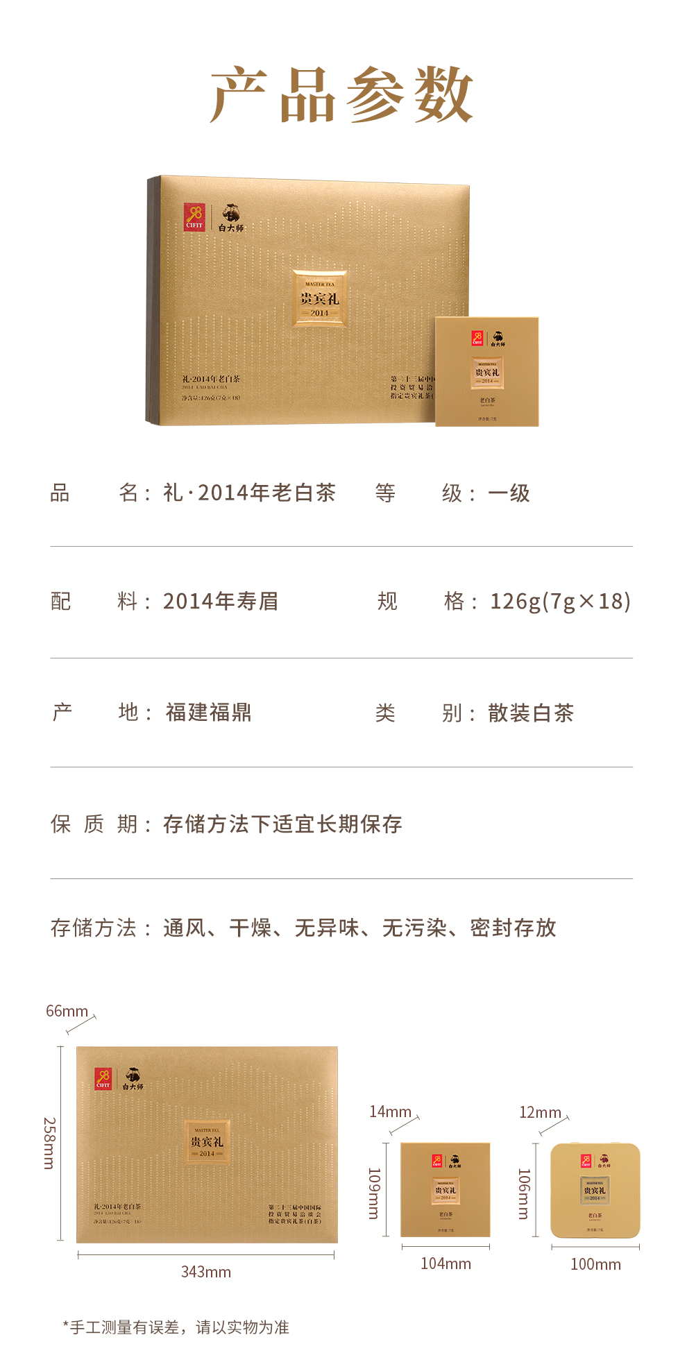 白大师高山正宗福鼎白茶2014年一级寿眉方片送礼茶叶礼盒装126g
