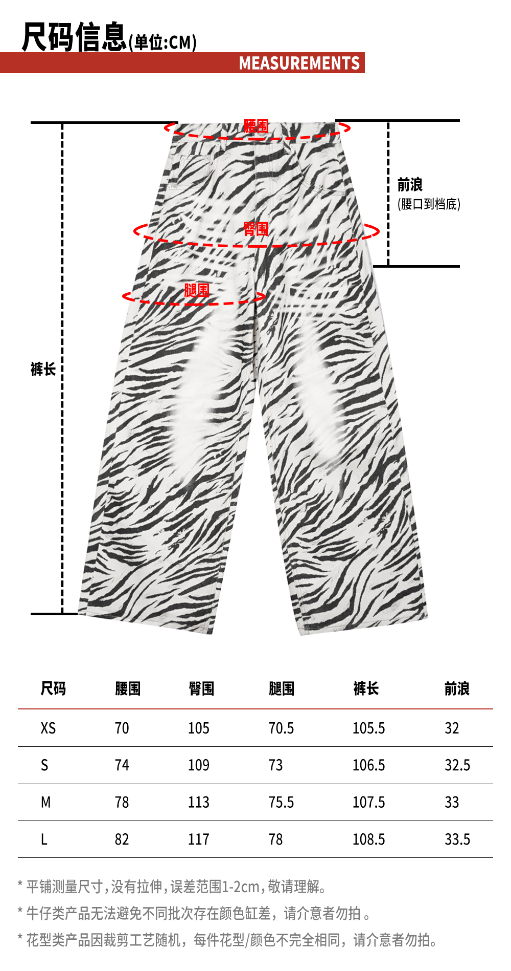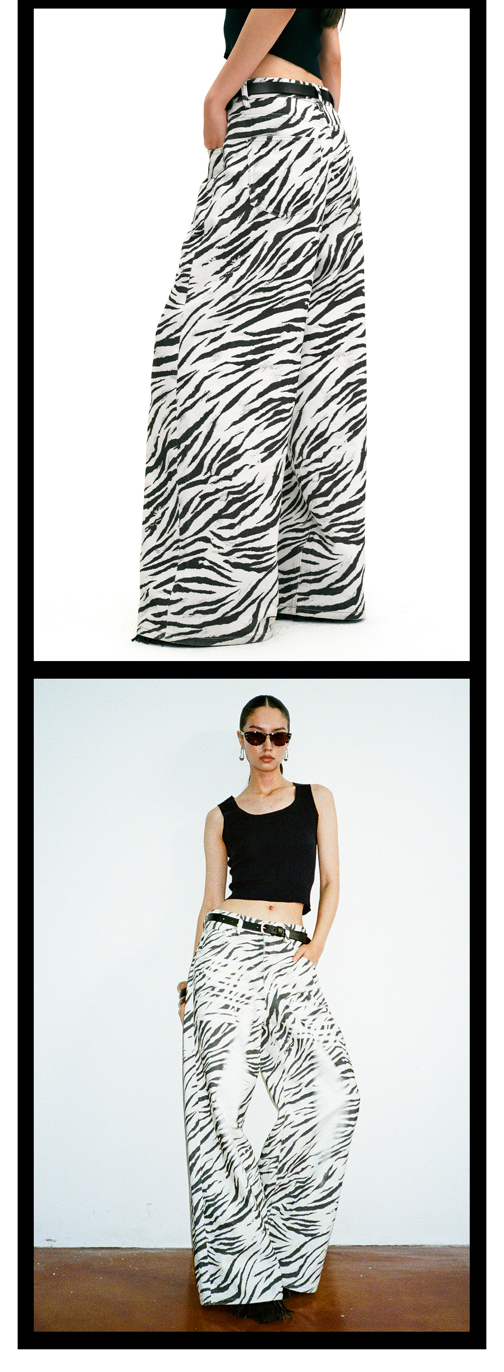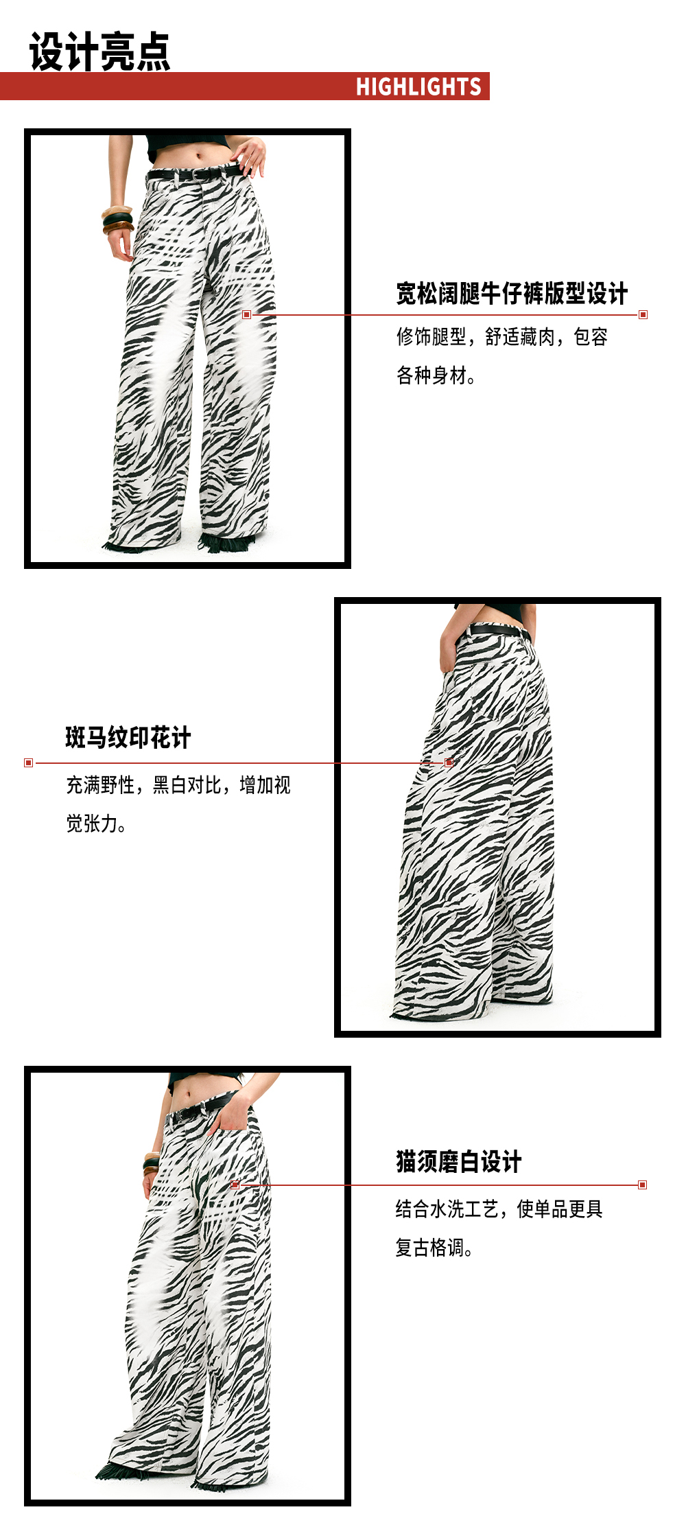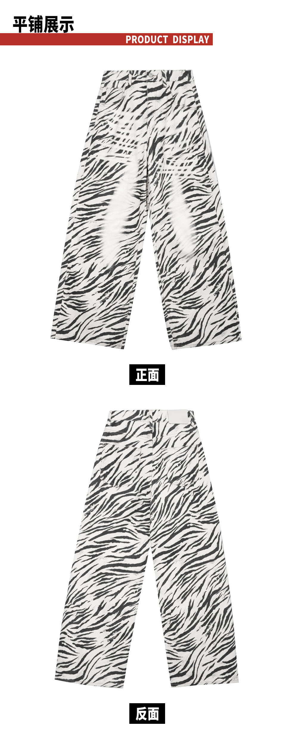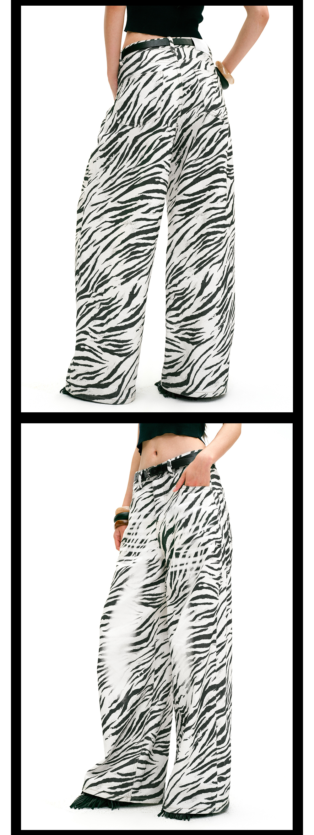 TR她热 都市游牧 黑白斑马纹印花复古百搭显瘦休闲阔腿牛仔裤