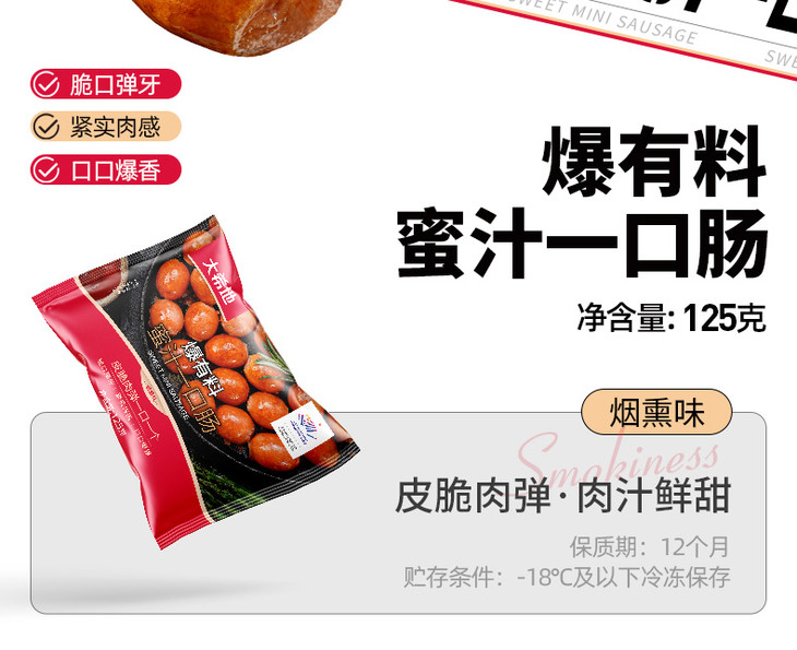 【商品名称】:大希地爆有料蜜汁一口肠