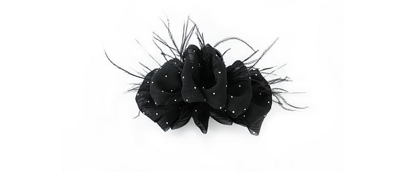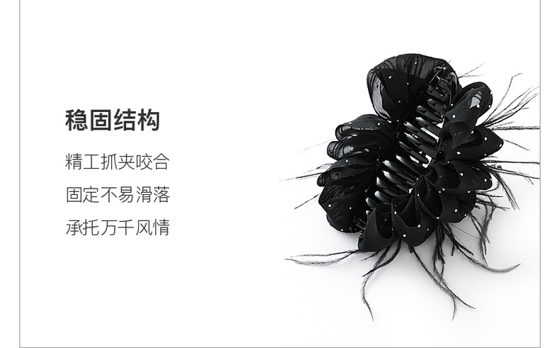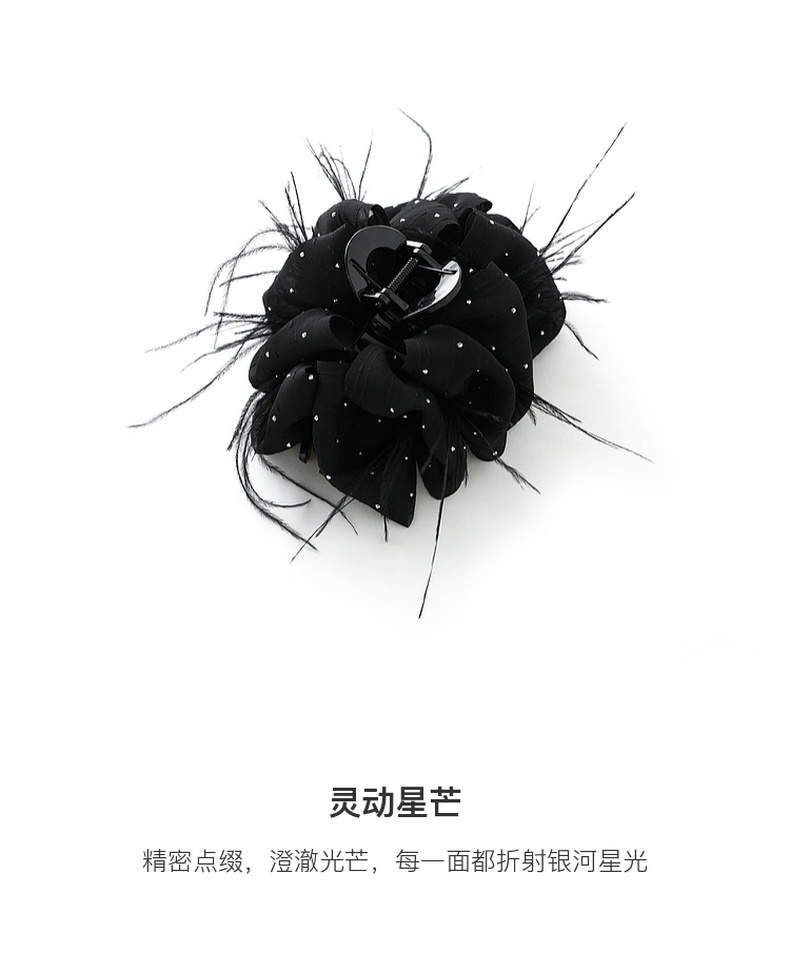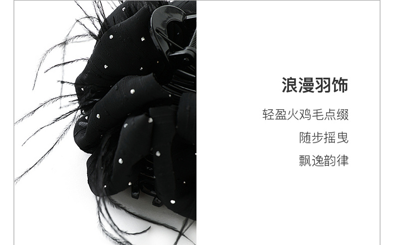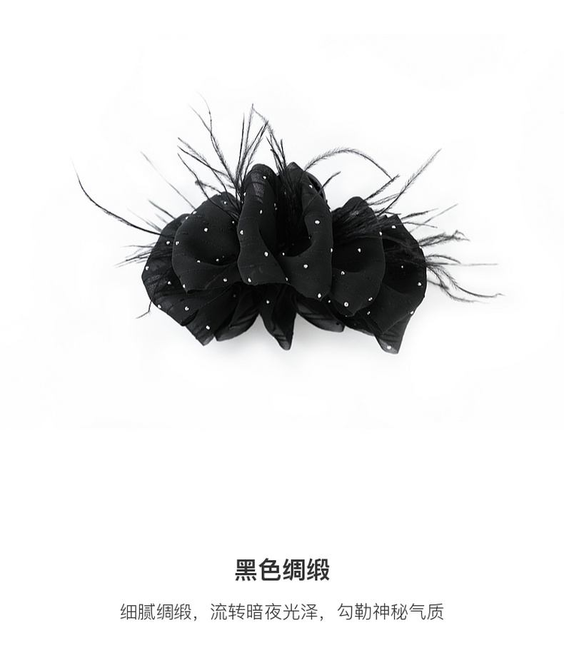 三彩2026新款雅黑绸缎发夹火鸡毛轻奢晚宴派对约会浪漫女