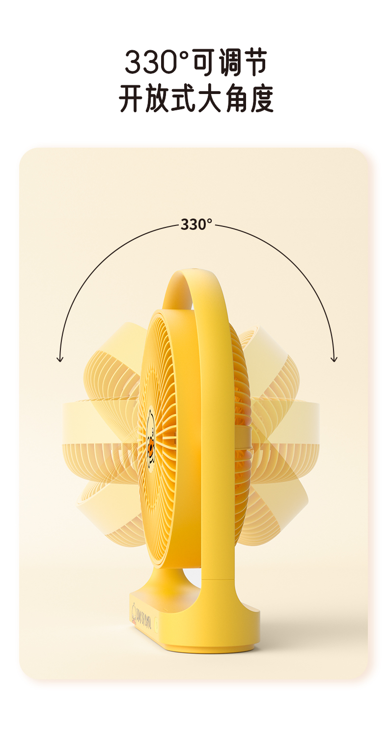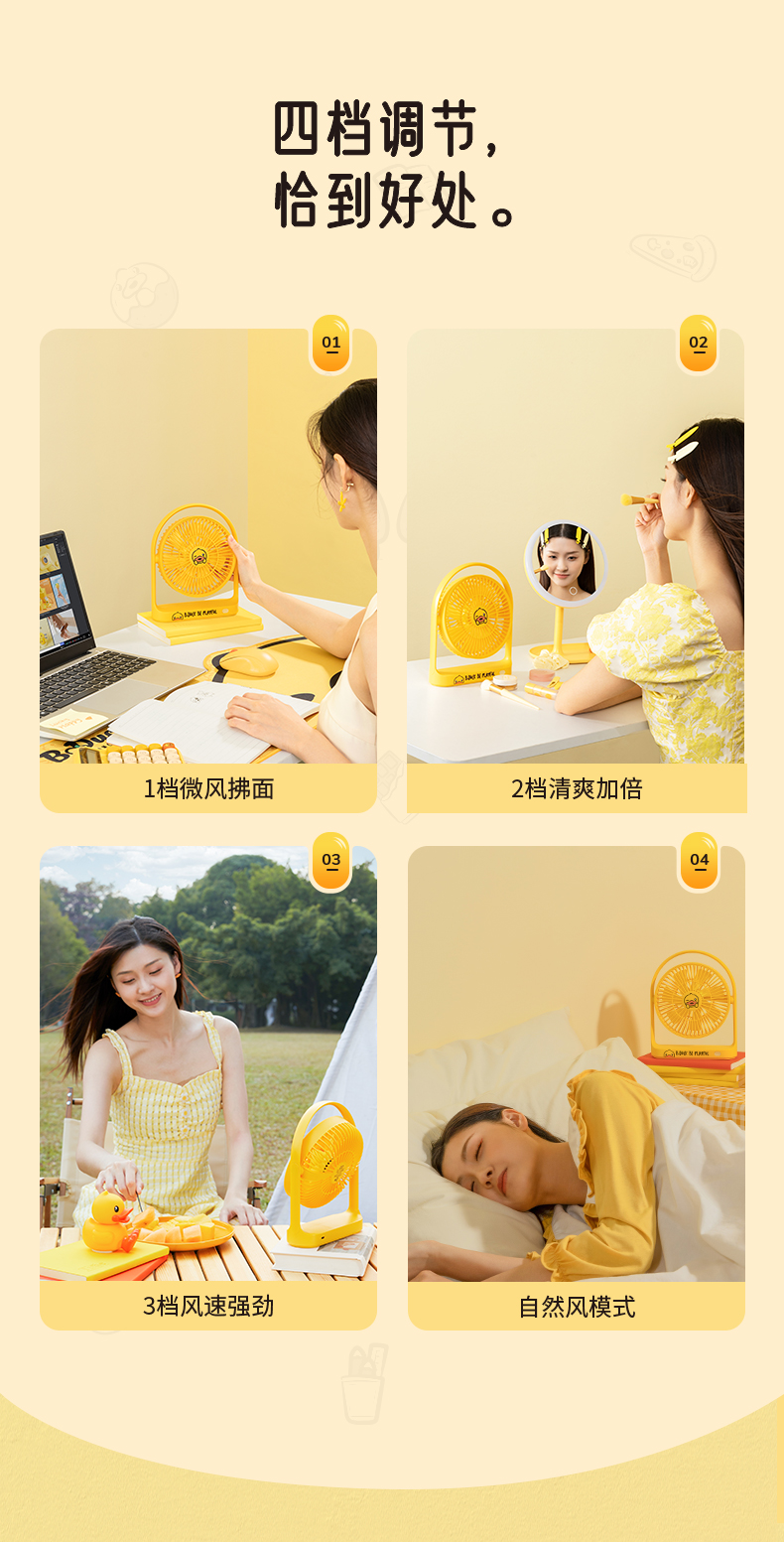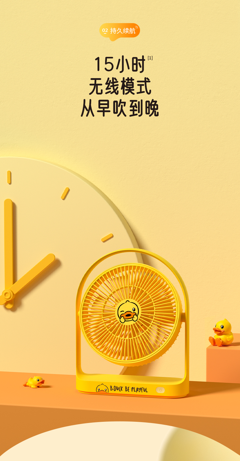 几素电风扇桌面办公室台式学生宿舍床头睡眠扇桌上usb风扇小型大扇面无线便携式户外露营小电扇无线续航【B.DUCK小黄鸭联名款】