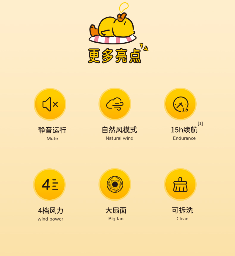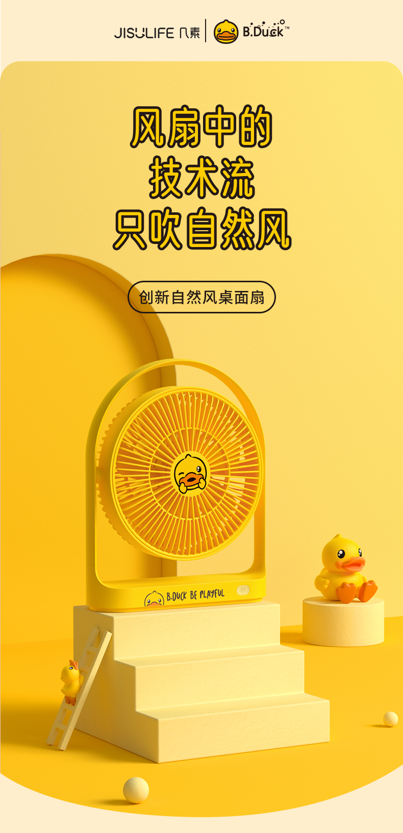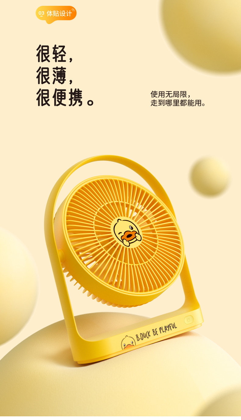 几素电风扇桌面办公室台式学生宿舍床头睡眠扇桌上usb风扇小型大扇面无线便携式户外露营小电扇无线续航【B.DUCK小黄鸭联名款】
