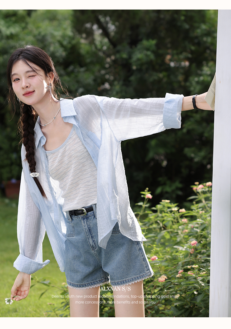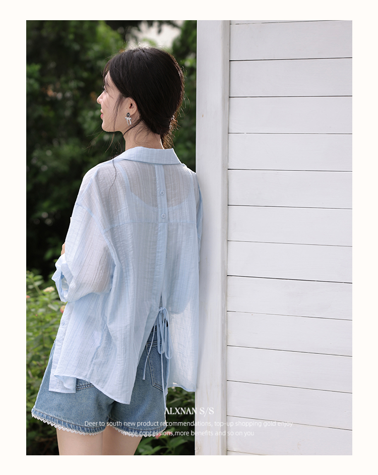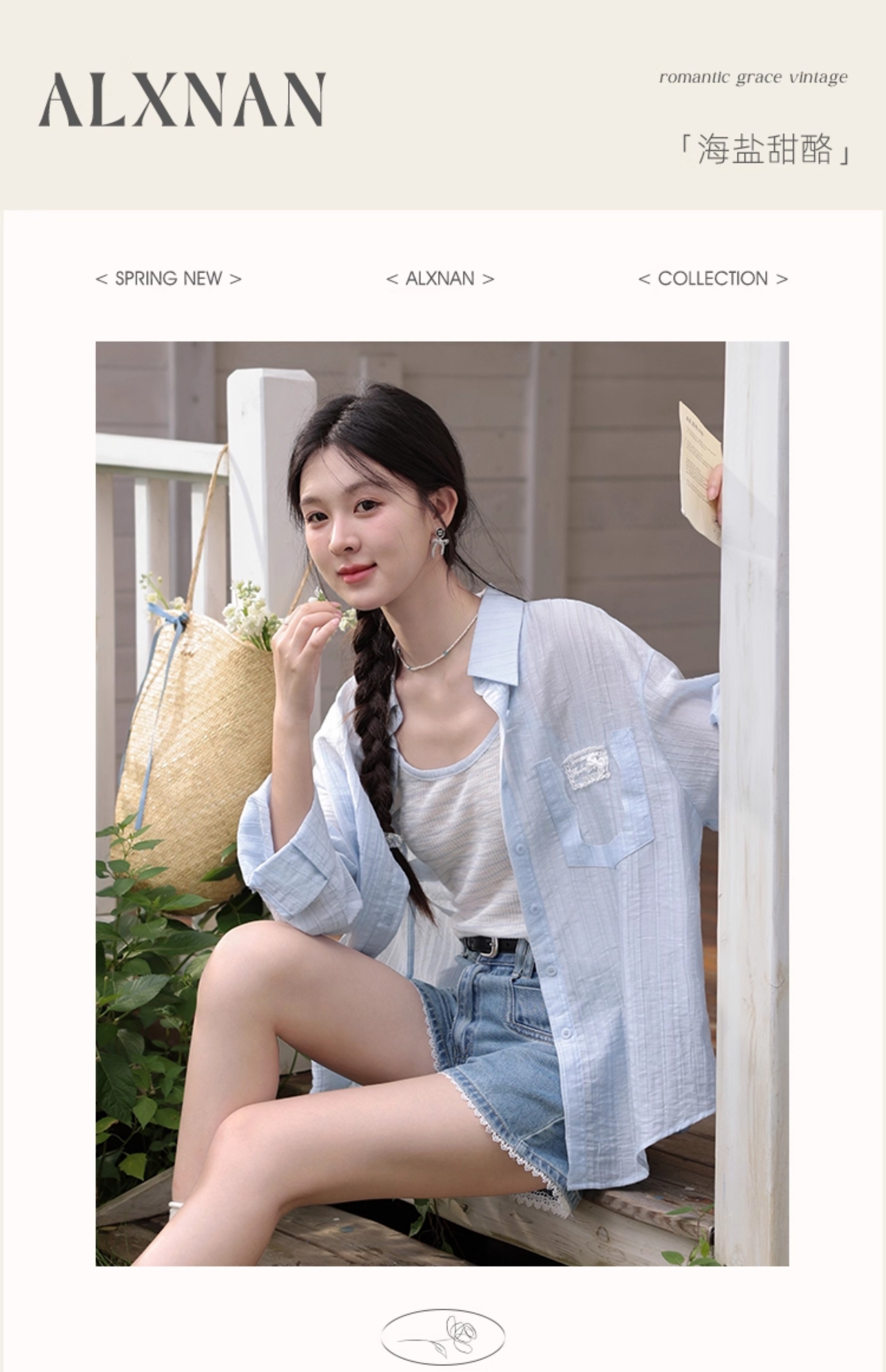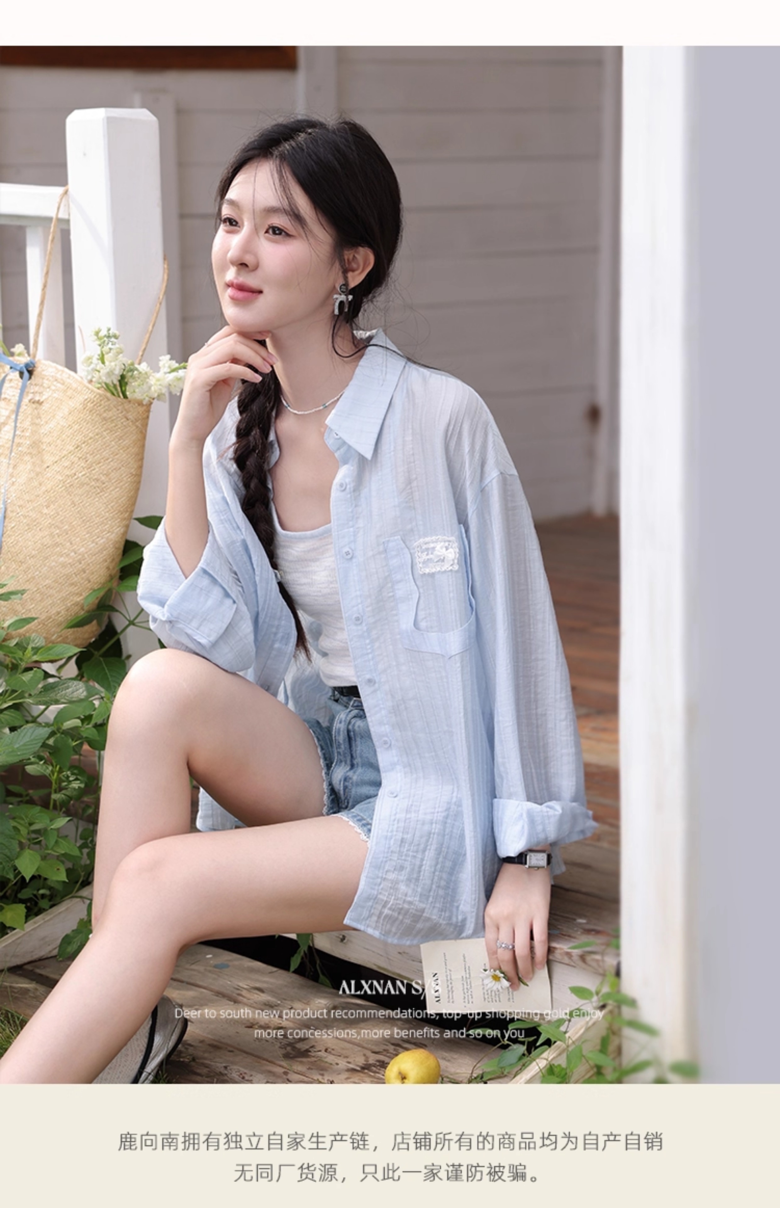 【6折秒杀】鹿向南「海盐甜酪」蓝色薄款防晒衬衫夏季女新款时尚休闲长袖衬衣L56605