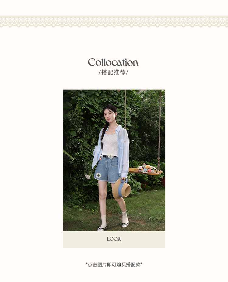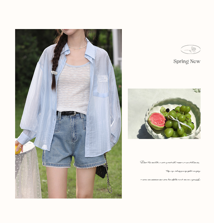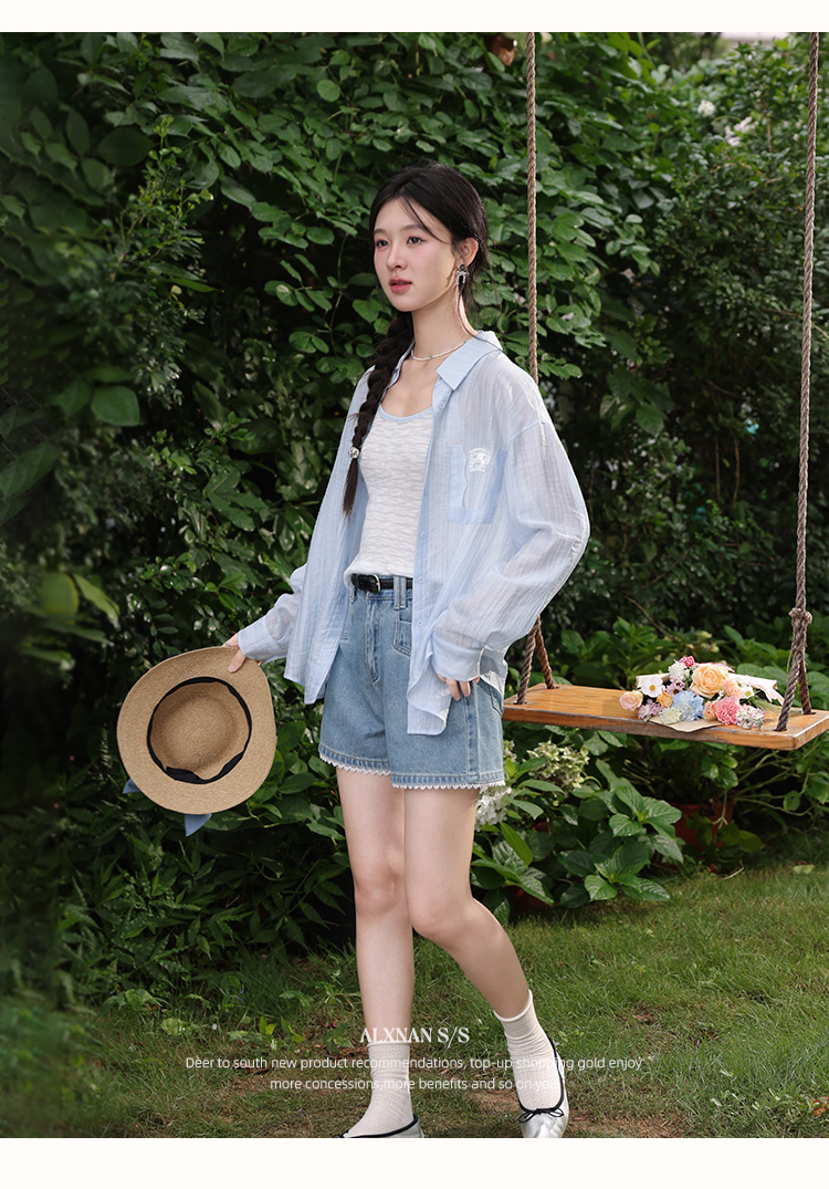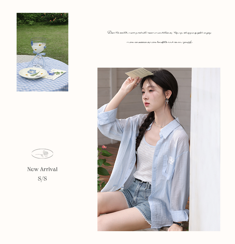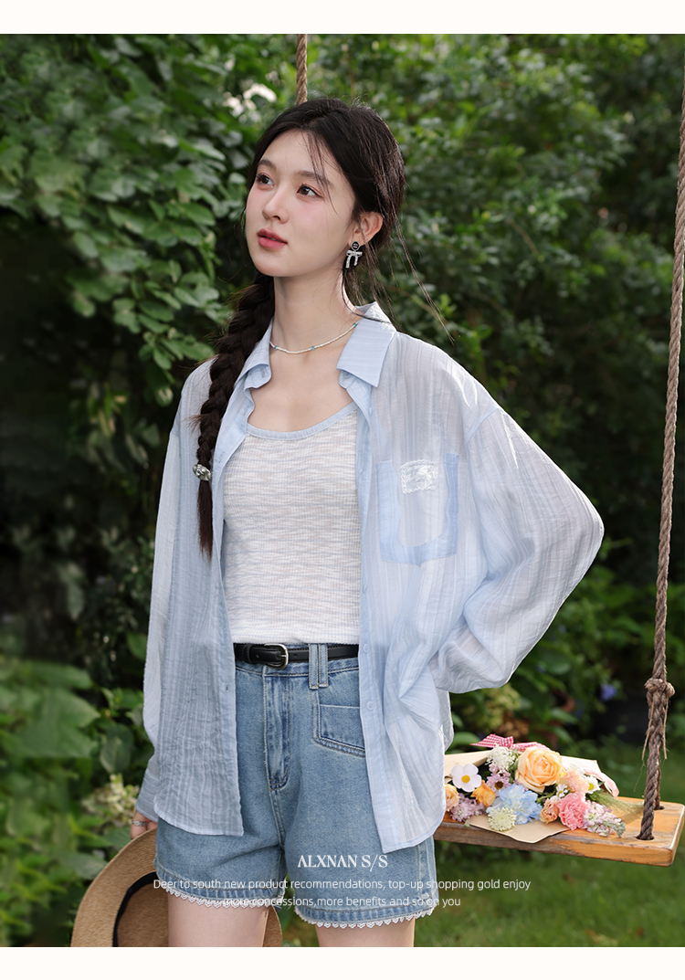 【6折秒杀】鹿向南「海盐甜酪」蓝色薄款防晒衬衫夏季女新款时尚休闲长袖衬衣L56605
