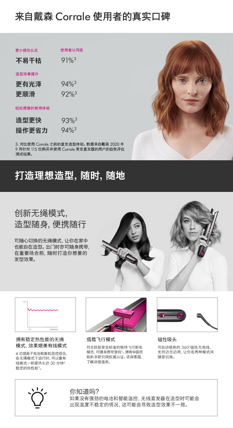 戴森(DYSON) Corrale HS03 无绳美发直发器 卷直两用