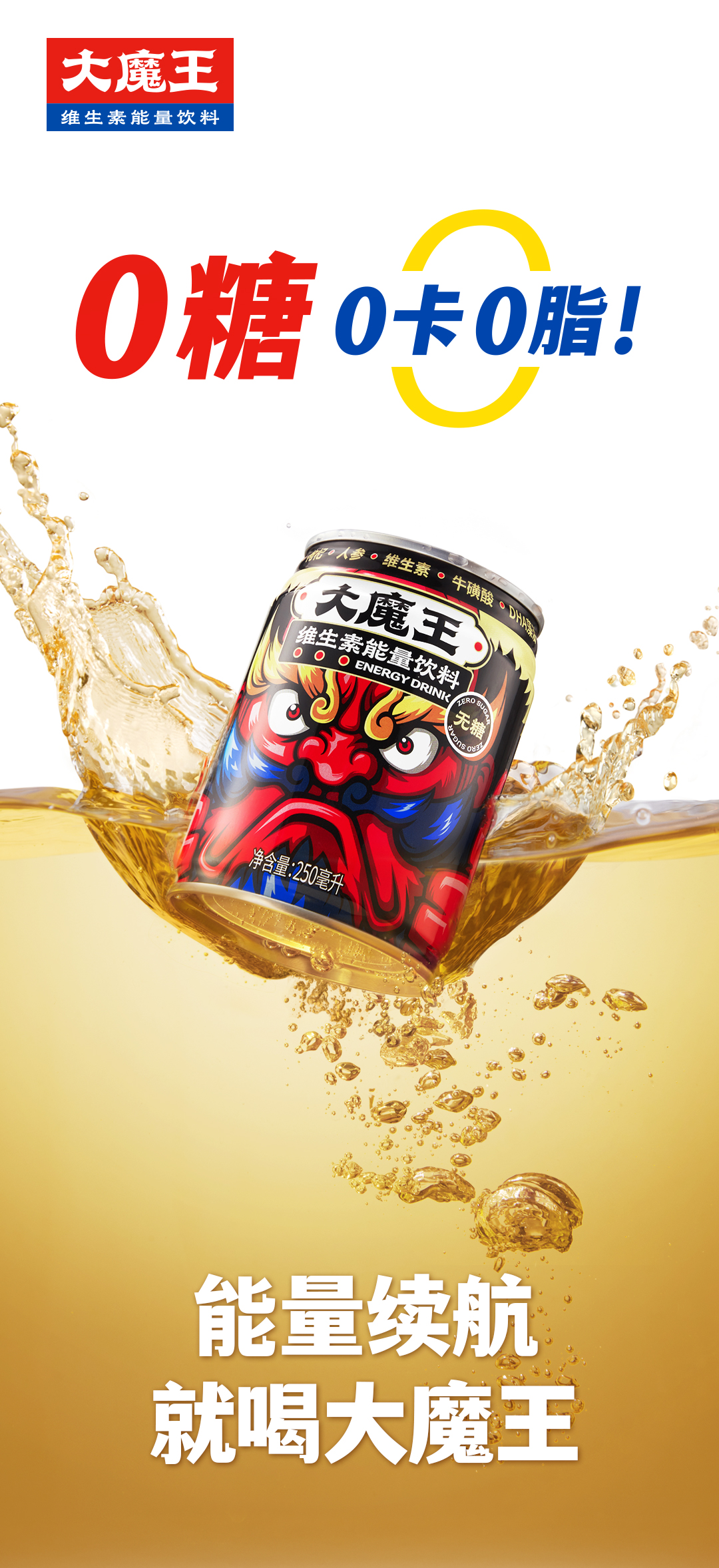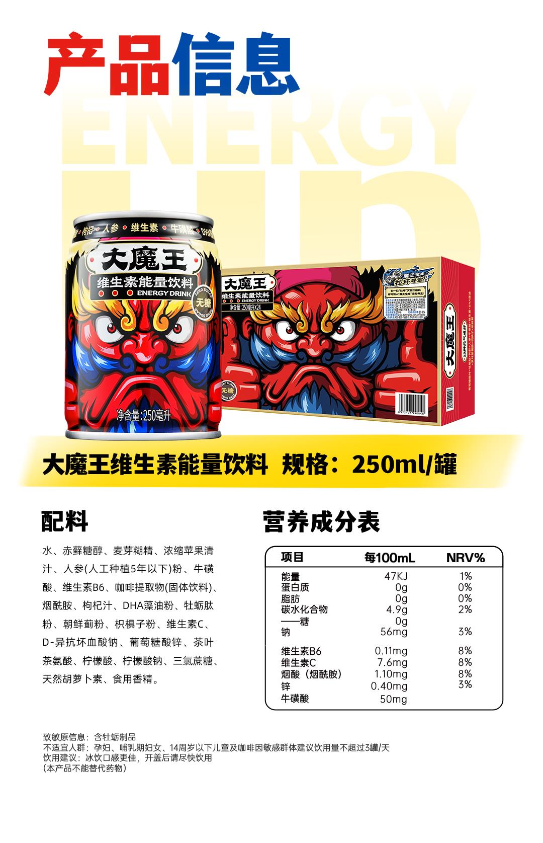 大魔王0糖0卡0脂牛磺酸维生素功能饮料