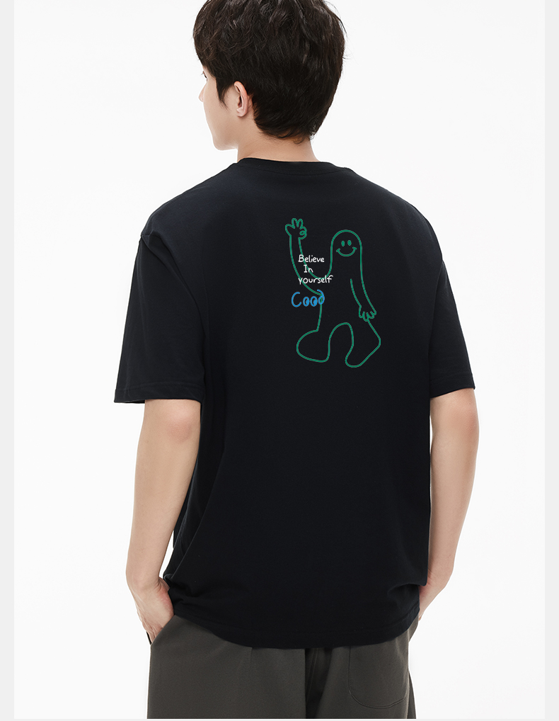 「棉的美学」100%棉T恤宽松抽象印花纯色上衣休闲圆领基础款短袖