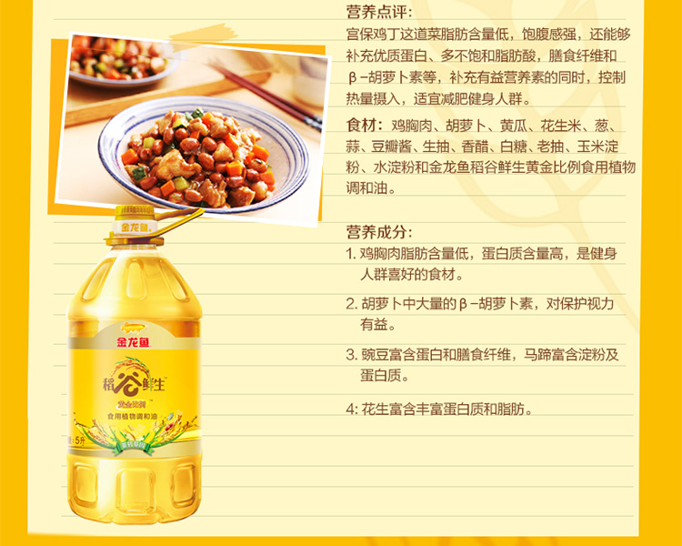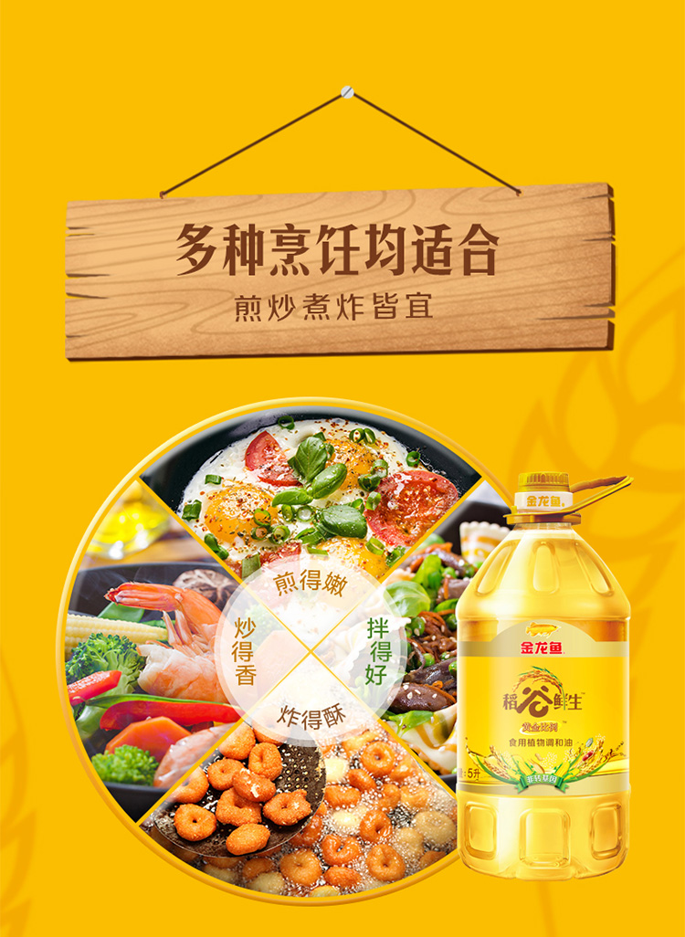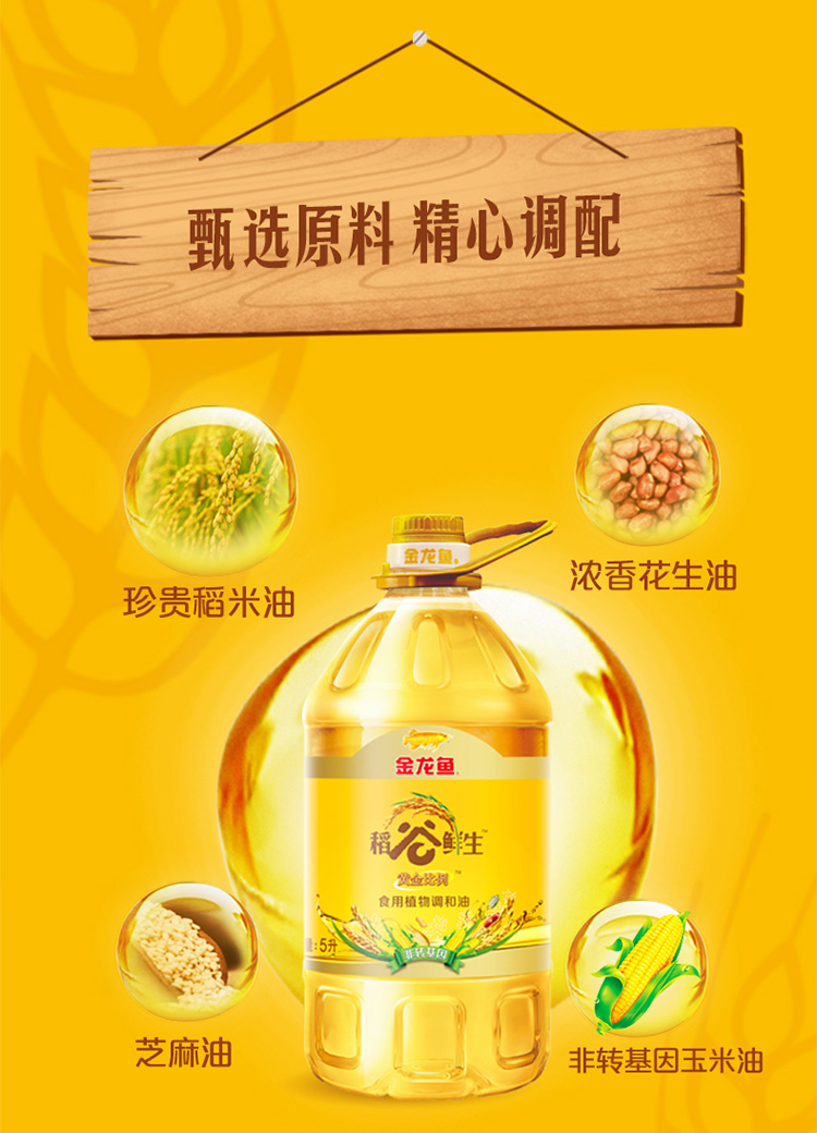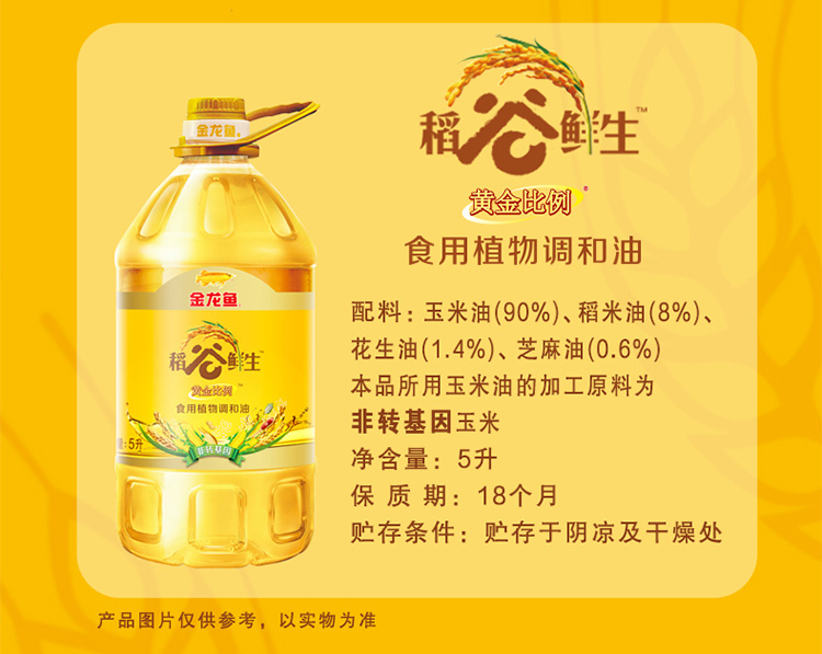 金龙鱼黄金比例稻谷鲜生食用植物调和油5L(非转)