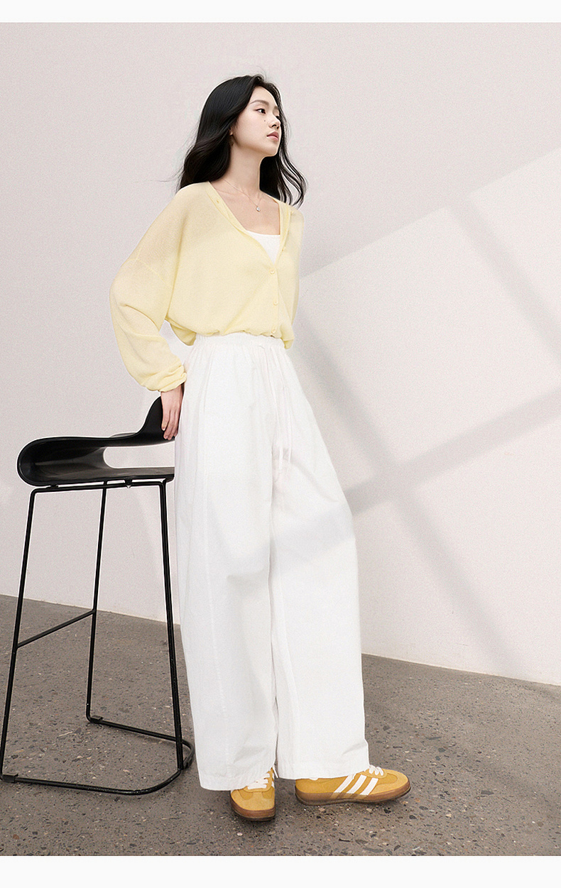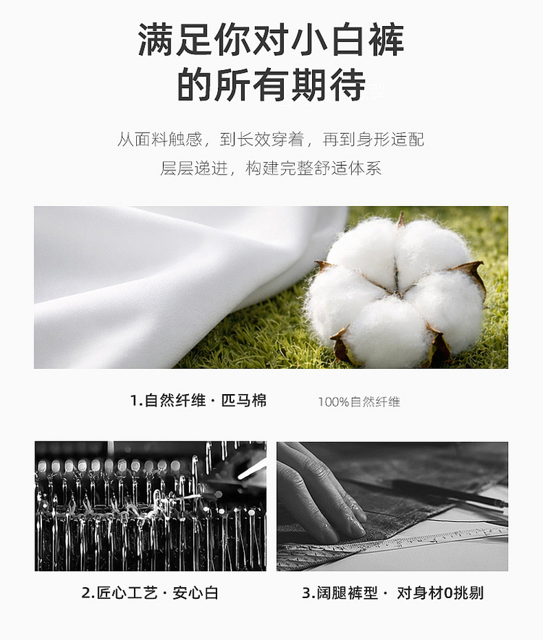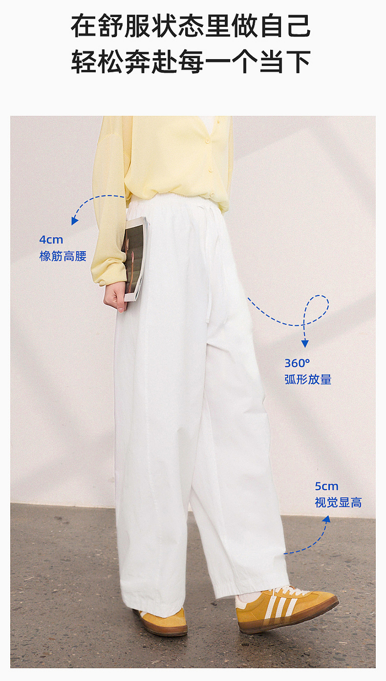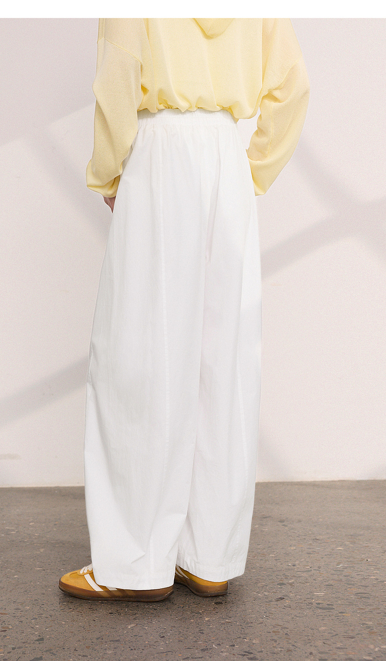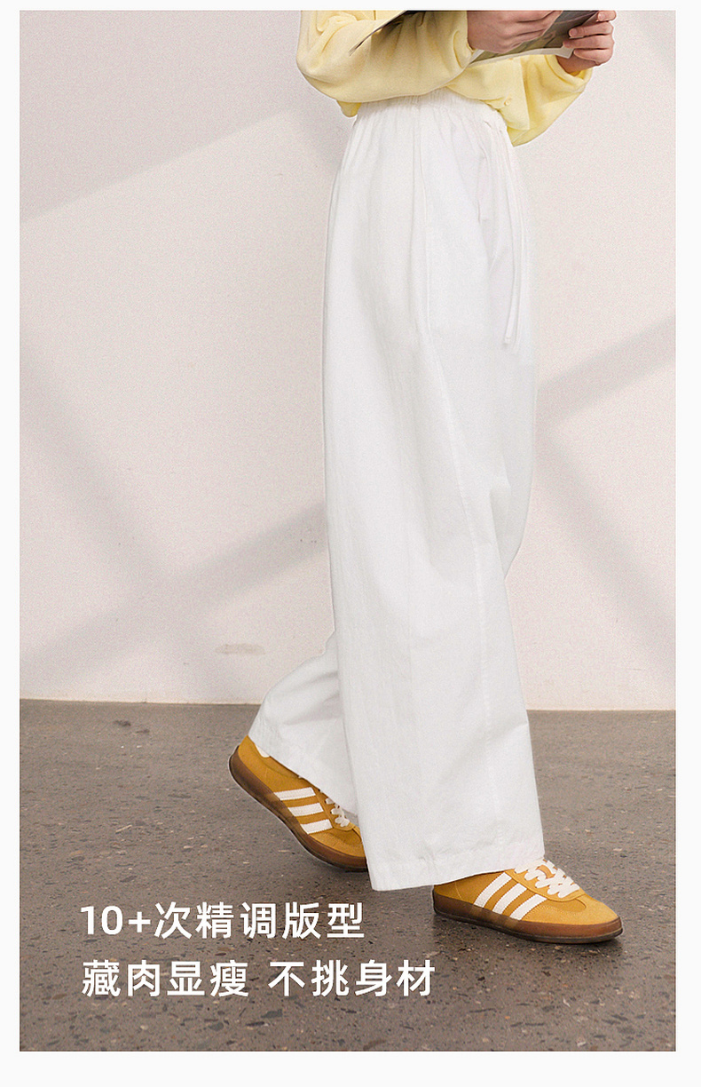 【匹马棉】三彩2026夏季新款休闲裤高腰宽松白色气球裤长裤M