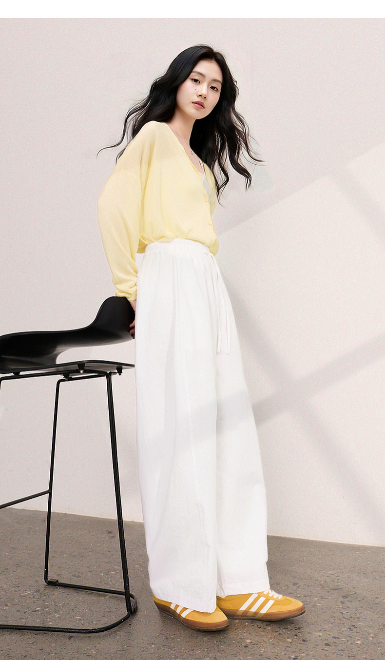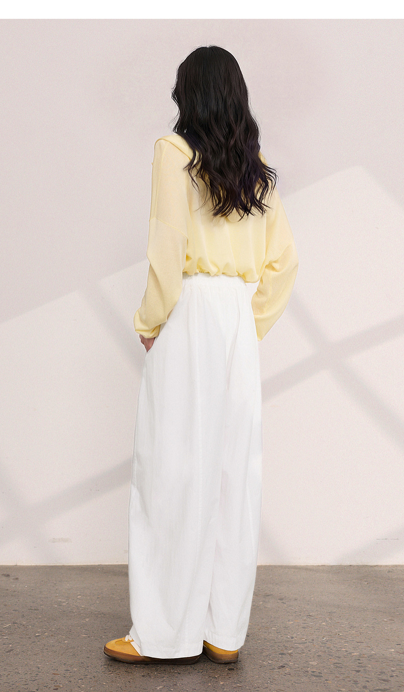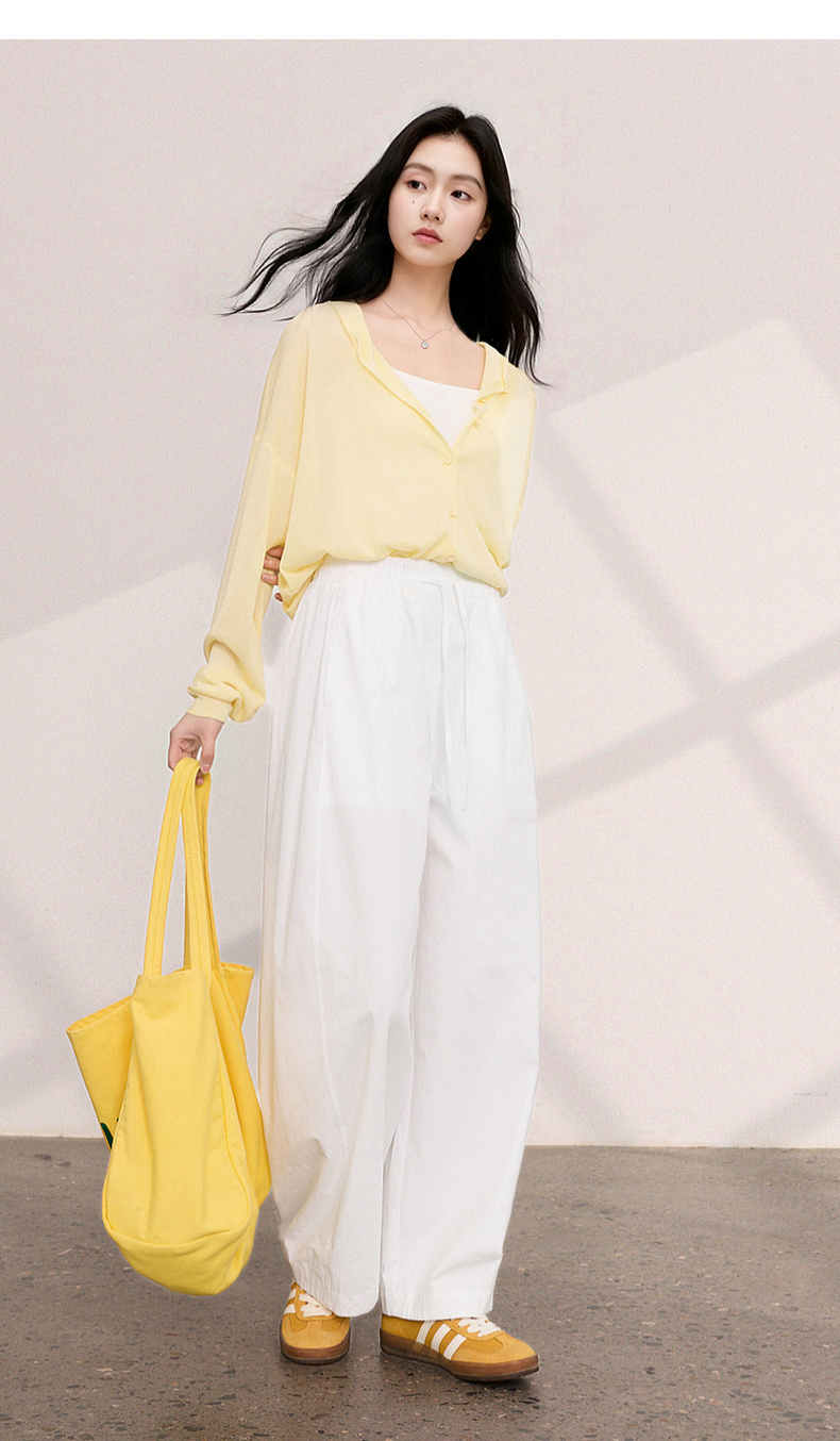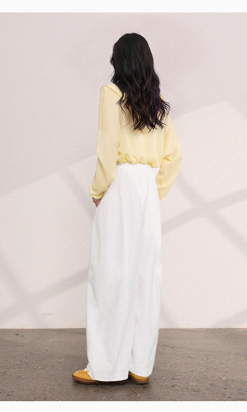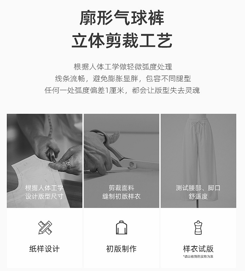 【匹马棉】三彩2026夏季新款休闲裤高腰宽松白色气球裤长裤M