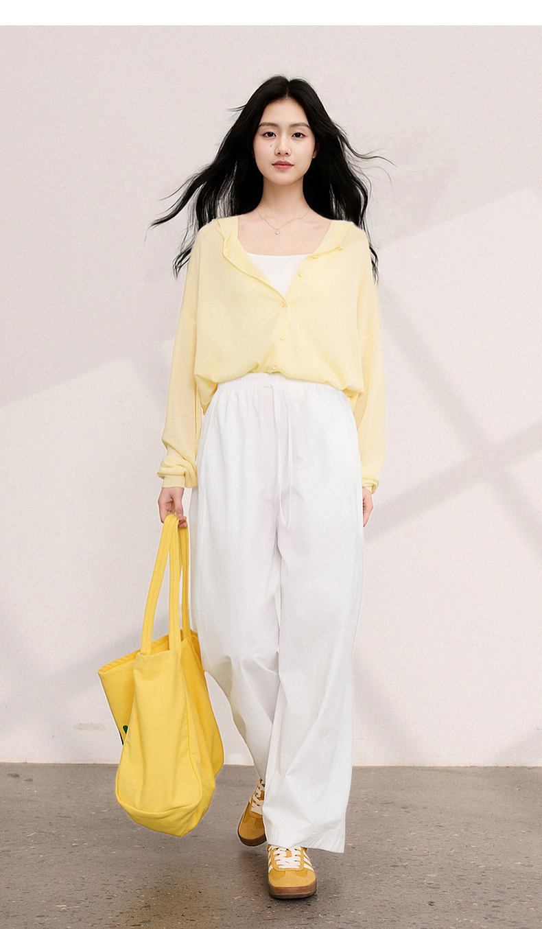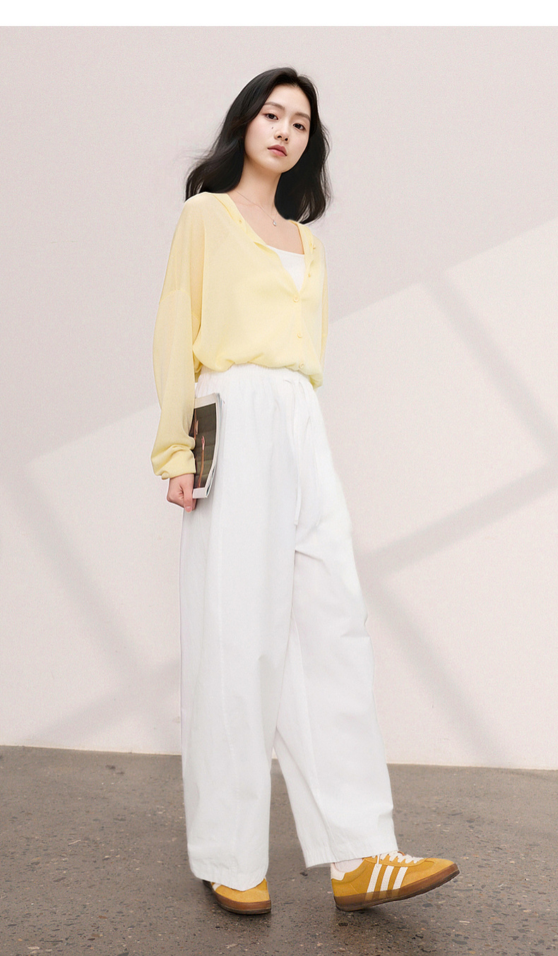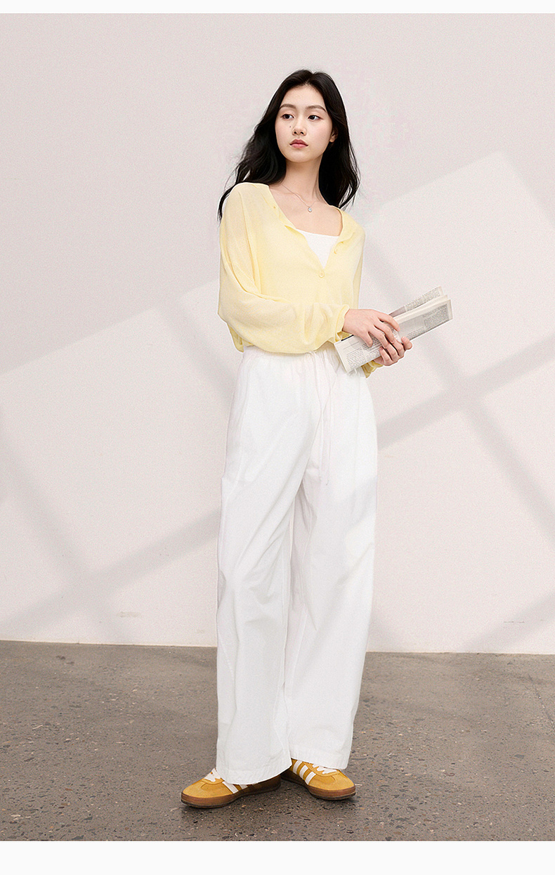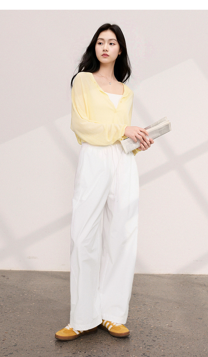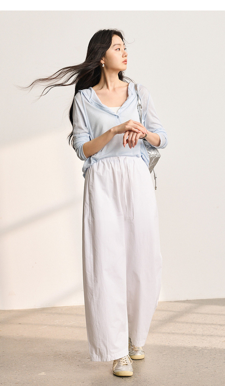 【匹马棉】三彩2026夏季新款休闲裤高腰宽松白色气球裤长裤M