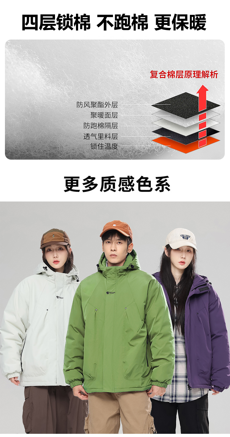 瑞士军工SWISS MILITARY 石墨烯防水防风情侣款户外保暖冲锋棉服 845 商品图2