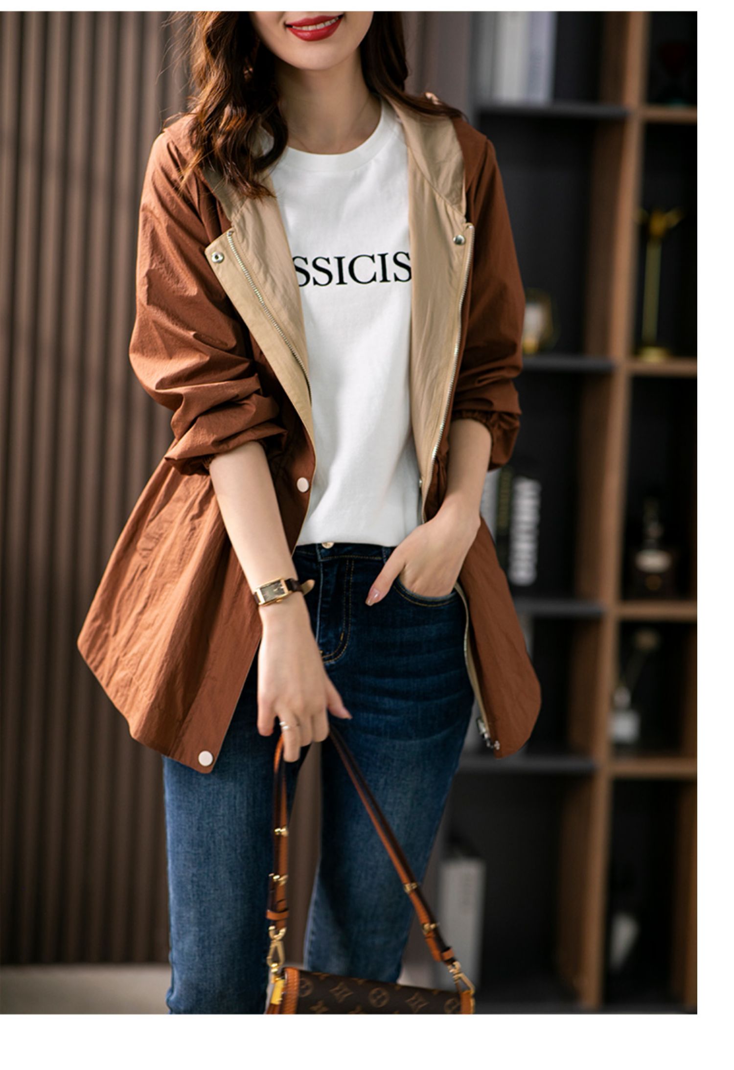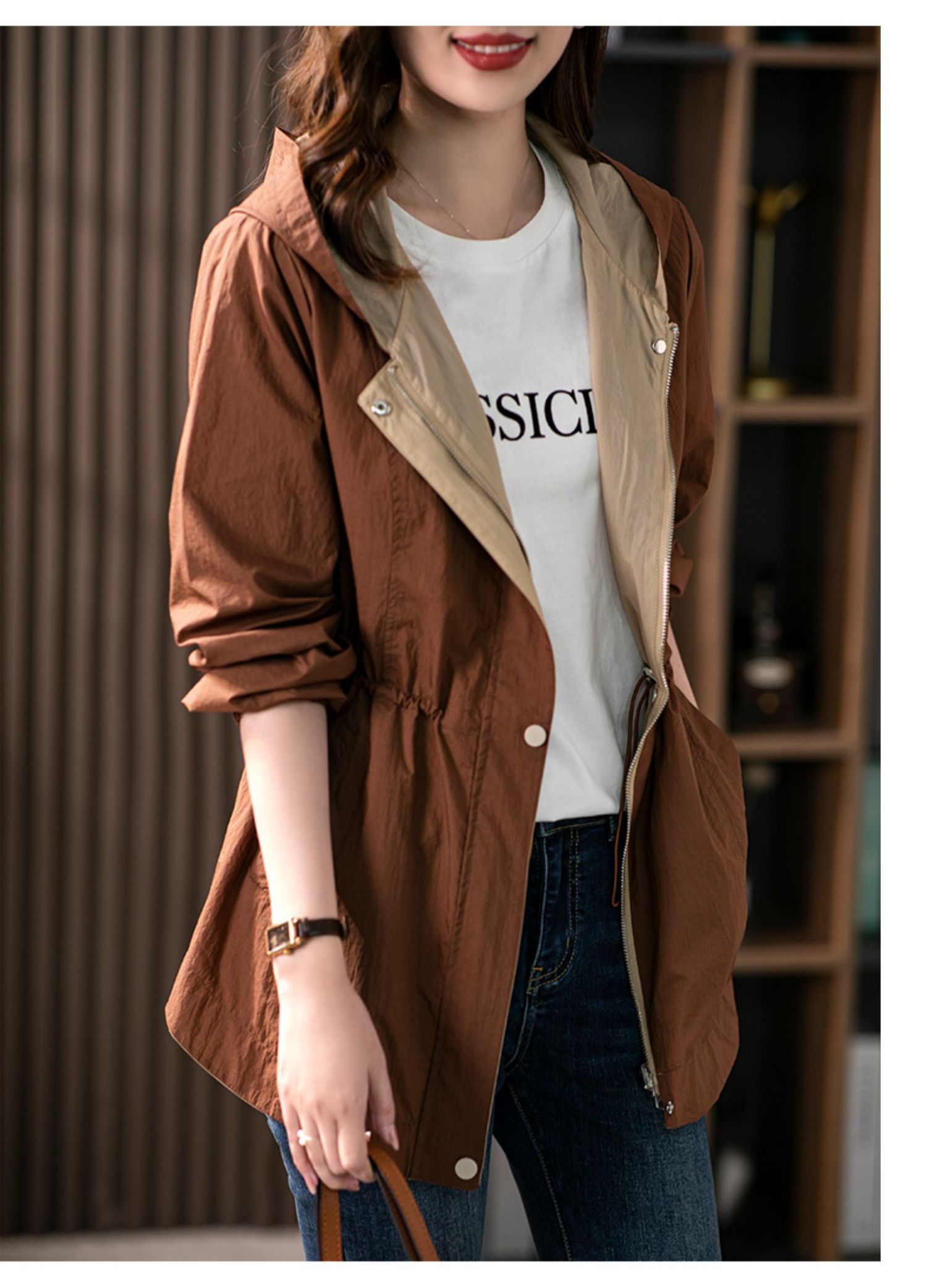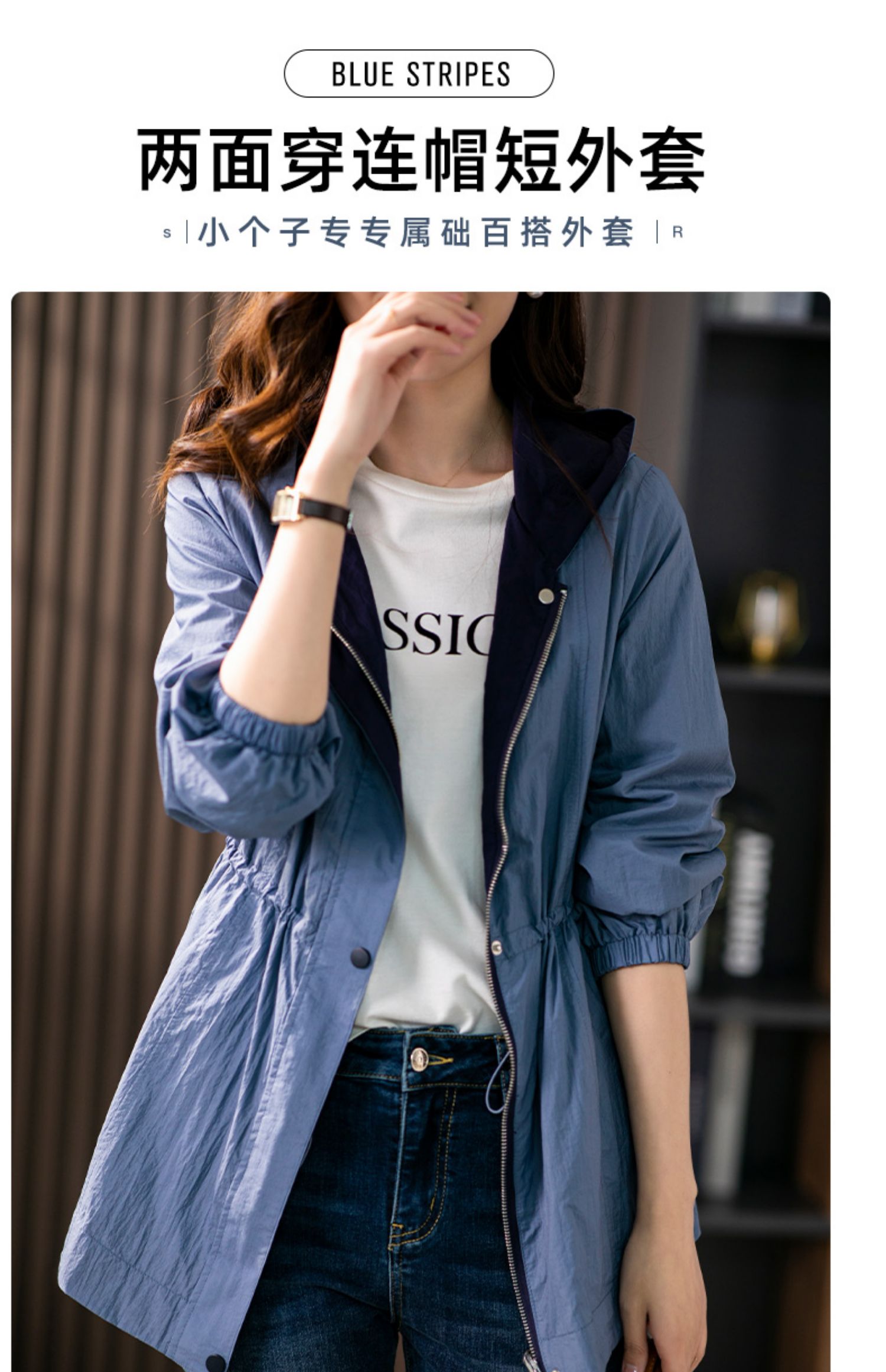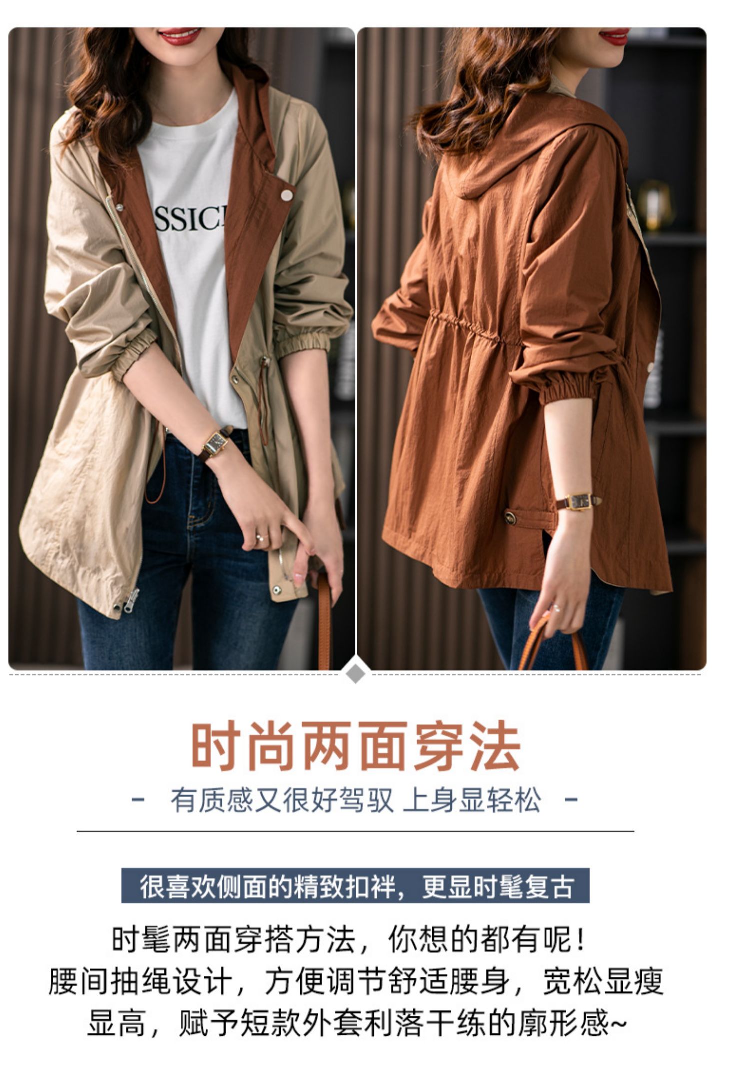 84980原形两面穿连帽风衣女薄款防晒服2024秋季新款韩版休闲显瘦短外套