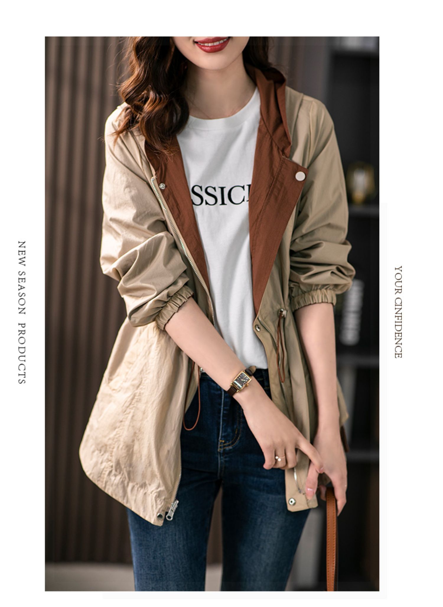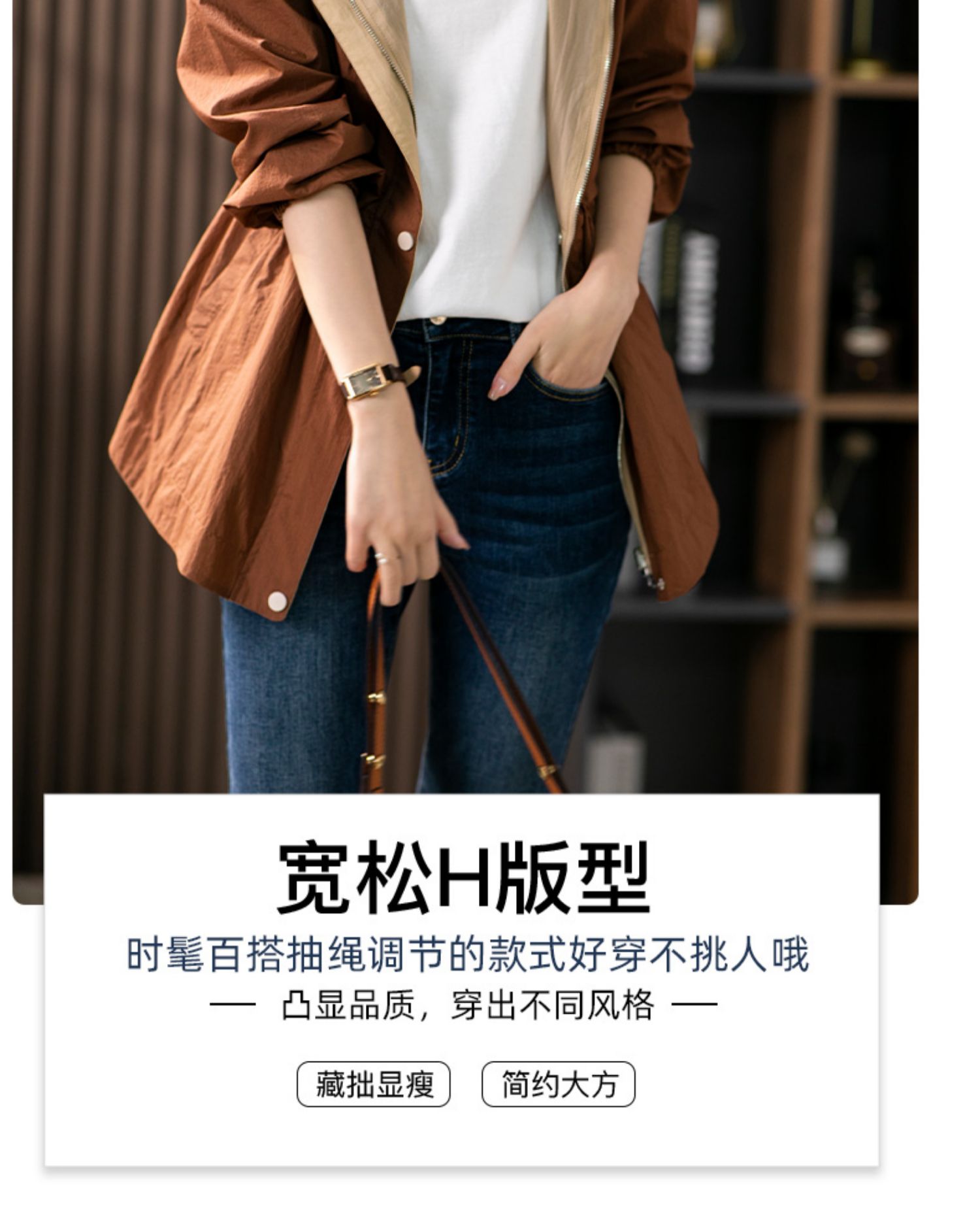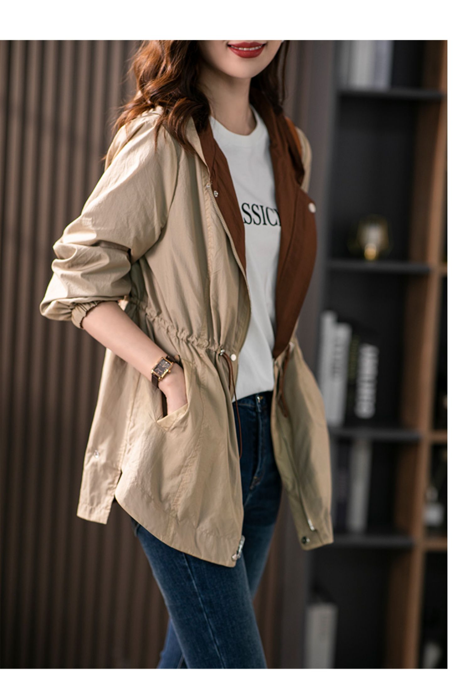 84980原形两面穿连帽风衣女薄款防晒服2024秋季新款韩版休闲显瘦短外套