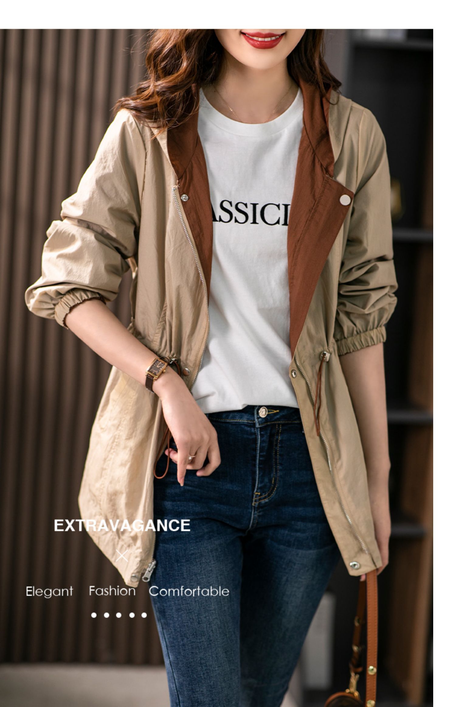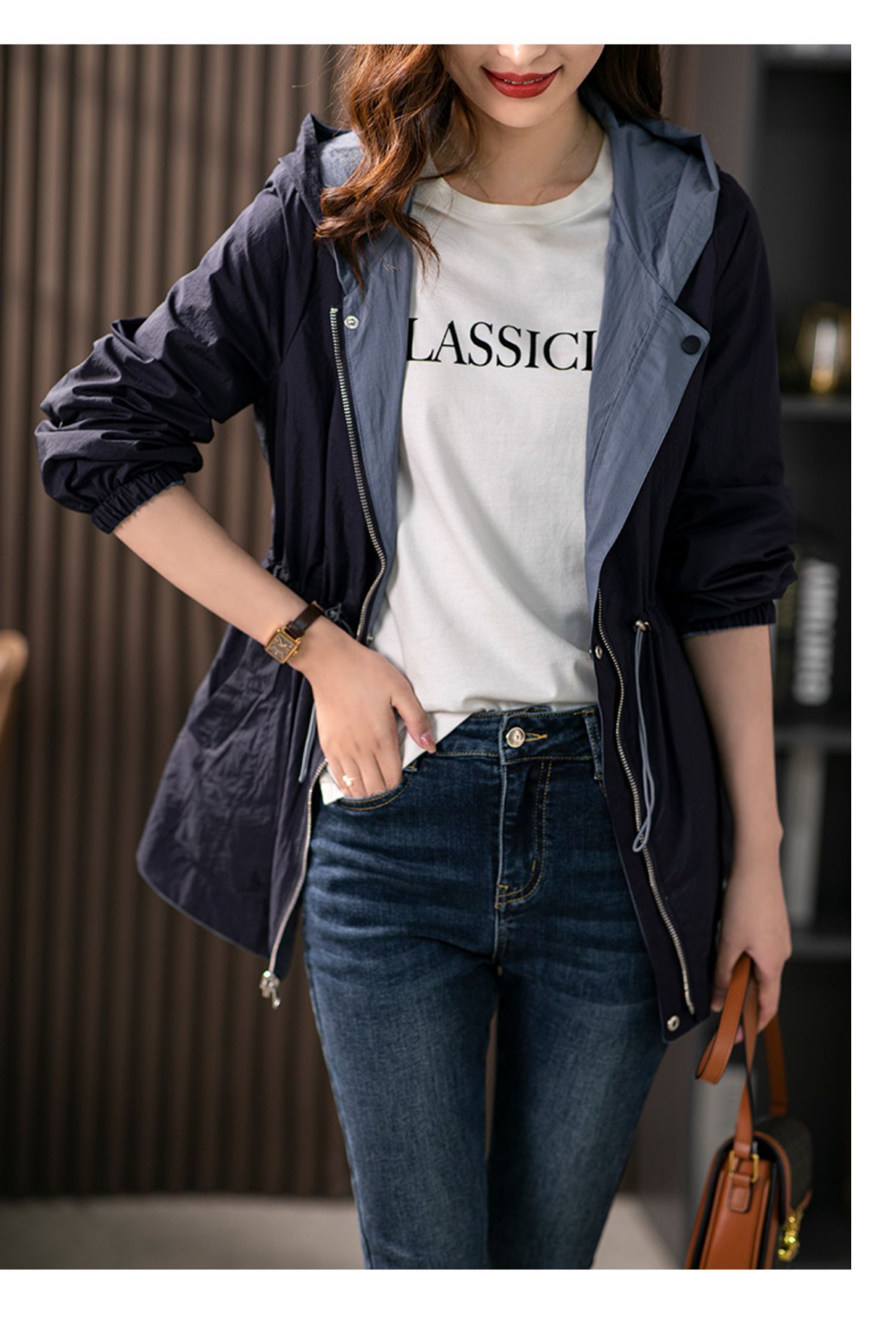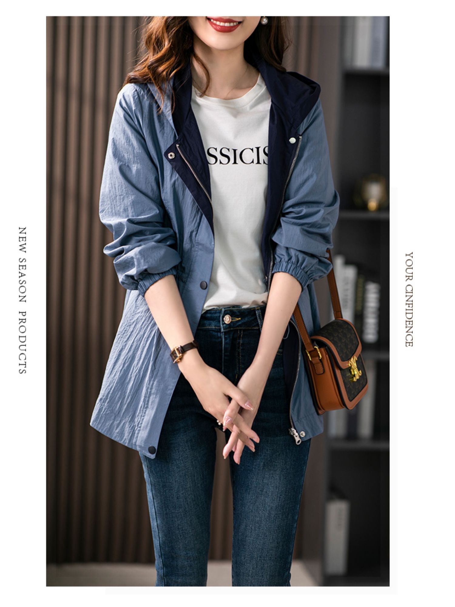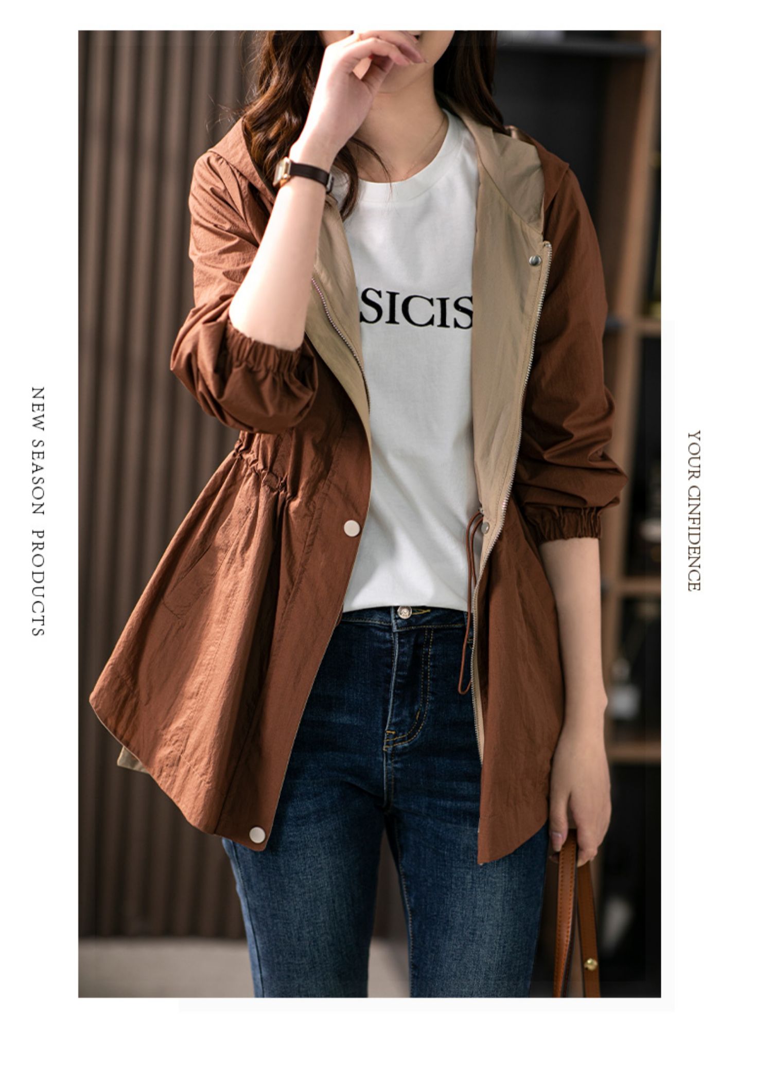 84980原形两面穿连帽风衣女薄款防晒服2024秋季新款韩版休闲显瘦短外套