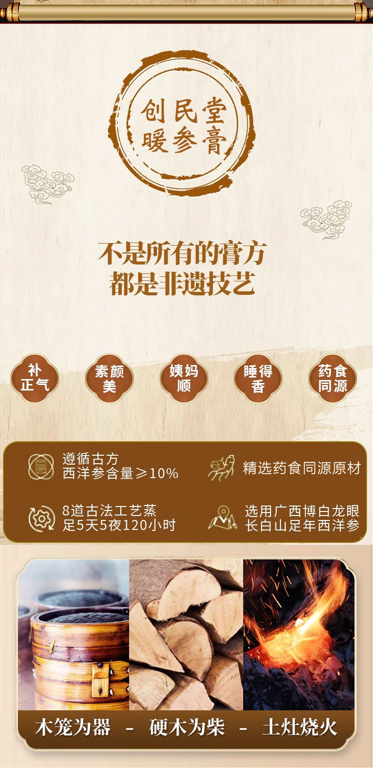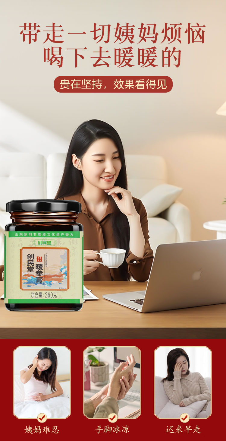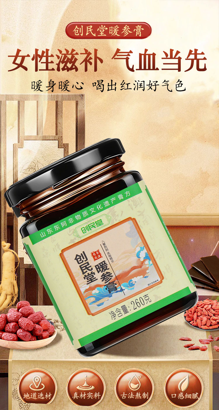 创民堂阿胶姜枣暖参膏浓缩滋补创民堂家暖身膏正品创民堂旗舰店