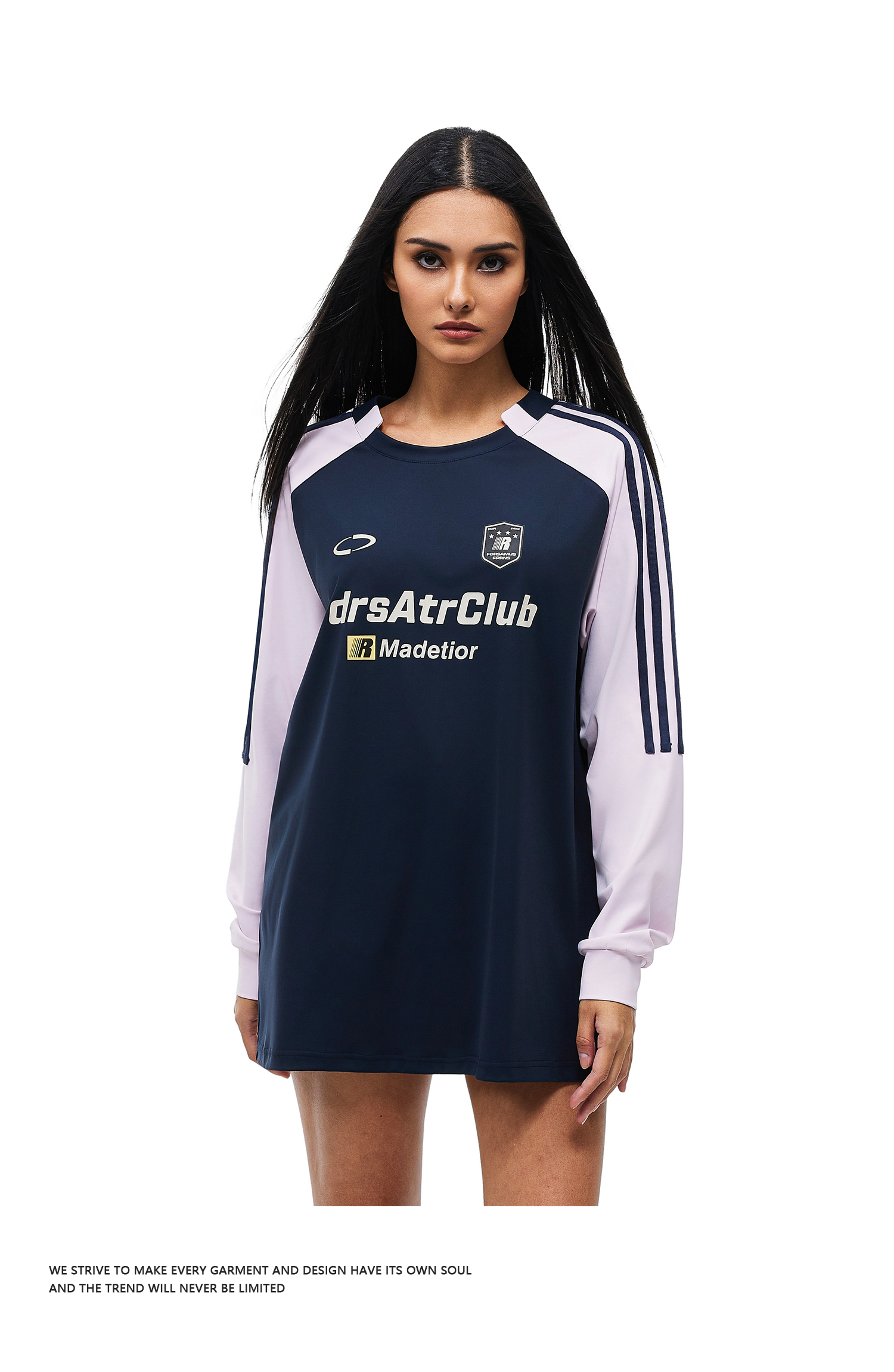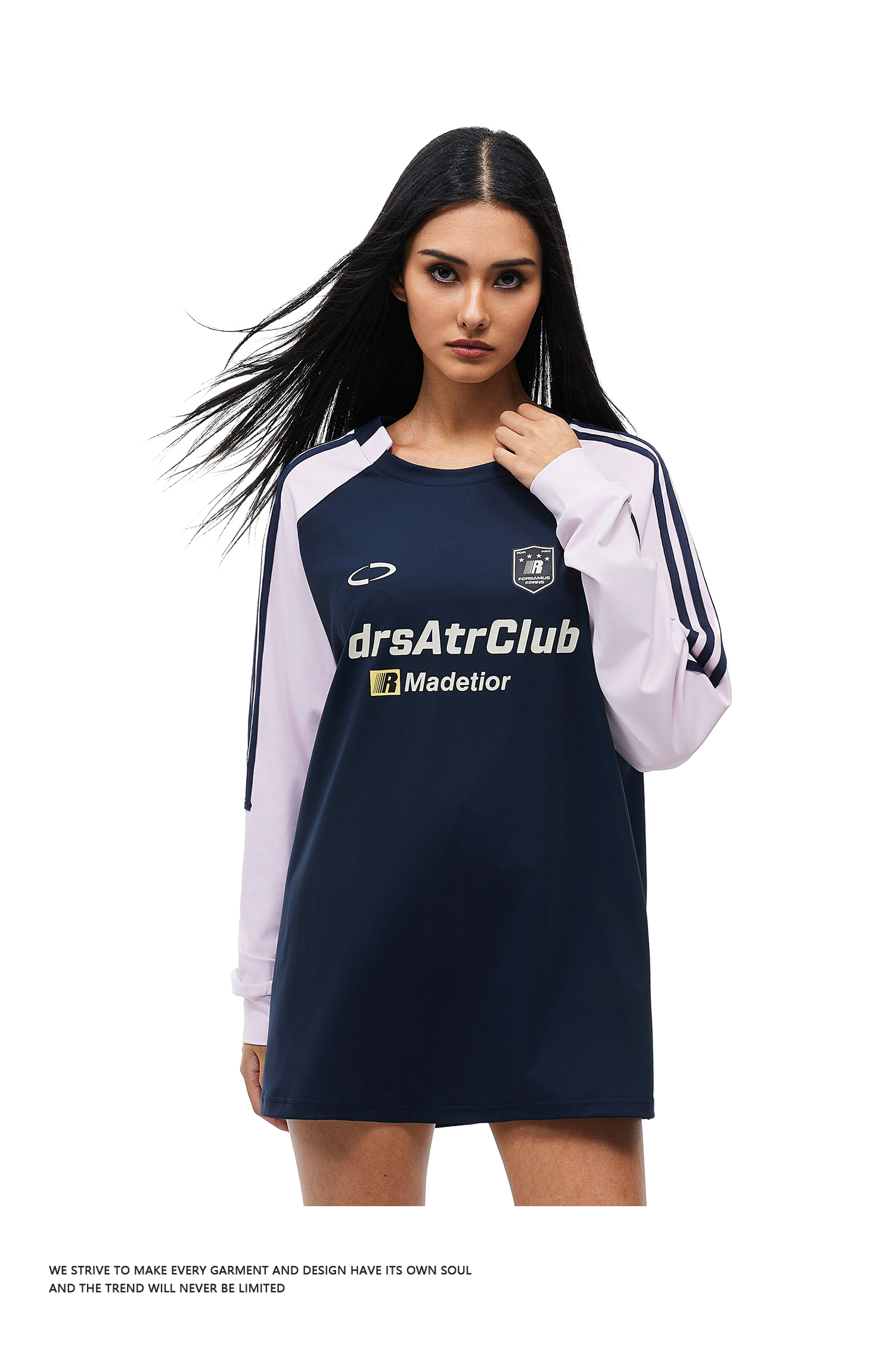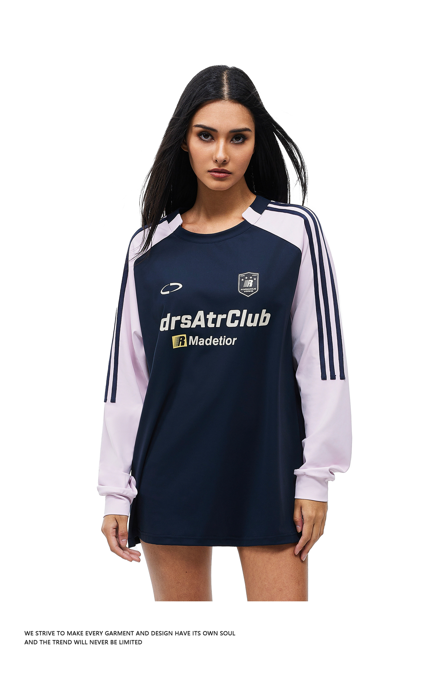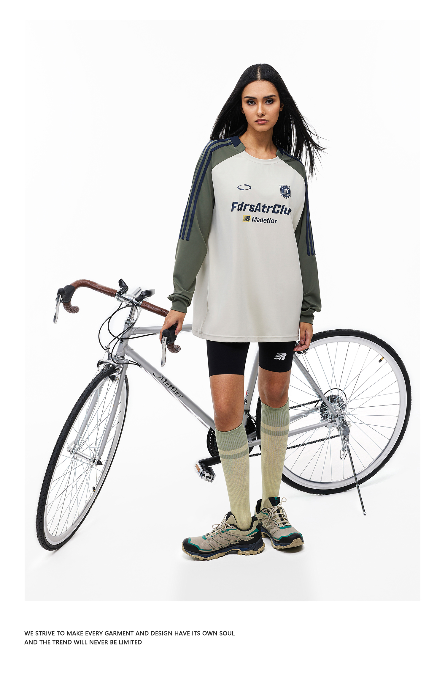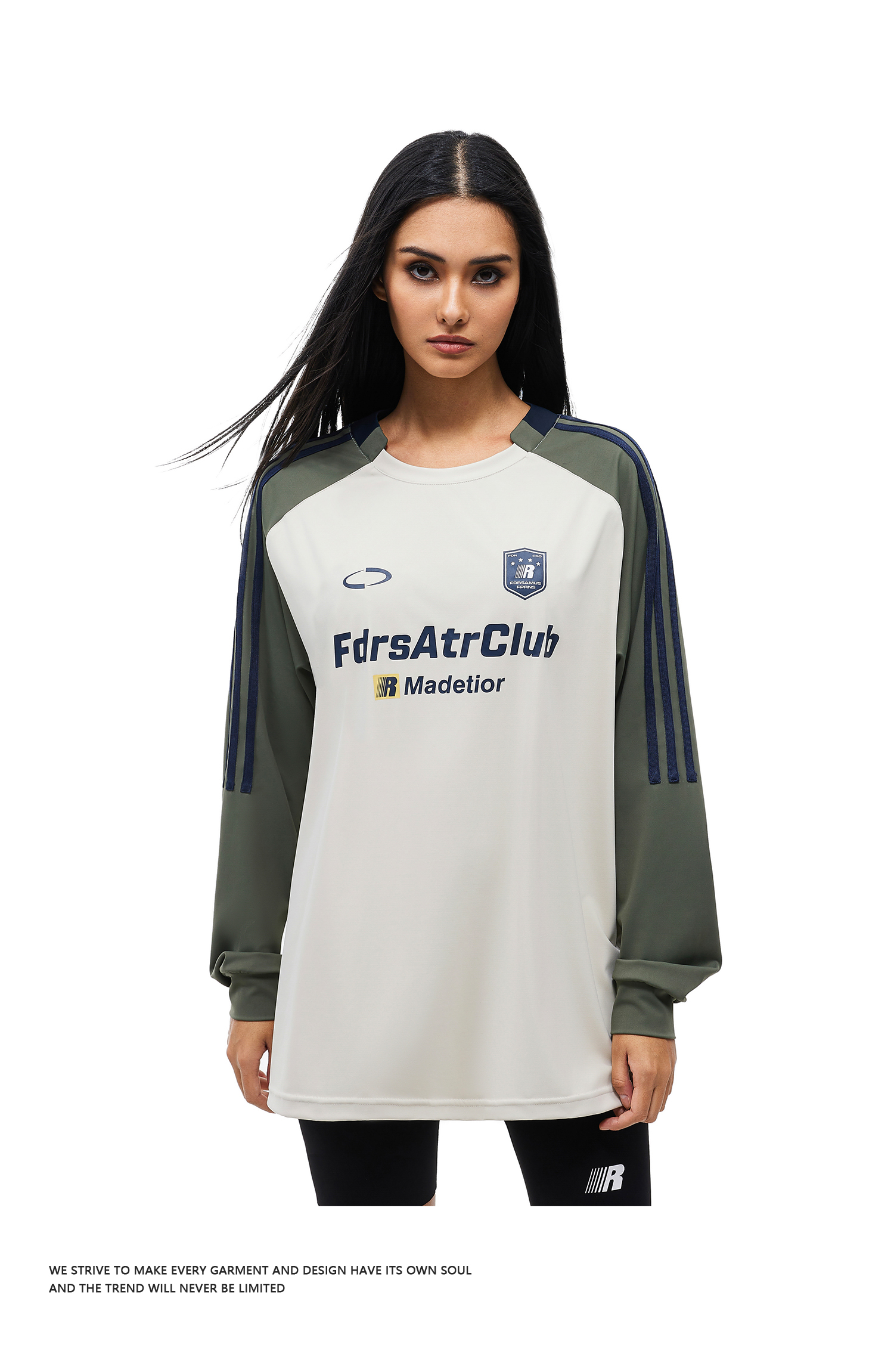 【178元任选3件】FDR官方店 跑道d字绣花运动嵌线长袖T恤男女秋季宽松圆领情侣上衣