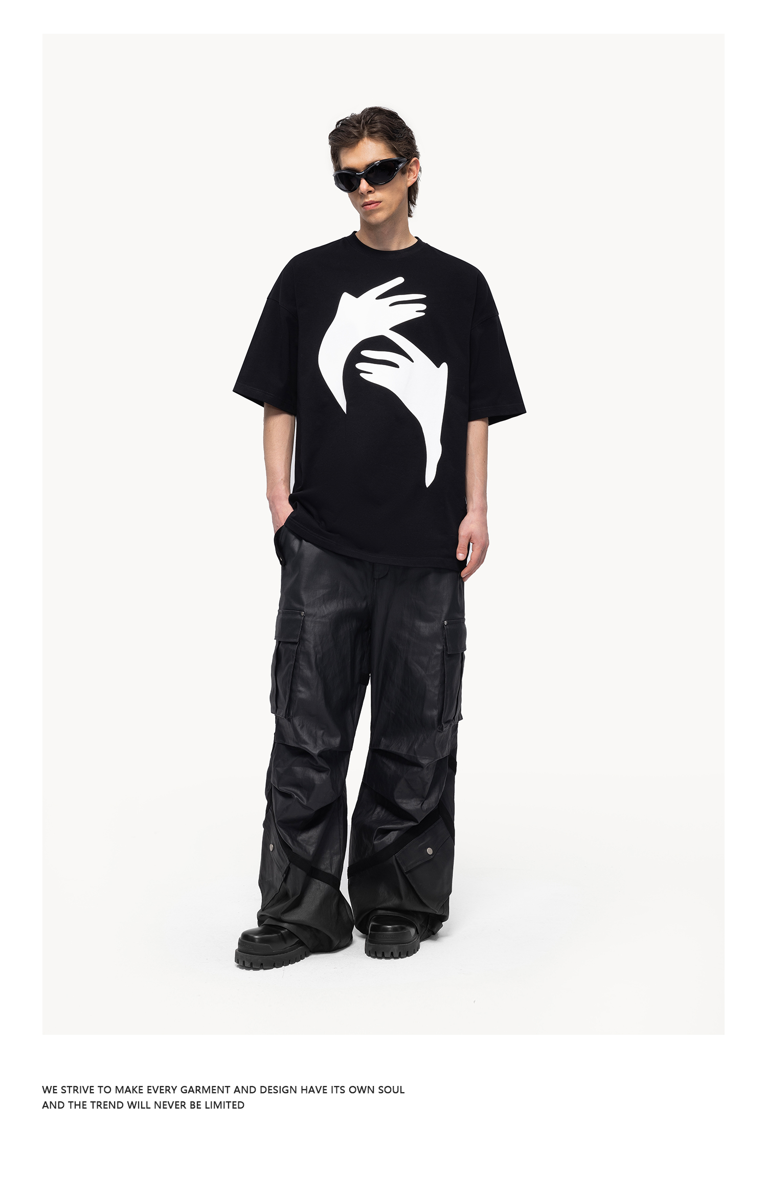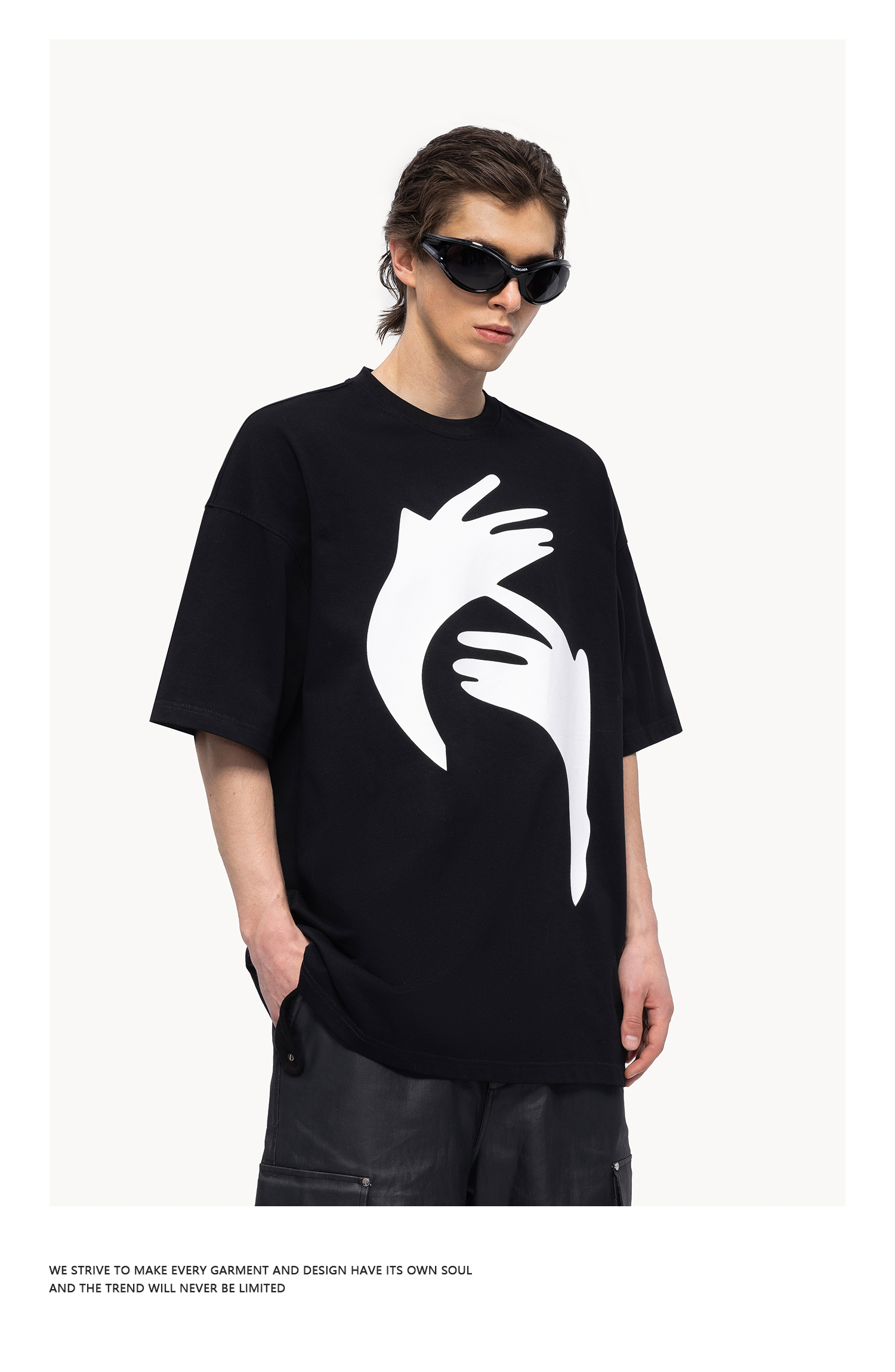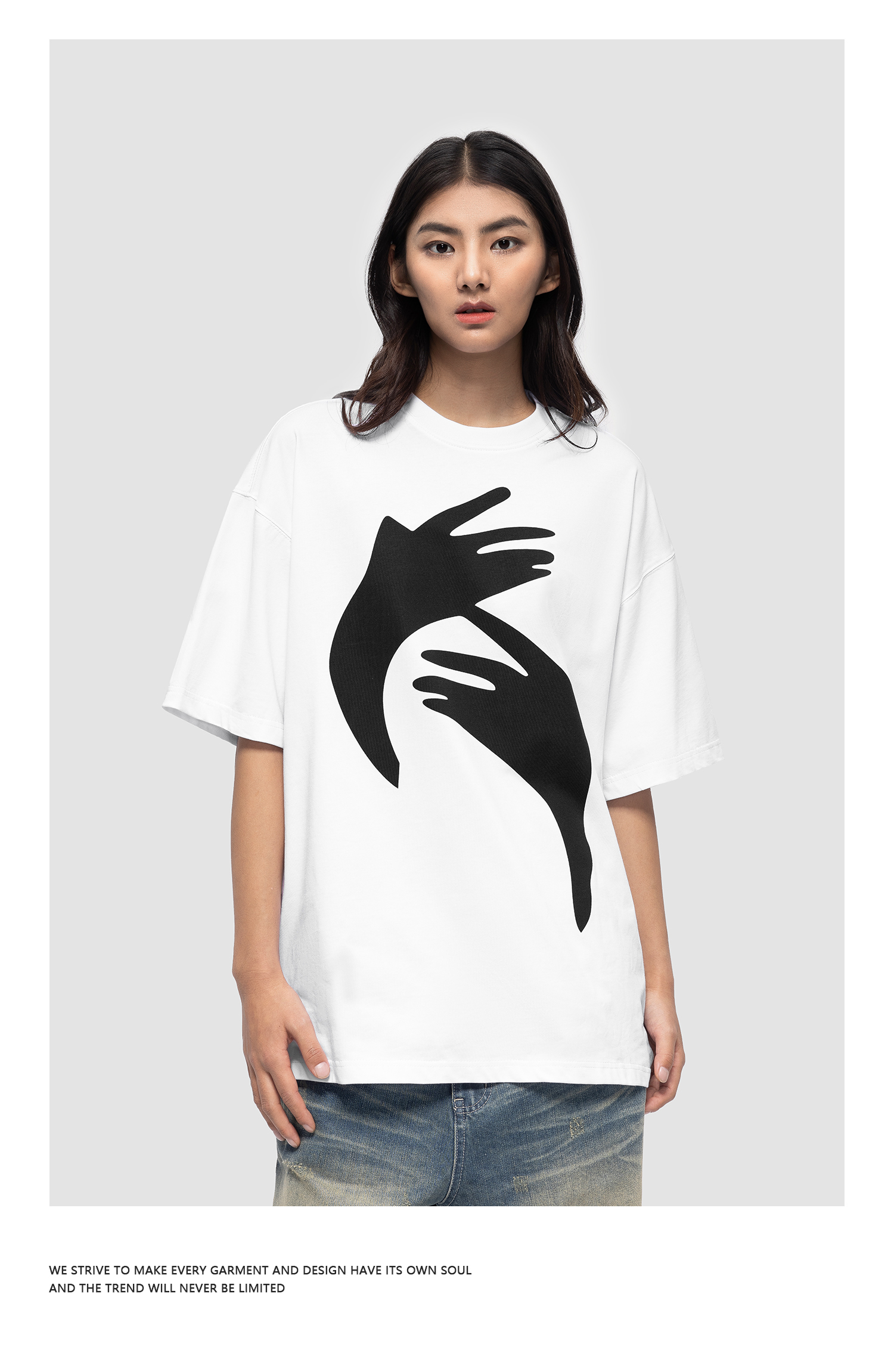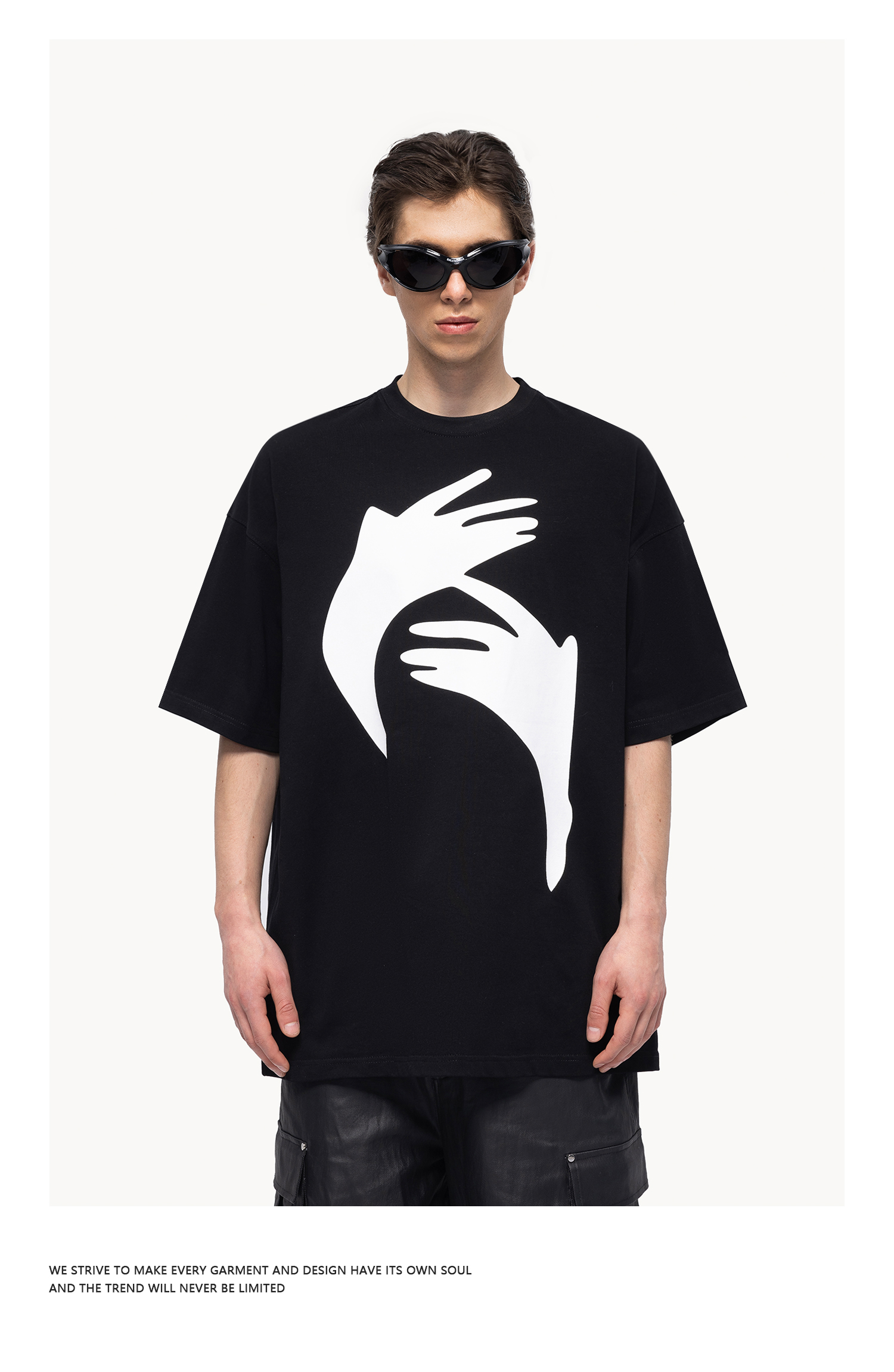 FDR官方店 手势印花运动情侣美式短袖t恤男女重磅小众潮牌体恤女