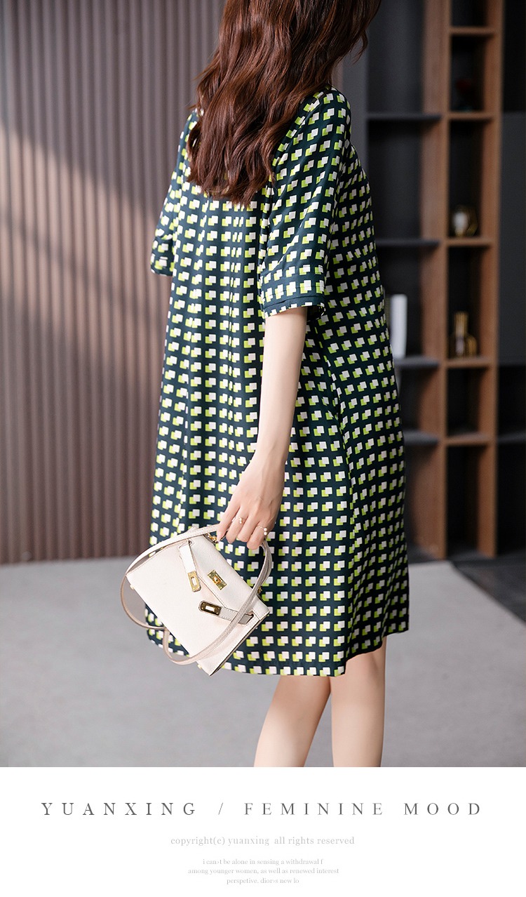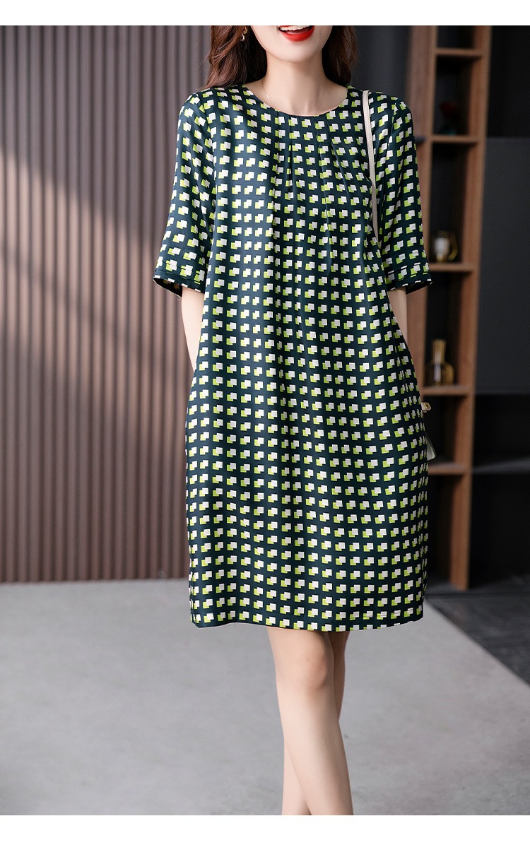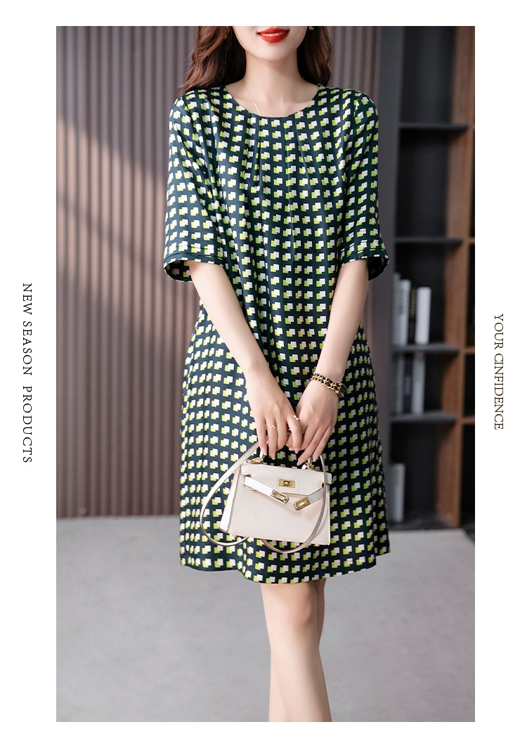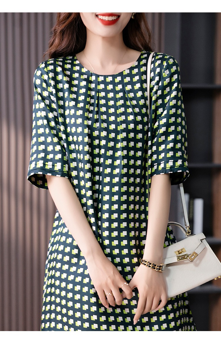 89151原形休闲真丝连衣裙女中长款2024春夏季新款印花显瘦桑蚕丝裙子