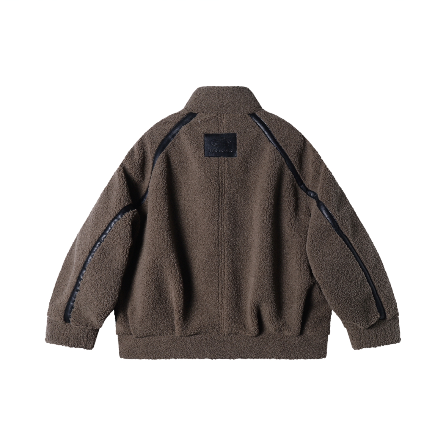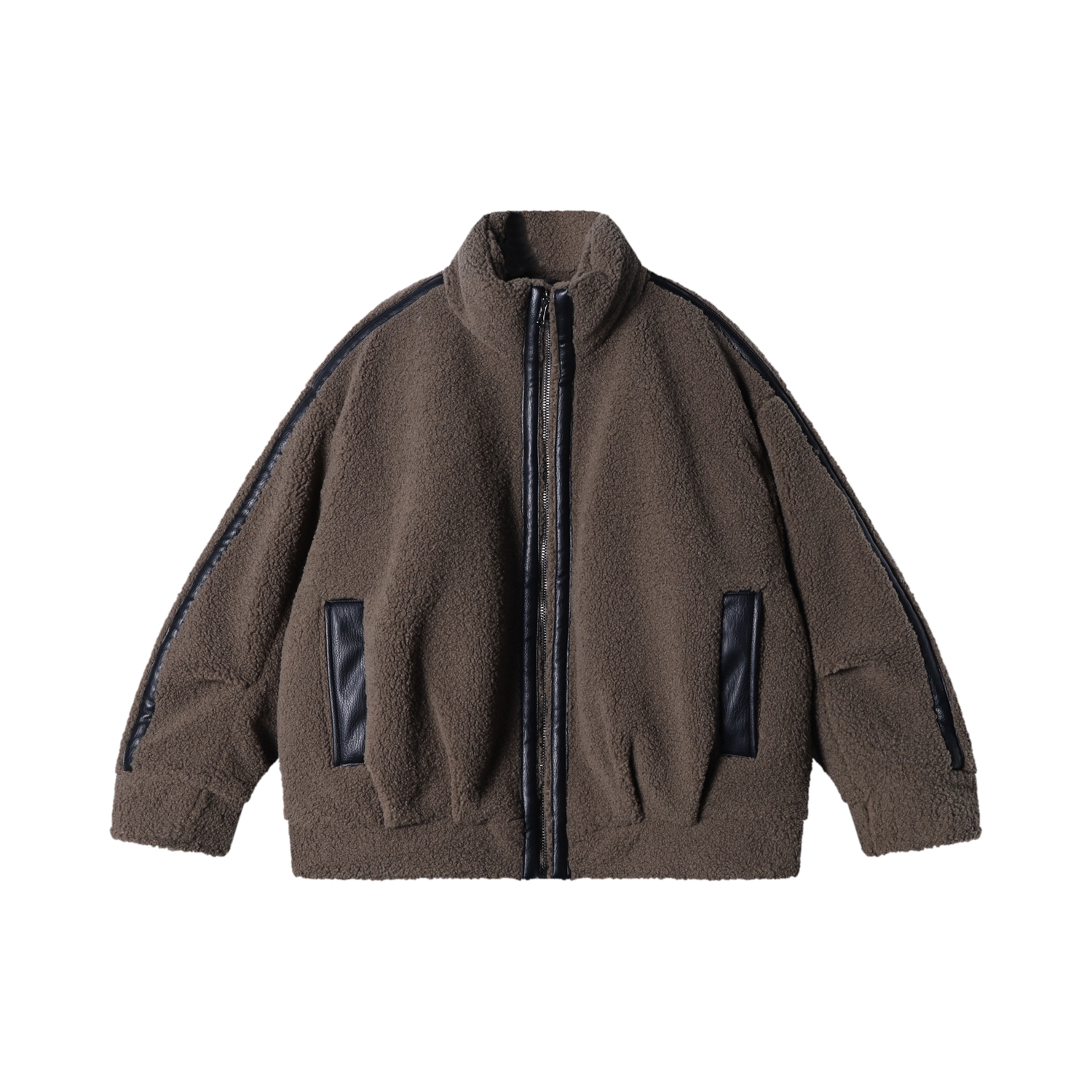 X055SDSA男士秋冬新款痞帅男装复古休闲撞色拉链立领羊羔绒羽绒百搭