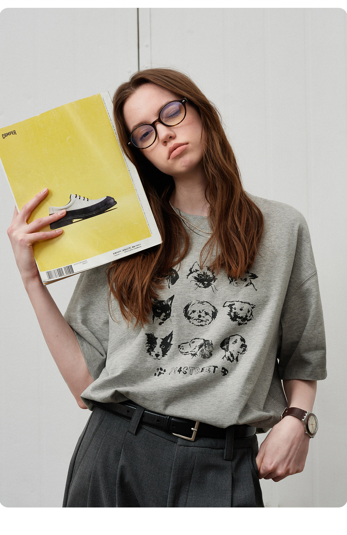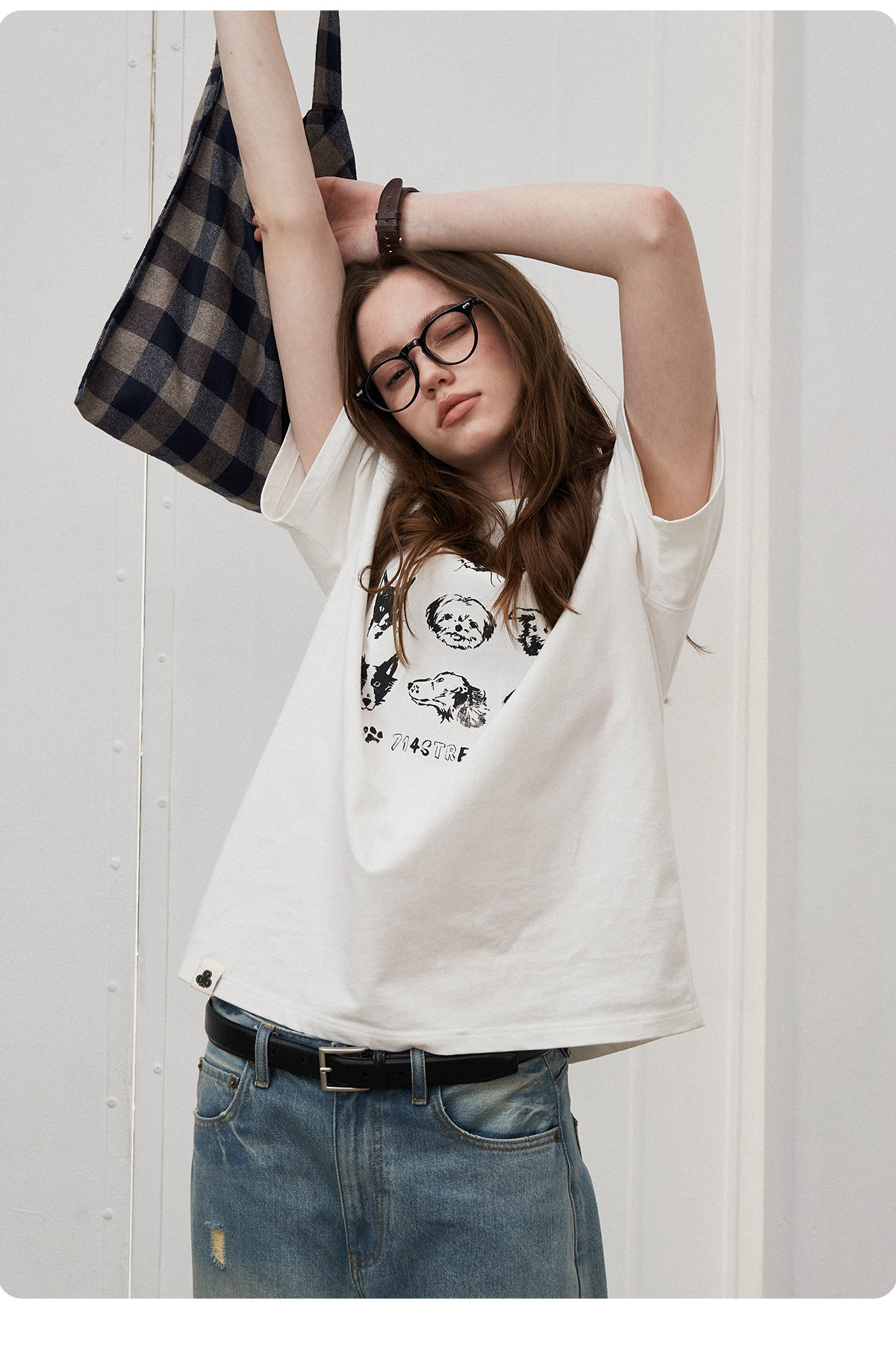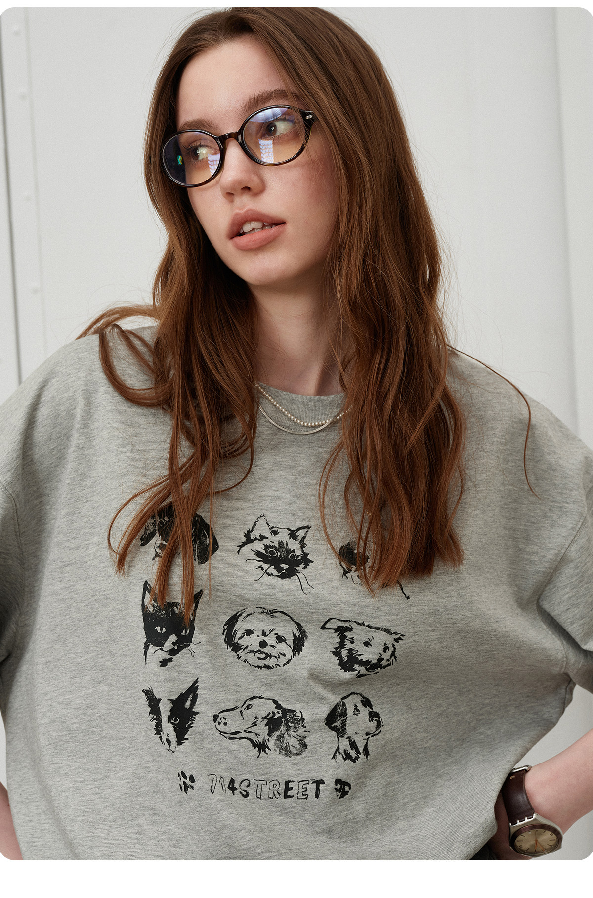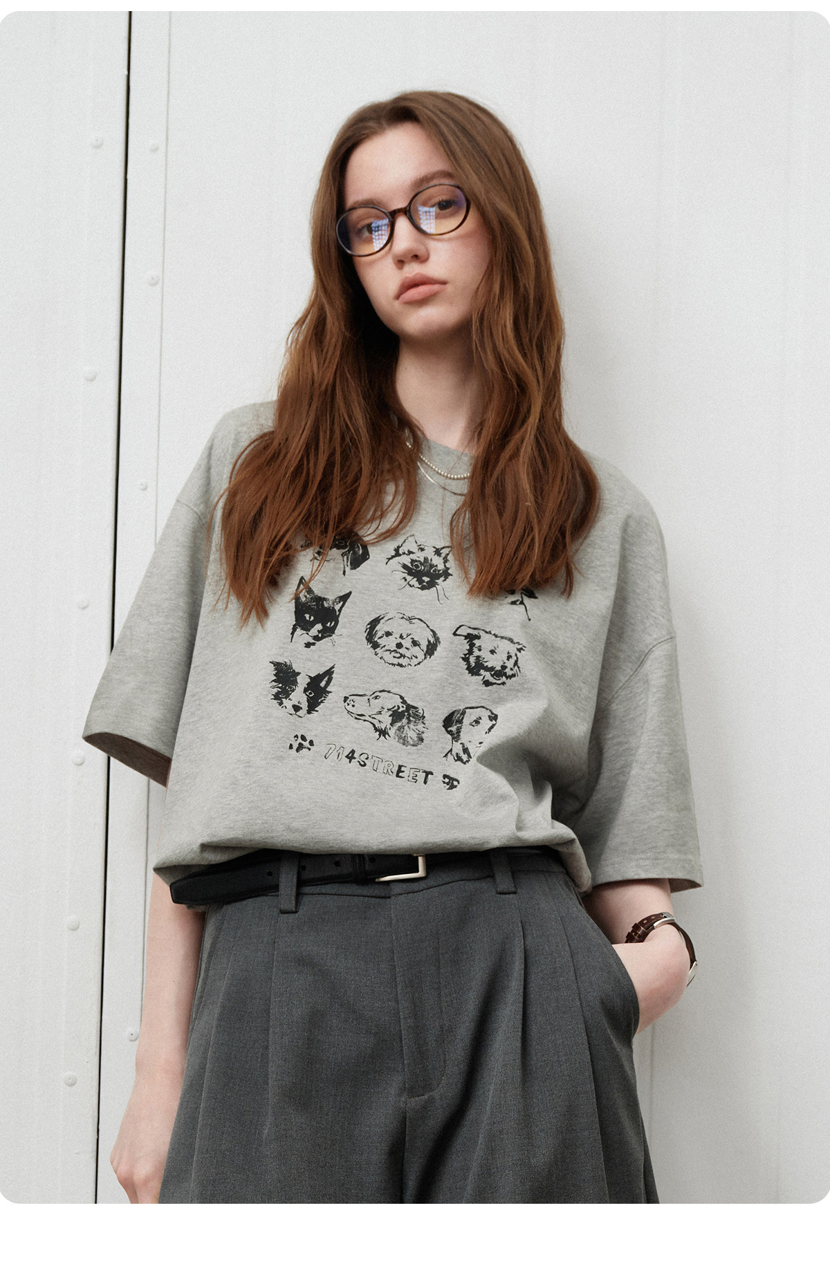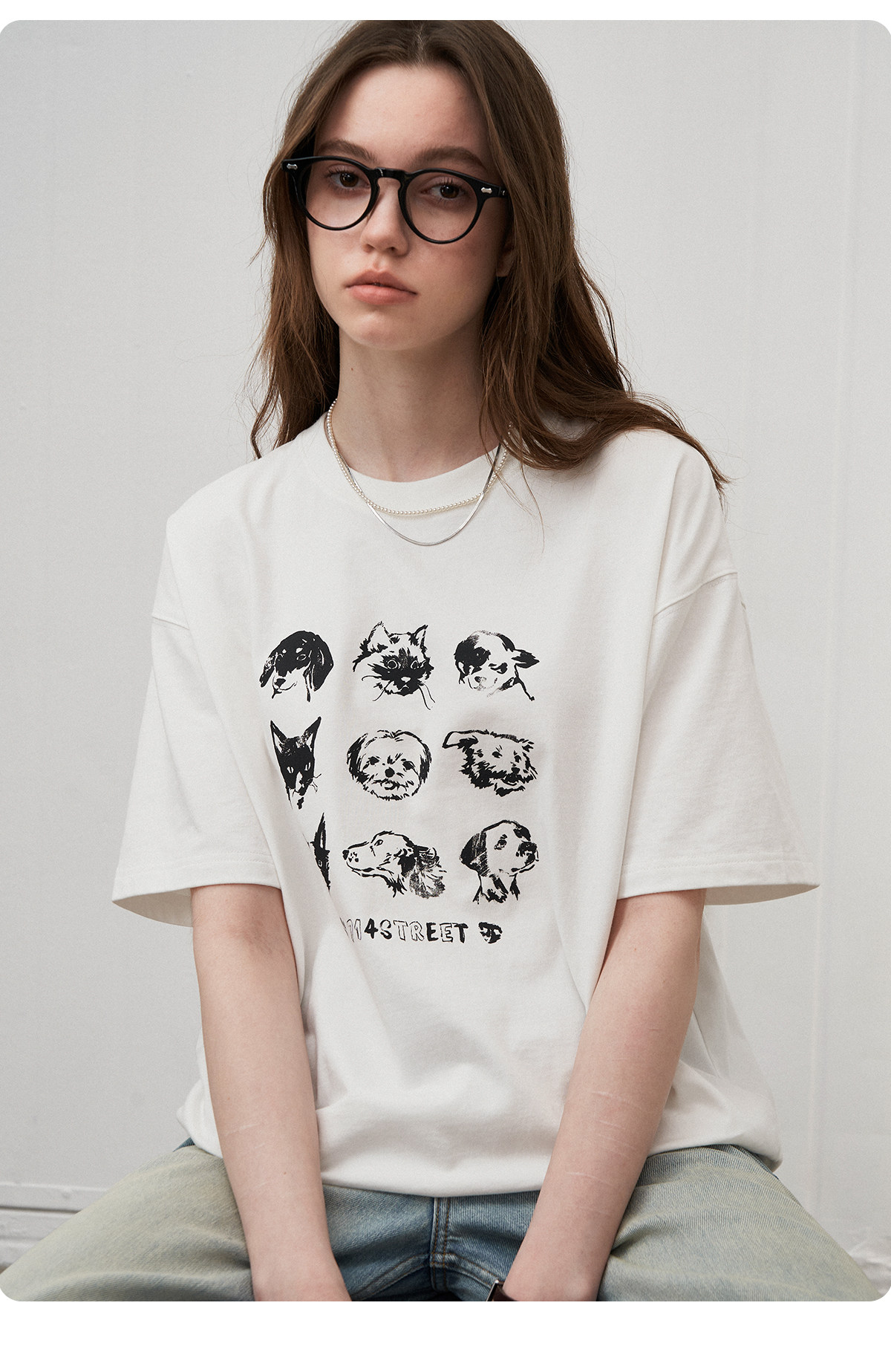 714street夏季美式复古水洗做旧动物印花插肩短袖T恤男情侣款上衣