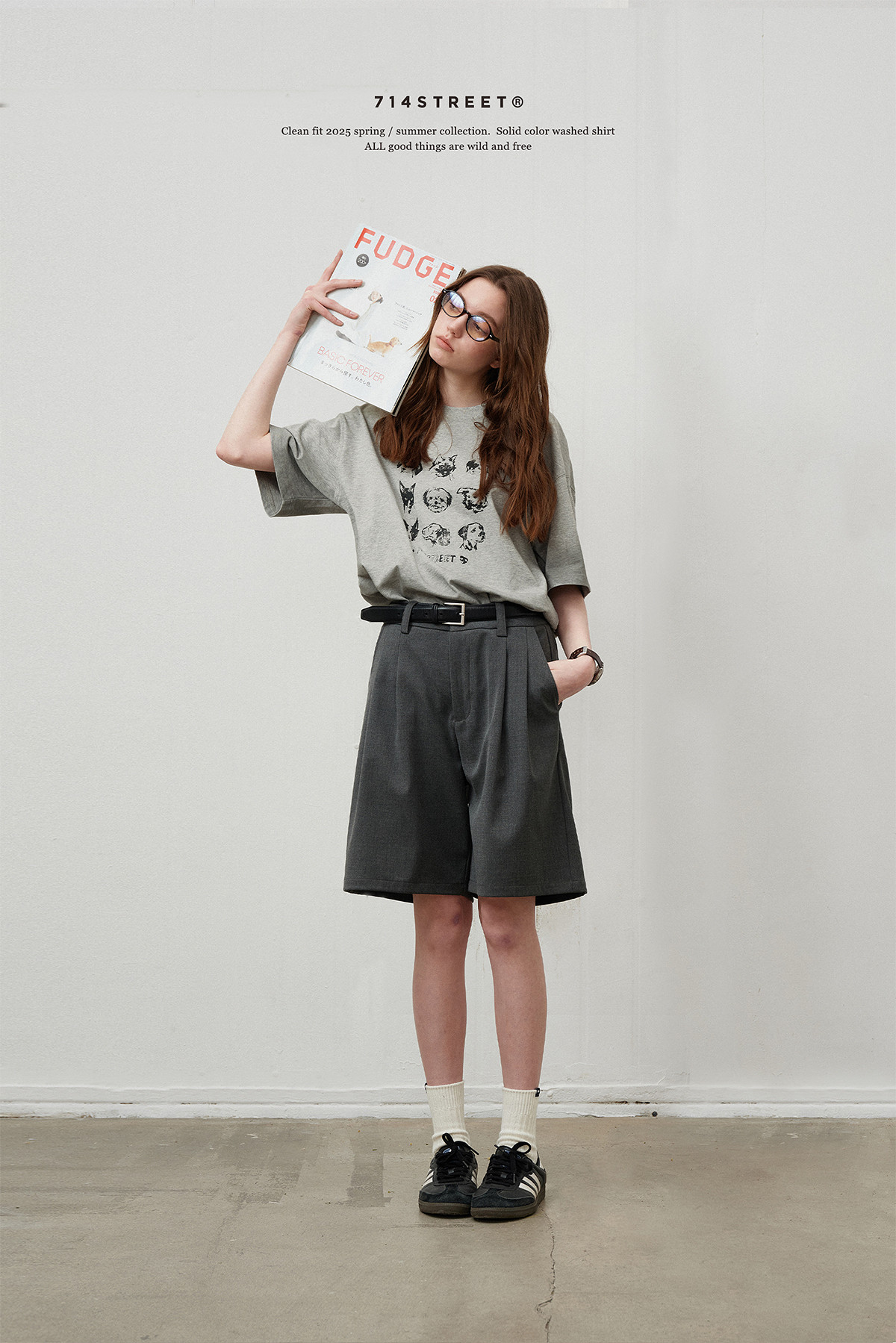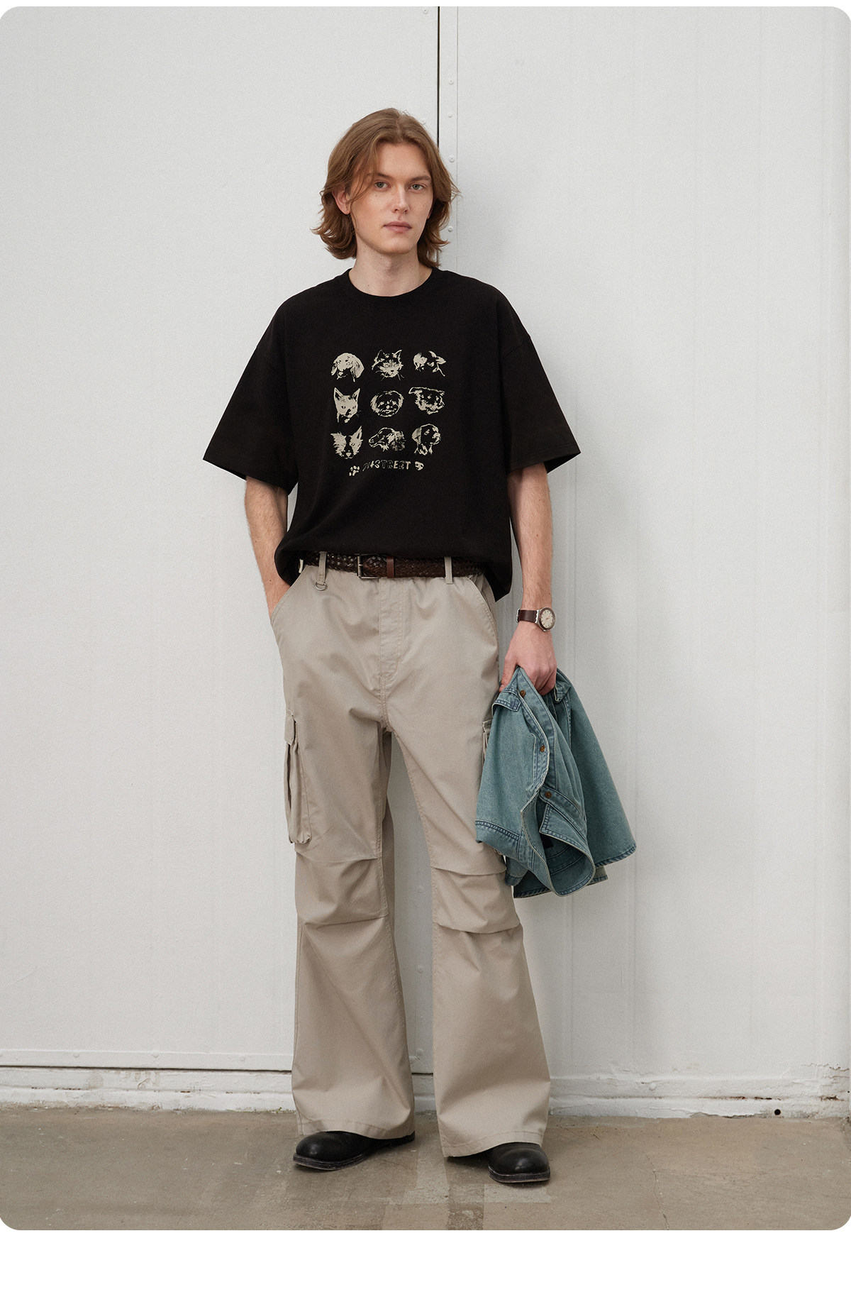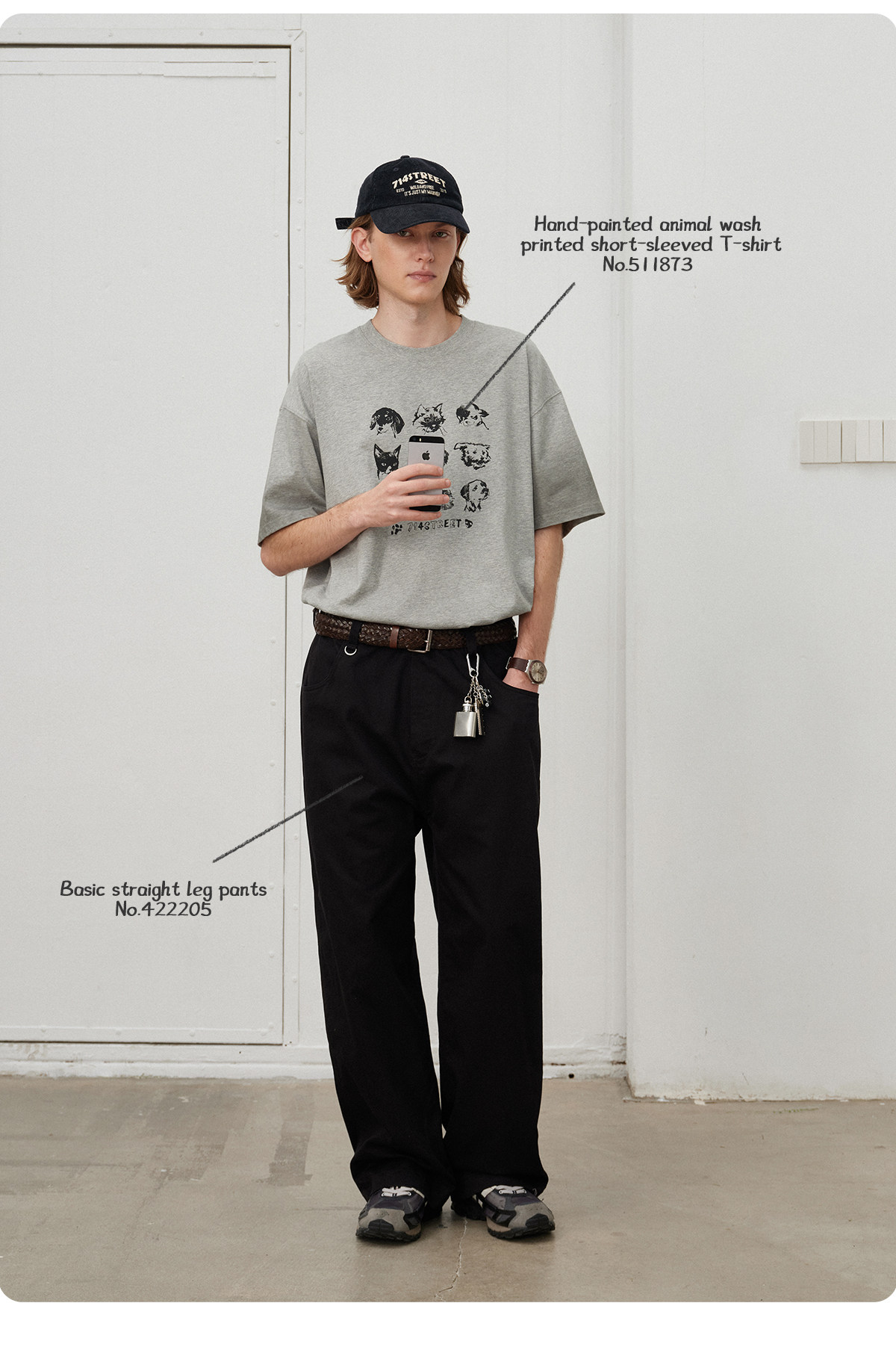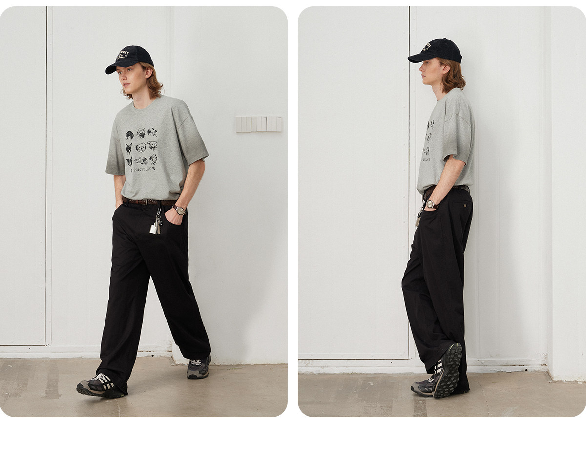 714street水洗纯棉宽松休闲裤男2025秋季新款弯刀裤cleanfit长裤