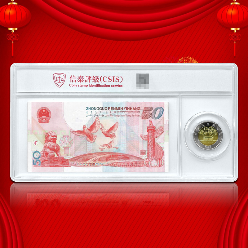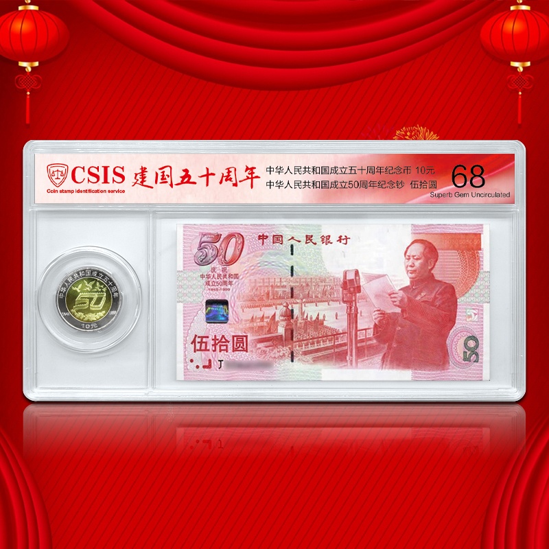 建国50周年纪念钞+币套装 封装版 一币一钞