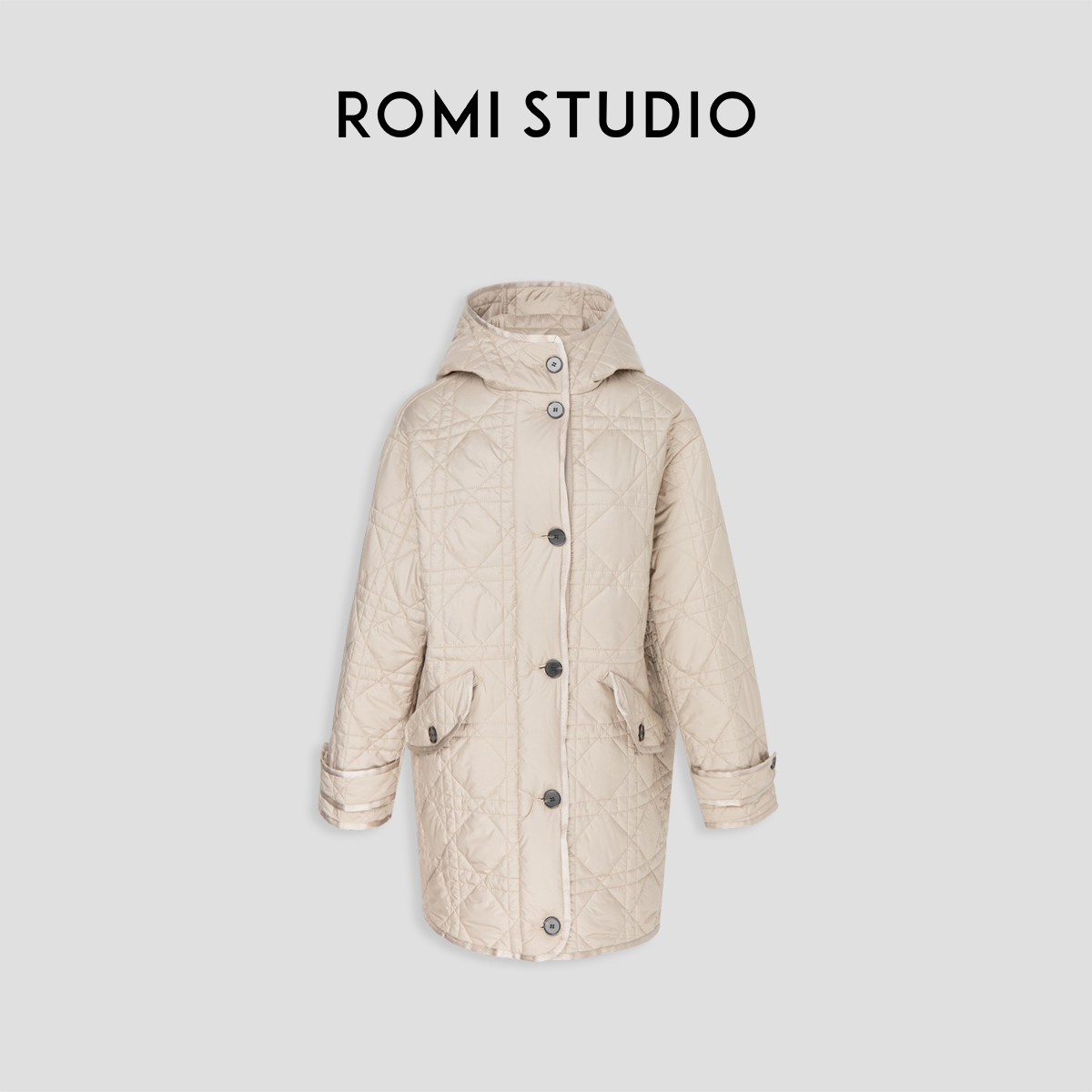ROMI STUDIO卡其色菱格长款棉服W2495