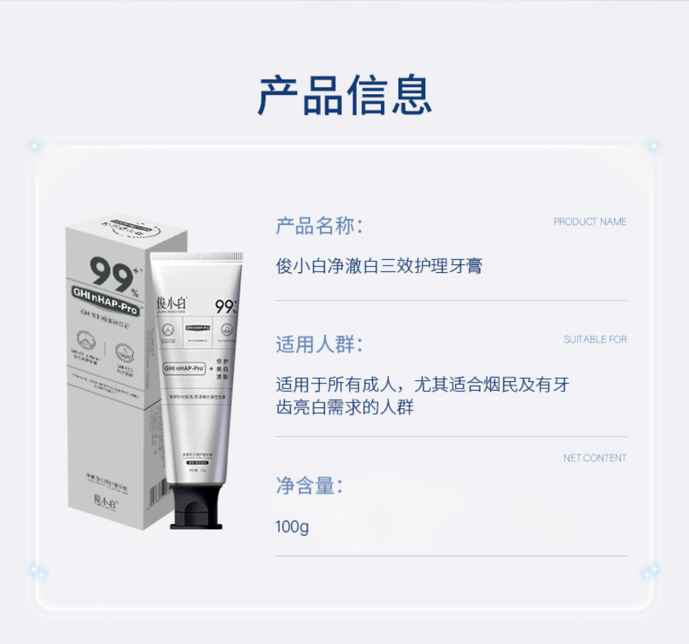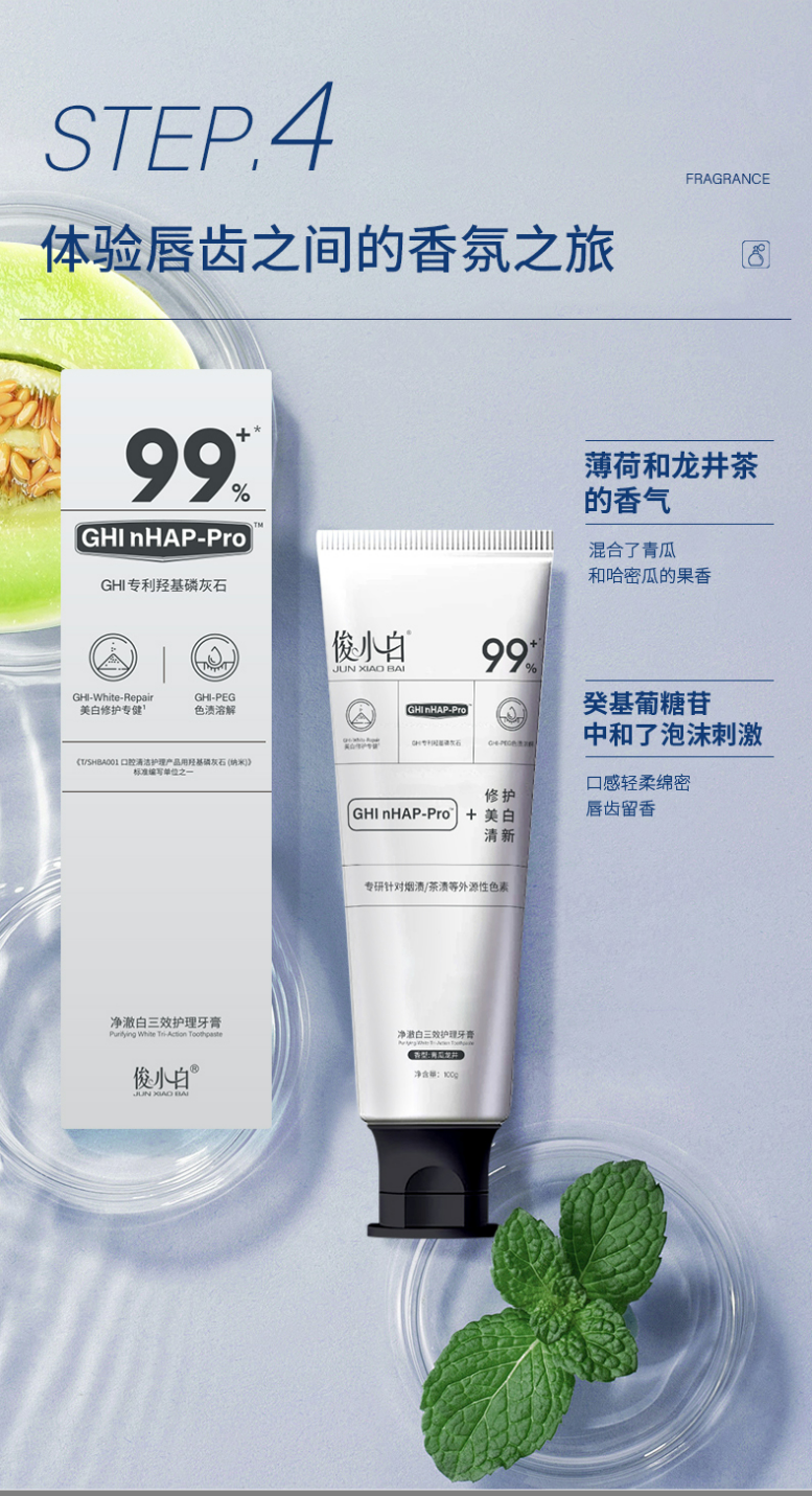 俊小白净澈白三效护理牙膏清新口气美白修护牙龈护理