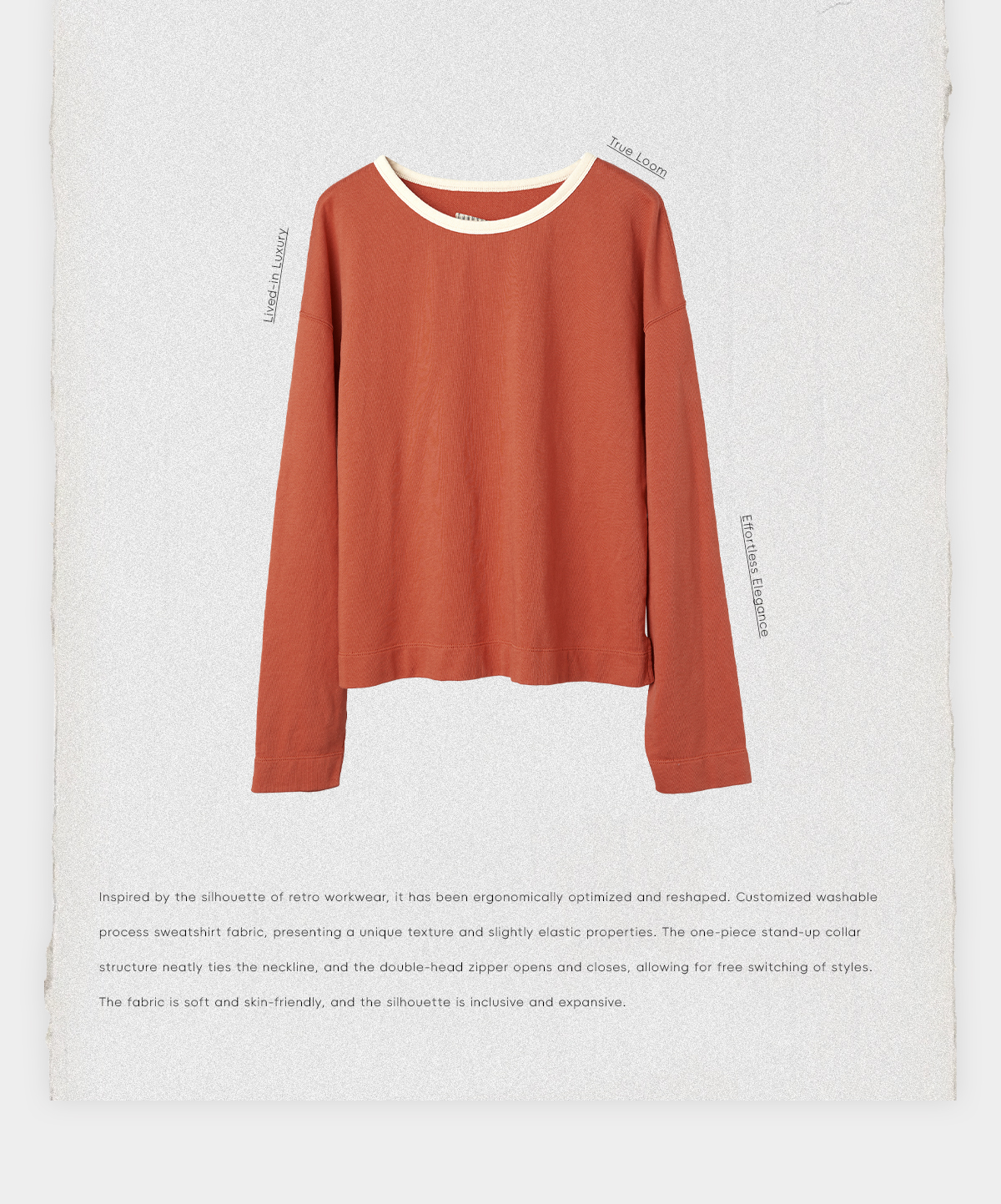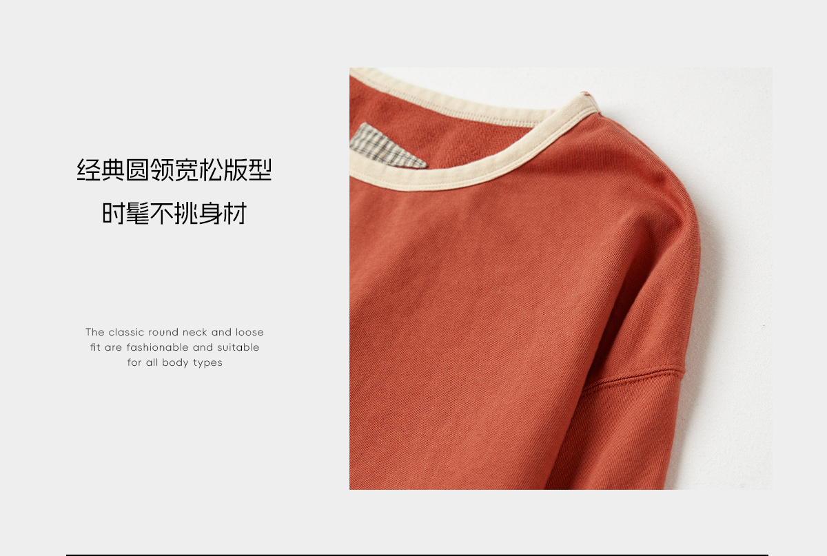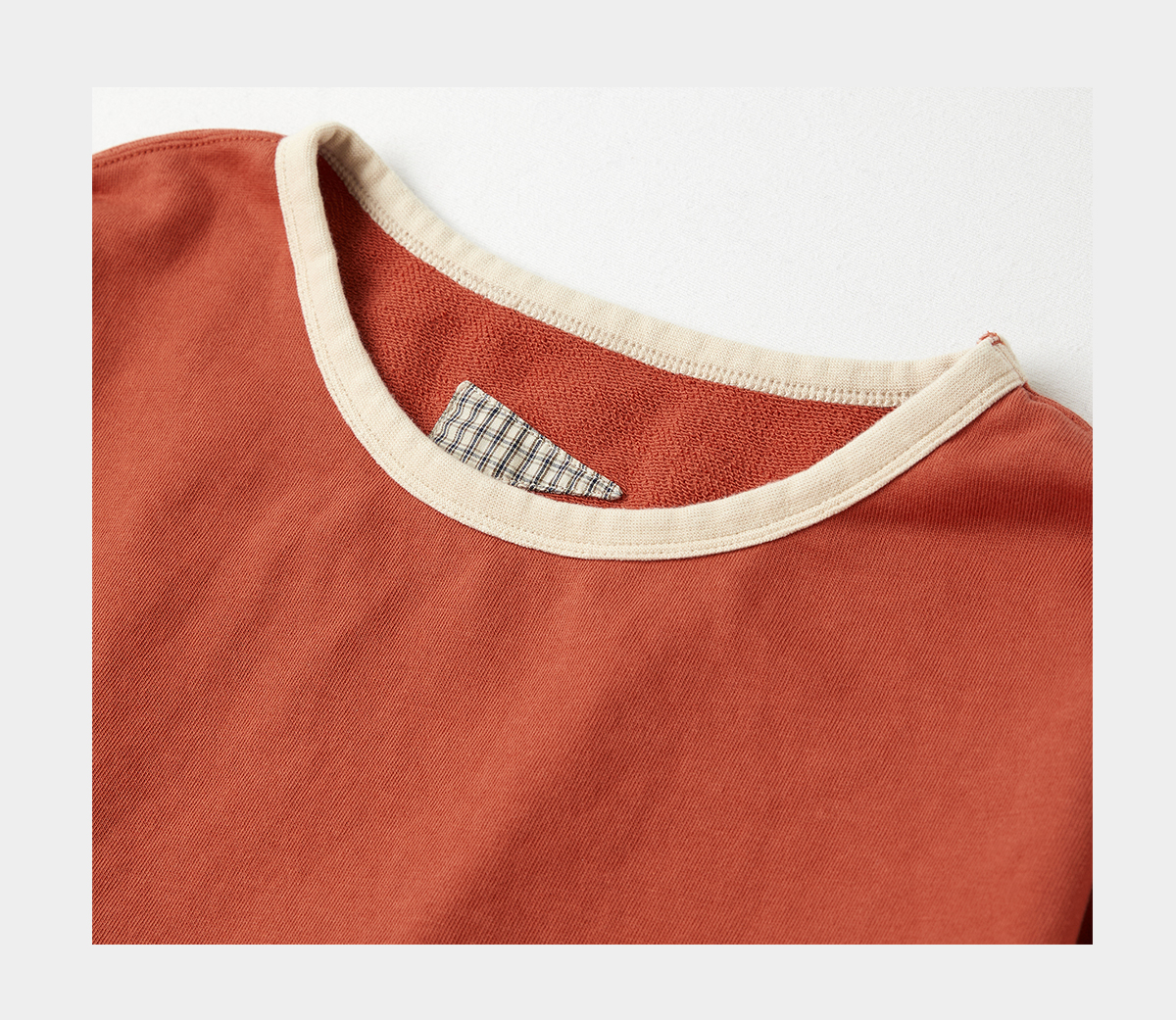 ROMI STUDIO100%棉质法式橘红毛圈布撞边宽松长袖上衣 RWCAS65322