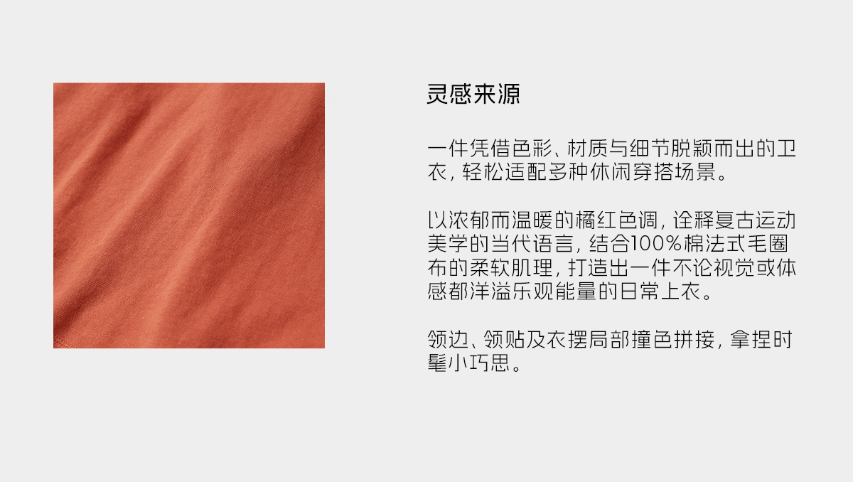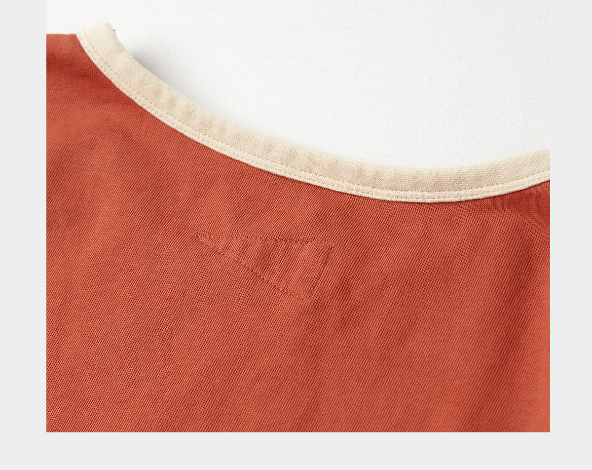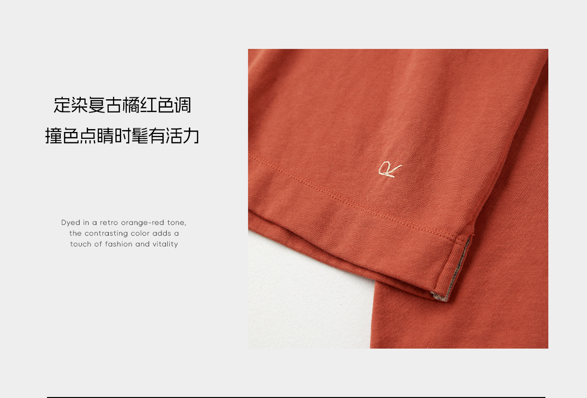 ROMI STUDIO100%棉质法式橘红毛圈布撞边宽松长袖上衣 RWCAS65322