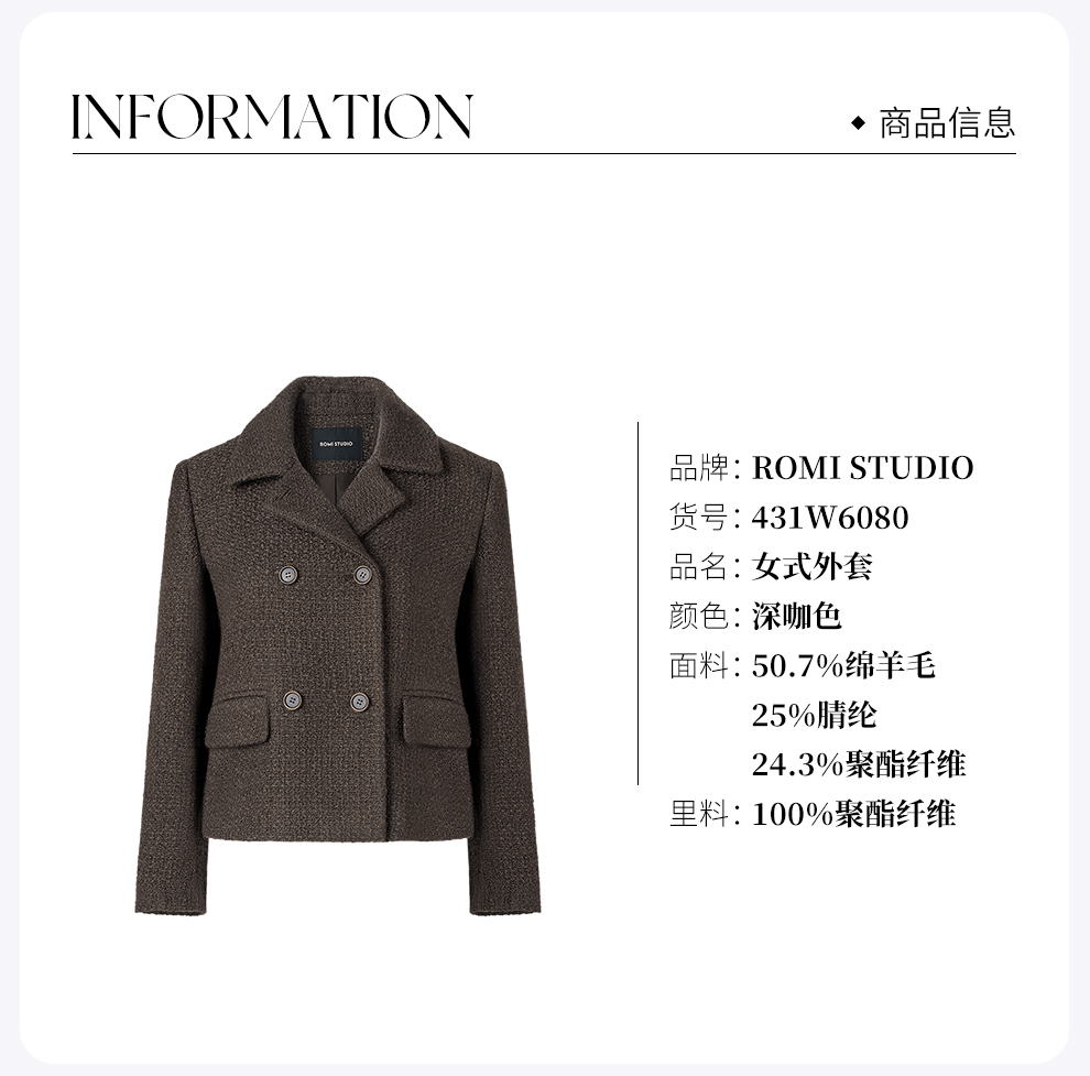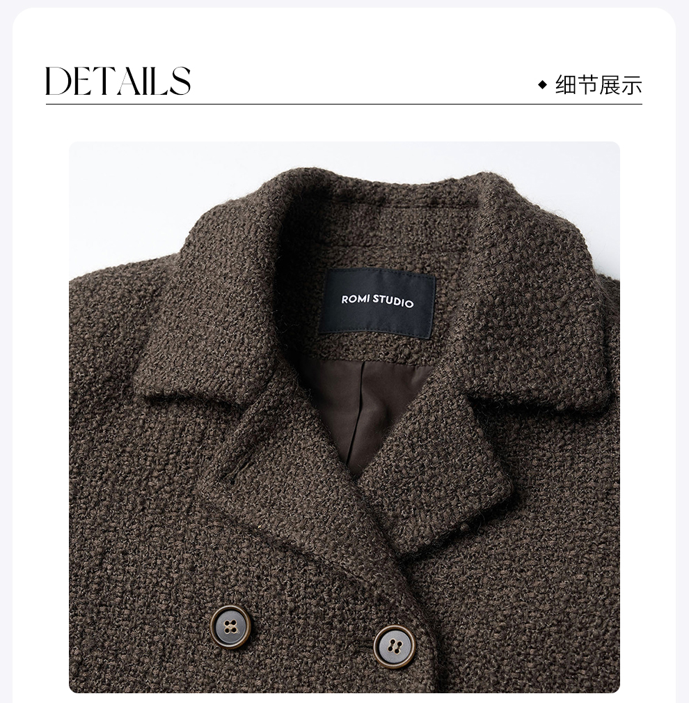 ROMI STUDIO“法式优雅”高支羊毛带子纱编织双排门襟外套 431W6080