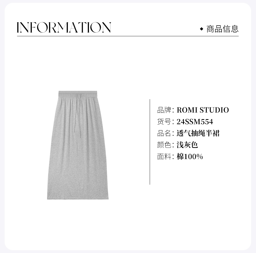 ROMI STUDIO“自由呼吸” 32s16针双股棉肤感透气抽绳半裙24SSM554
