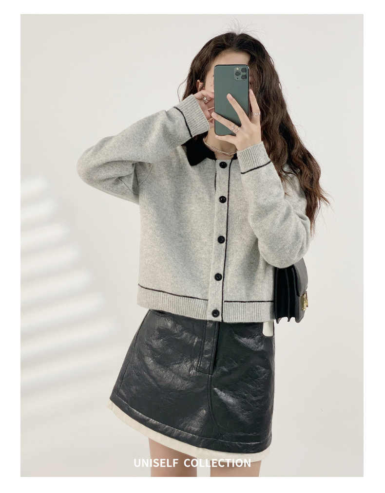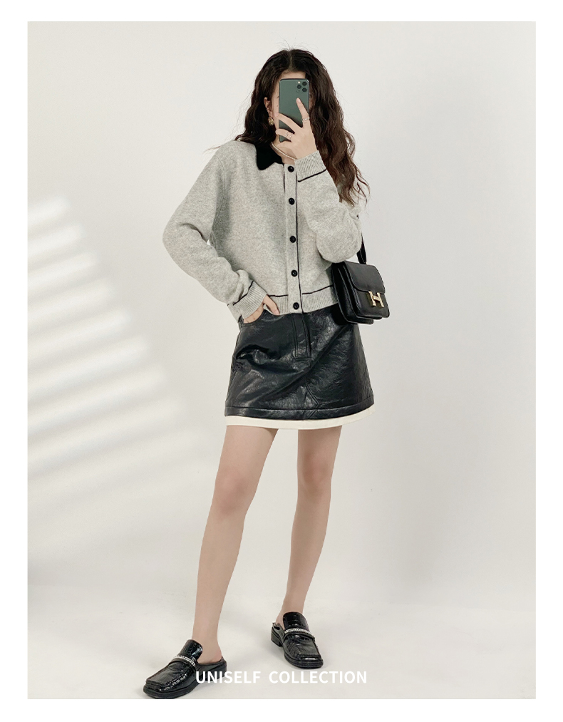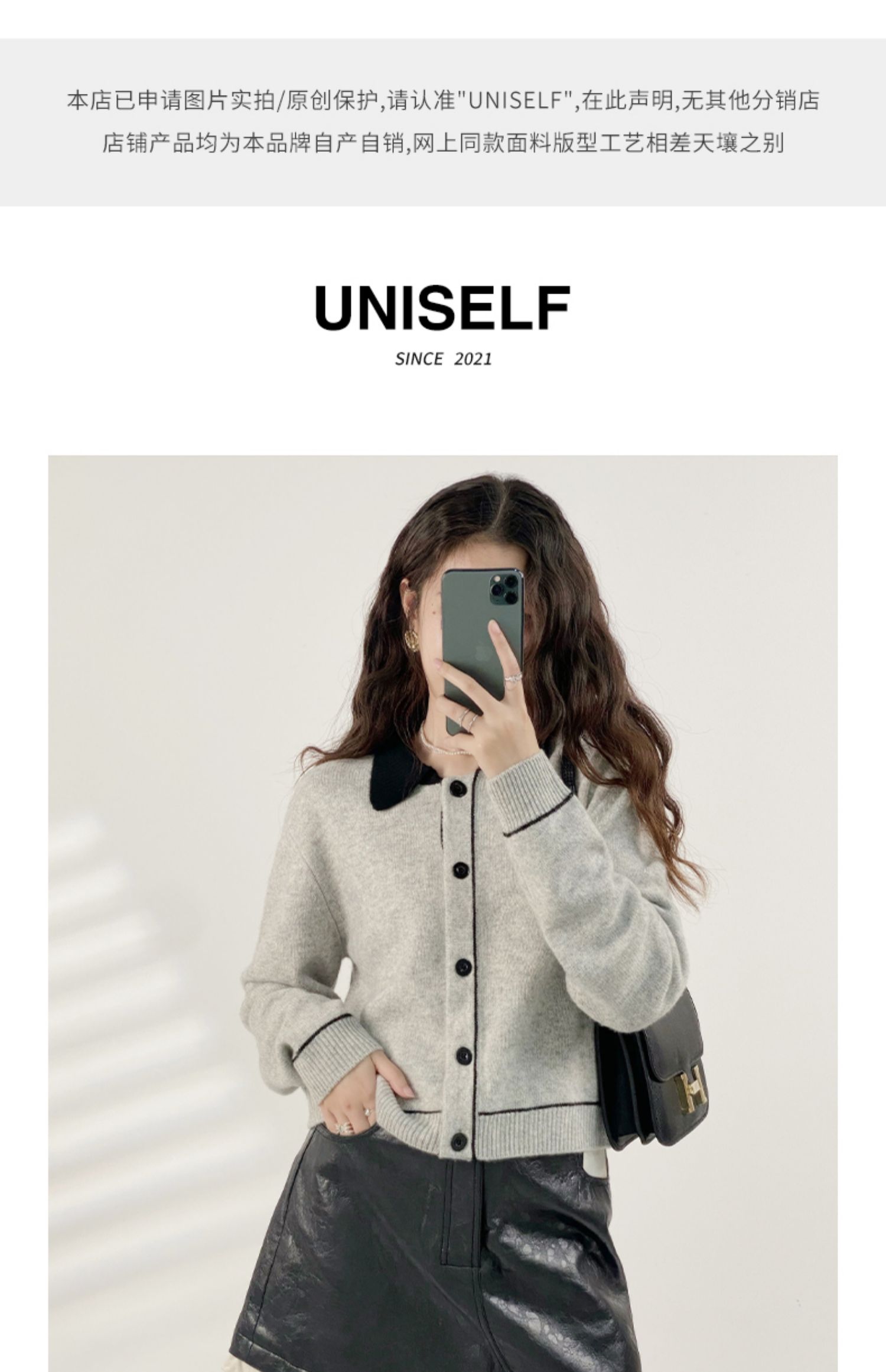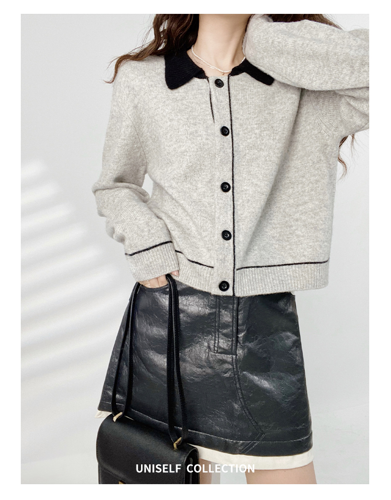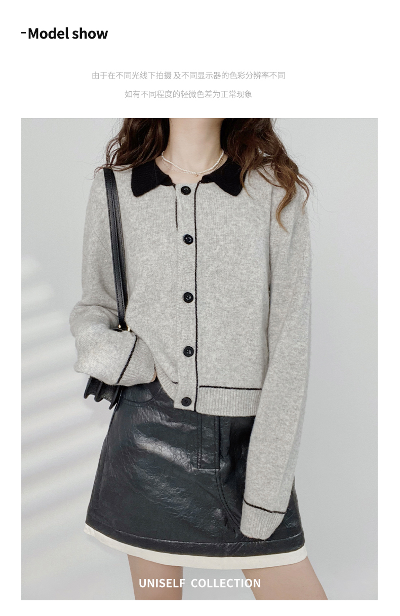 YX【定制7天】法式polo领质感上衣女2023新款秋装小个子休闲百搭时尚羊毛短外套