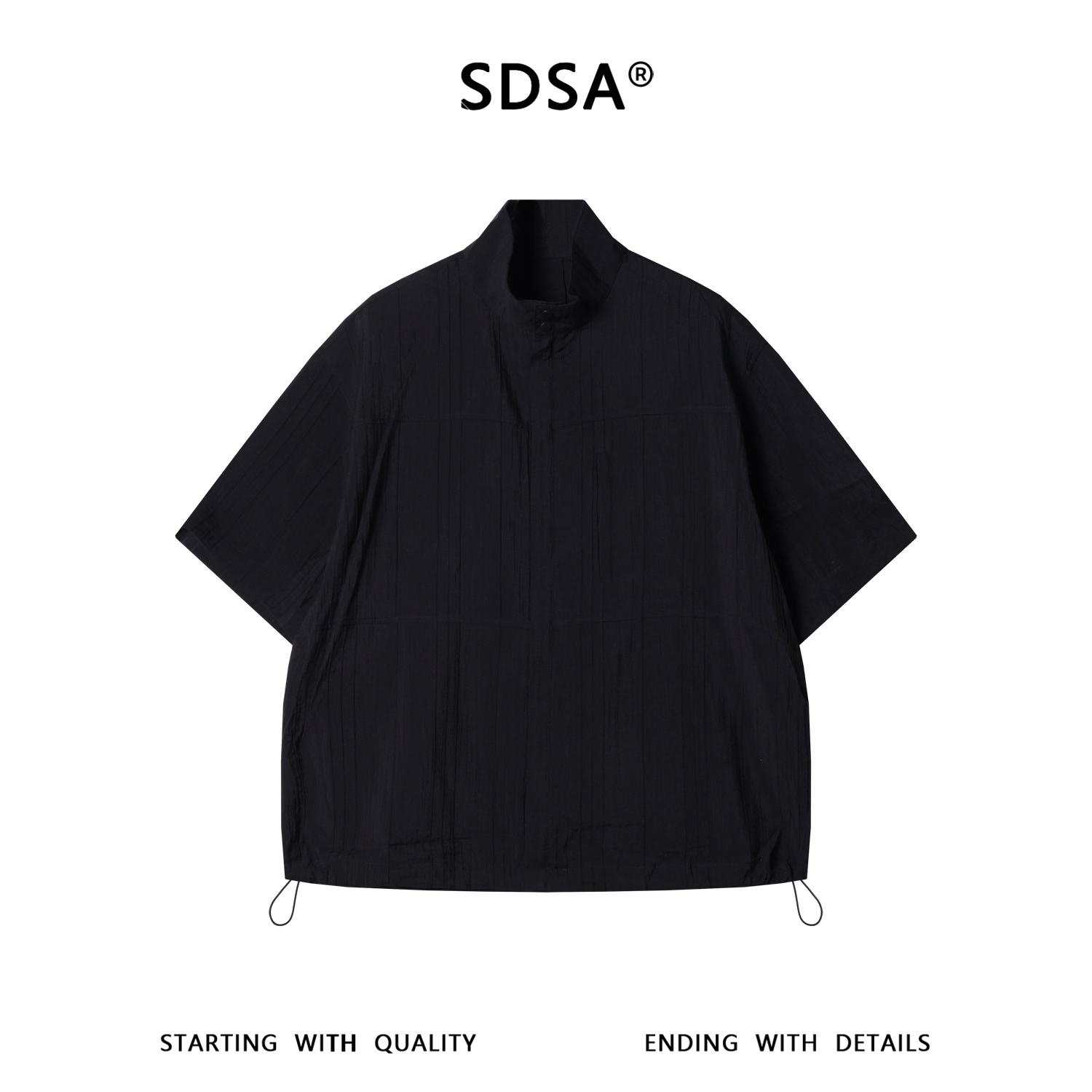 SDSA男装2026新款轻奢老钱风竖纹拉链立领短袖衬衫下摆松紧百搭