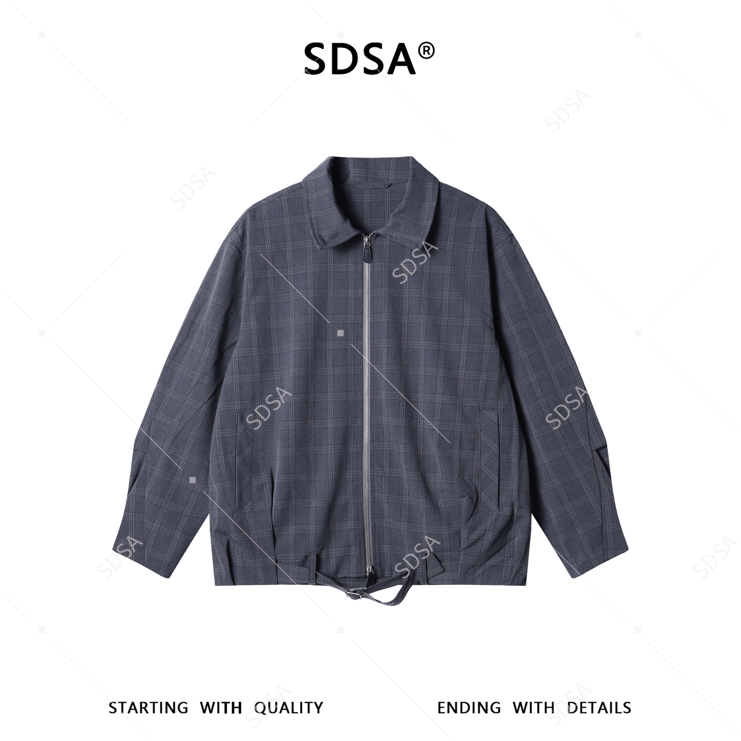 266068SDSA男士春夏新款痞帅男装复古老钱风格纹拉链翻领夹克外套百搭