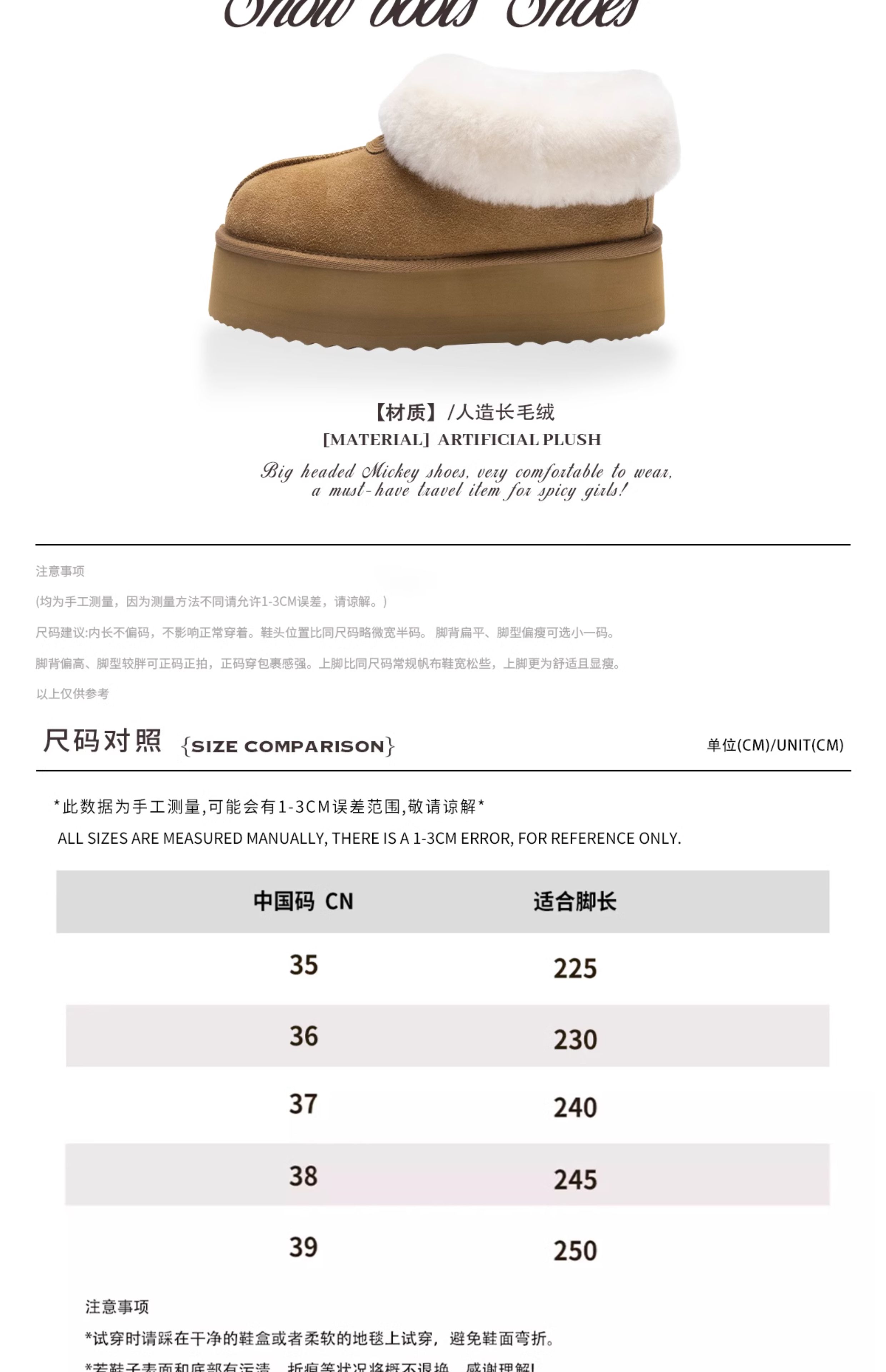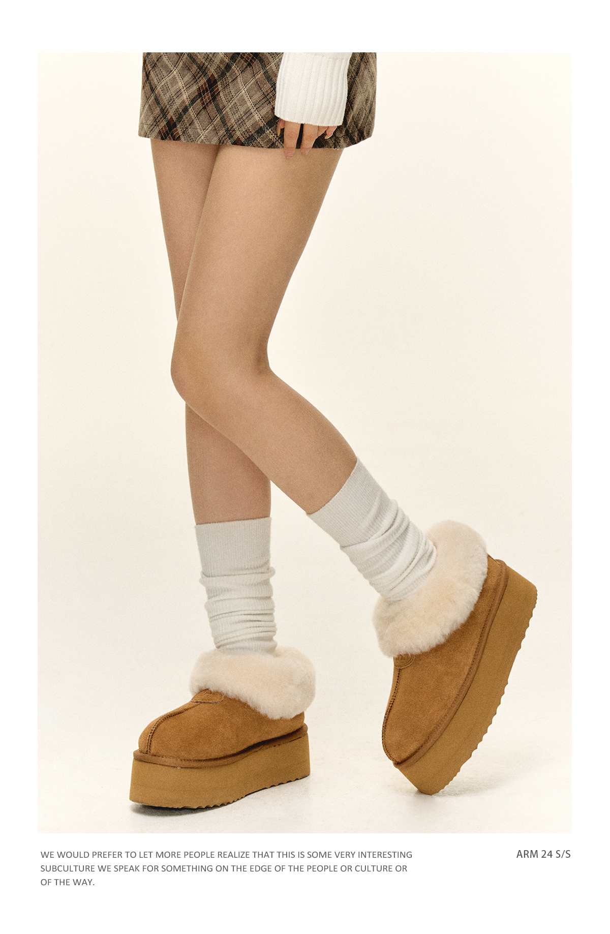 Ariseism&Neatoism 秋冬加绒厚底鞋增高保暖休闲毛毛短筒雪地靴女