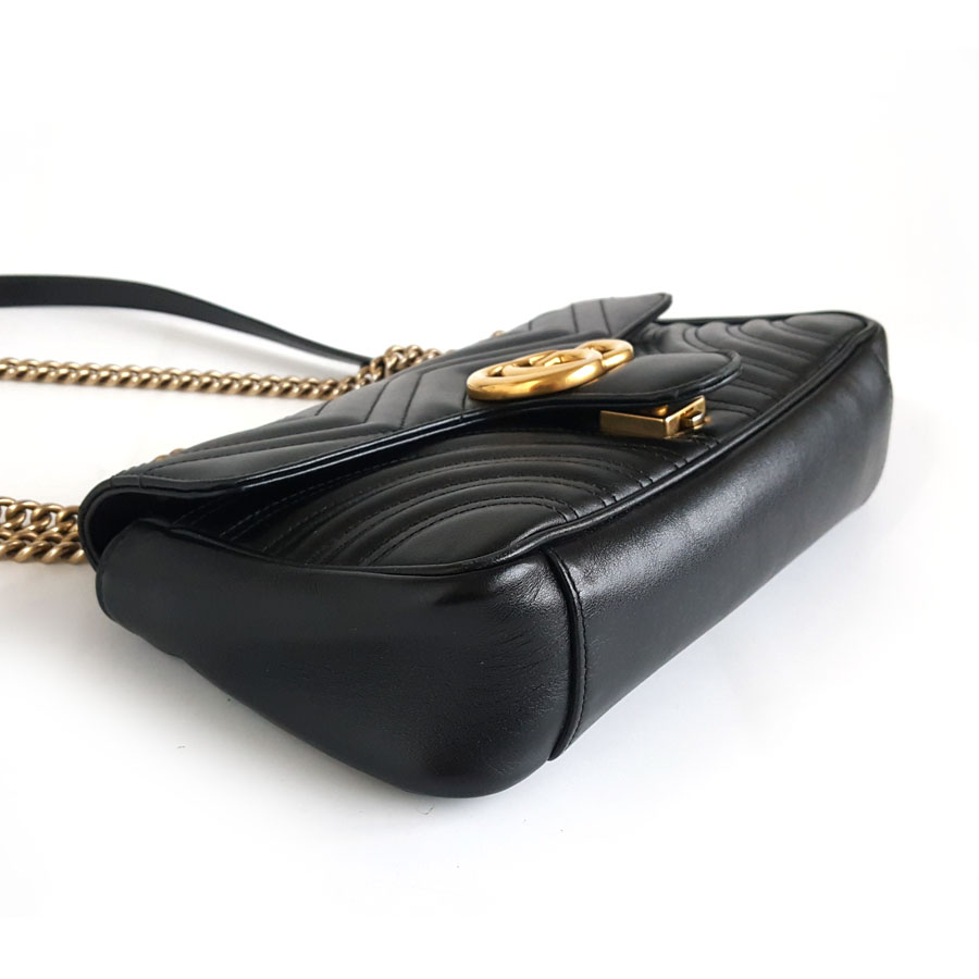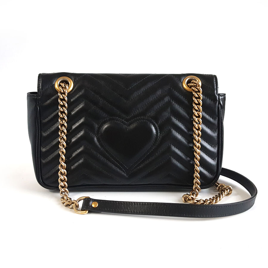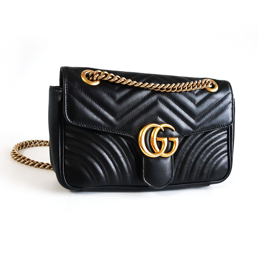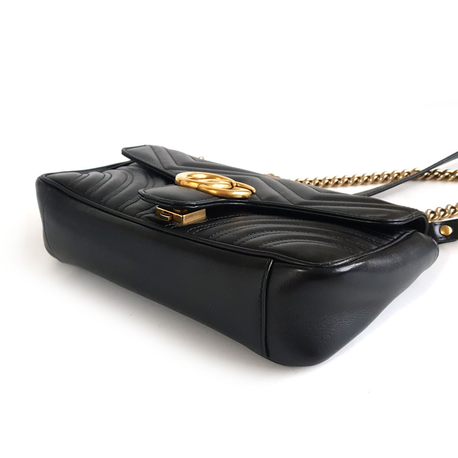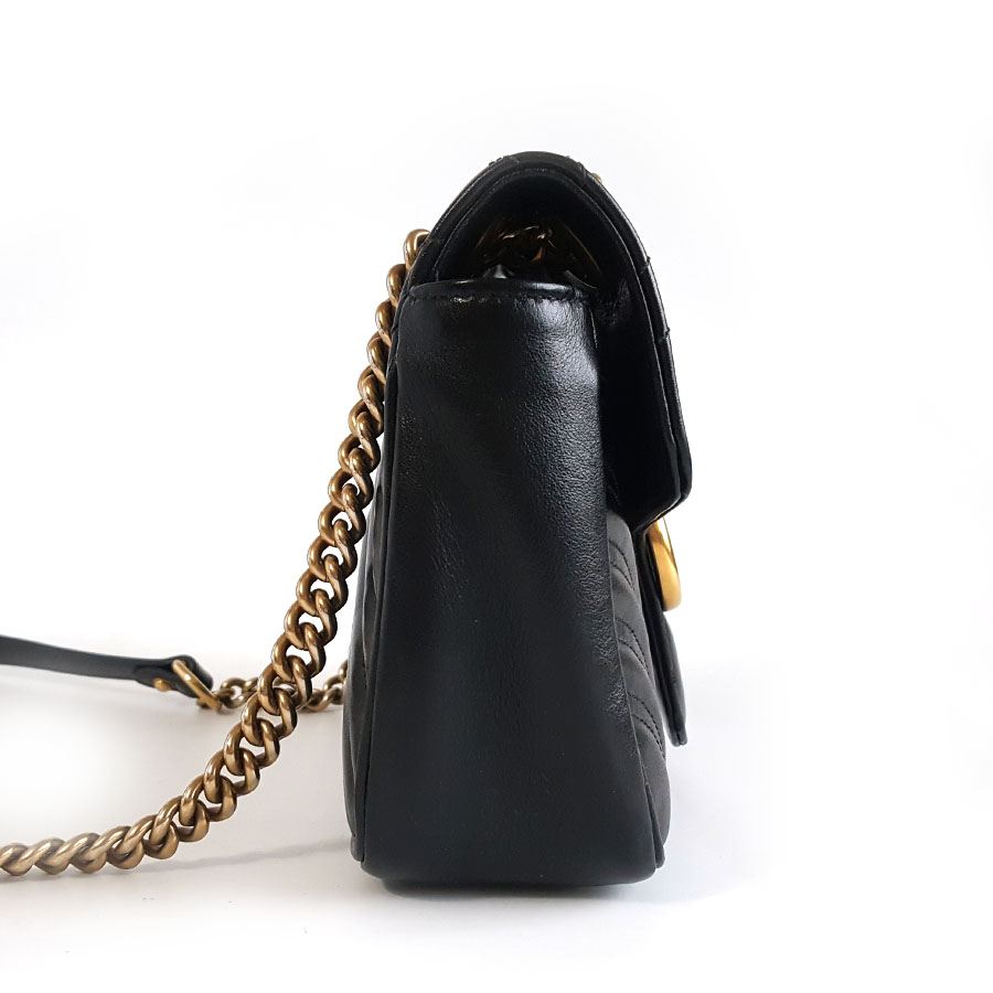 【95新】Gucci古驰Marmont系列443497黑金马蒙26链条包单肩斜挎包女士160326AK21