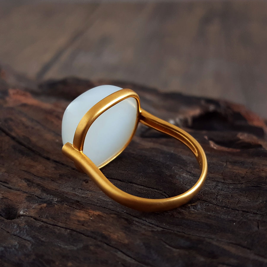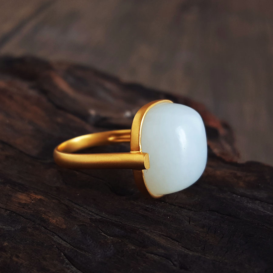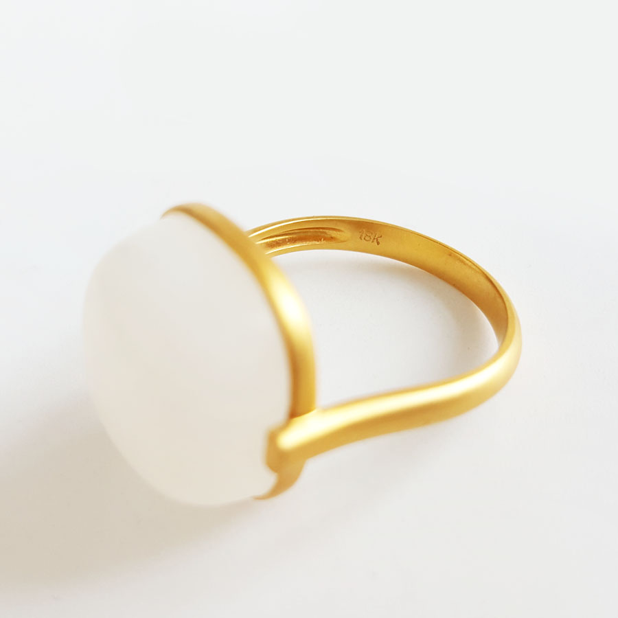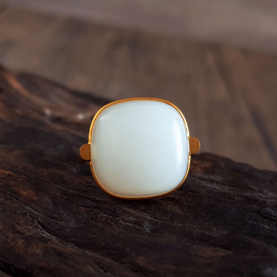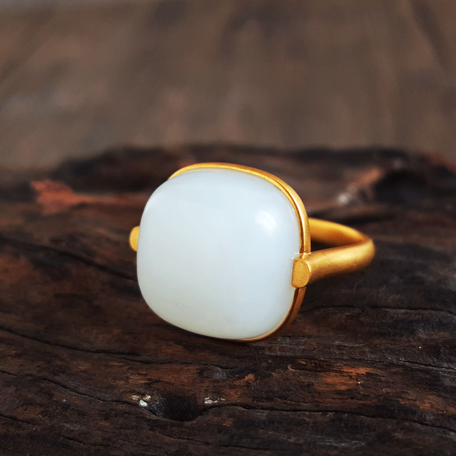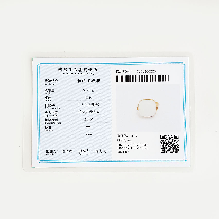 名称 | AU750黄金镶天然细腻新疆籽料一级白油润度佳蛋面和田玉戒指 |