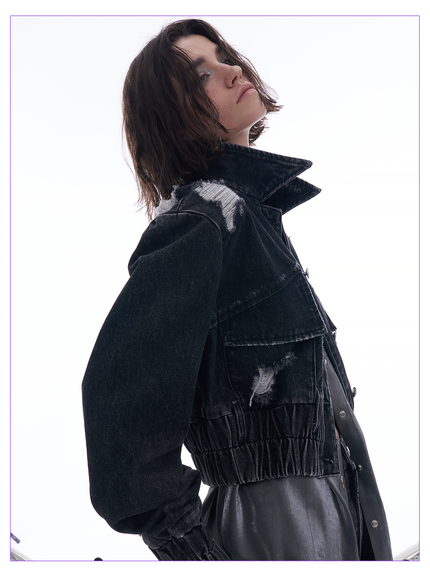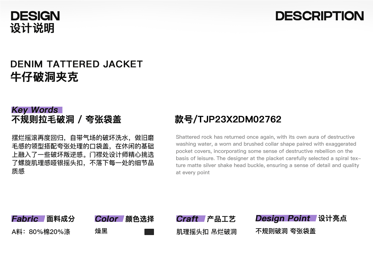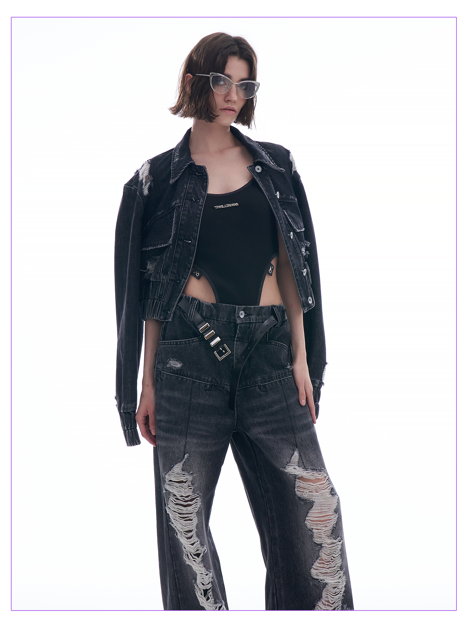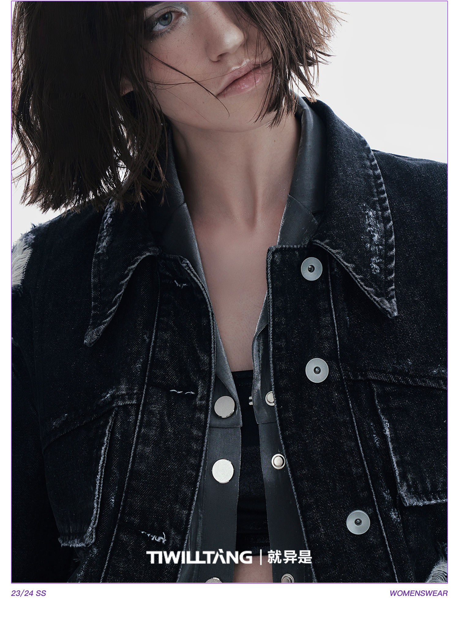 启世录TIWILLTANG “摇滚余晖”破洞牛仔外套女春秋显瘦水洗夹克