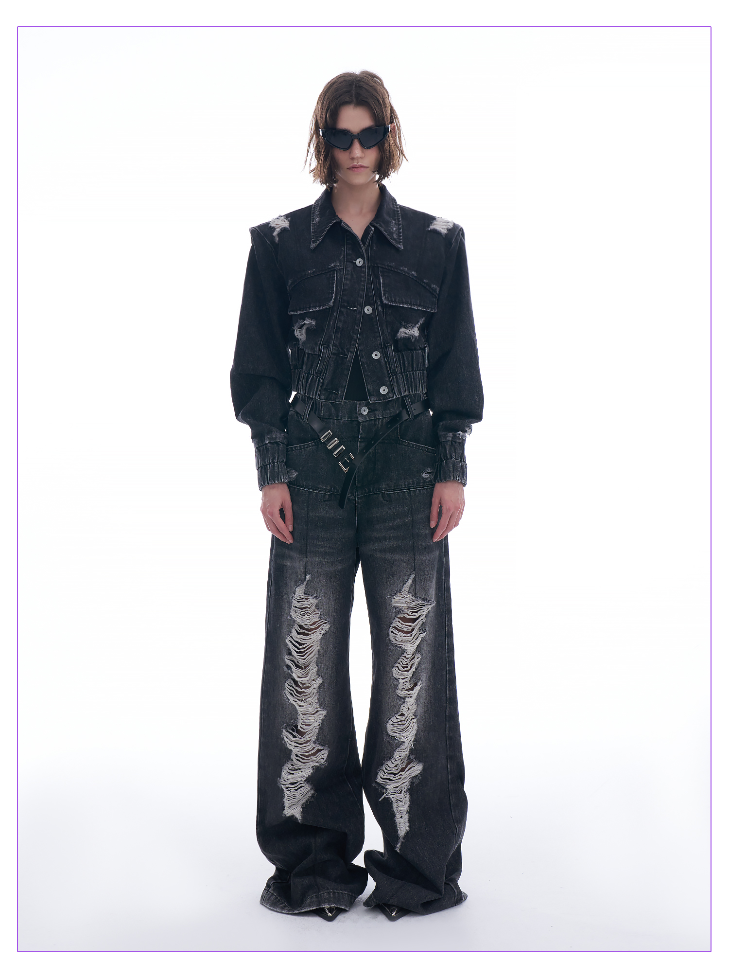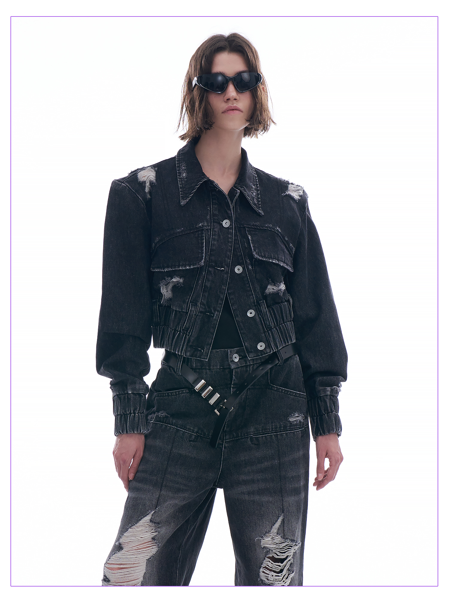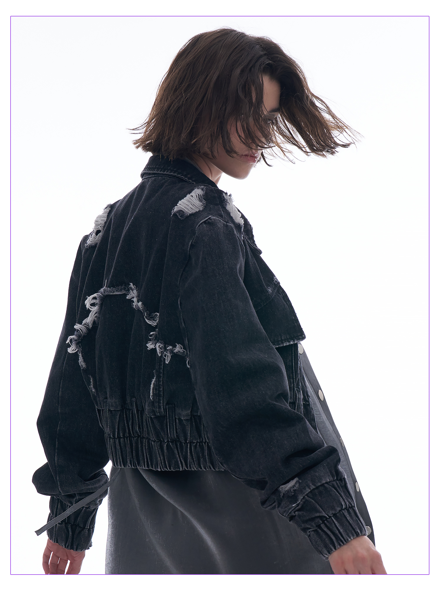 启世录TIWILLTANG “摇滚余晖”破洞牛仔外套女春秋显瘦水洗夹克