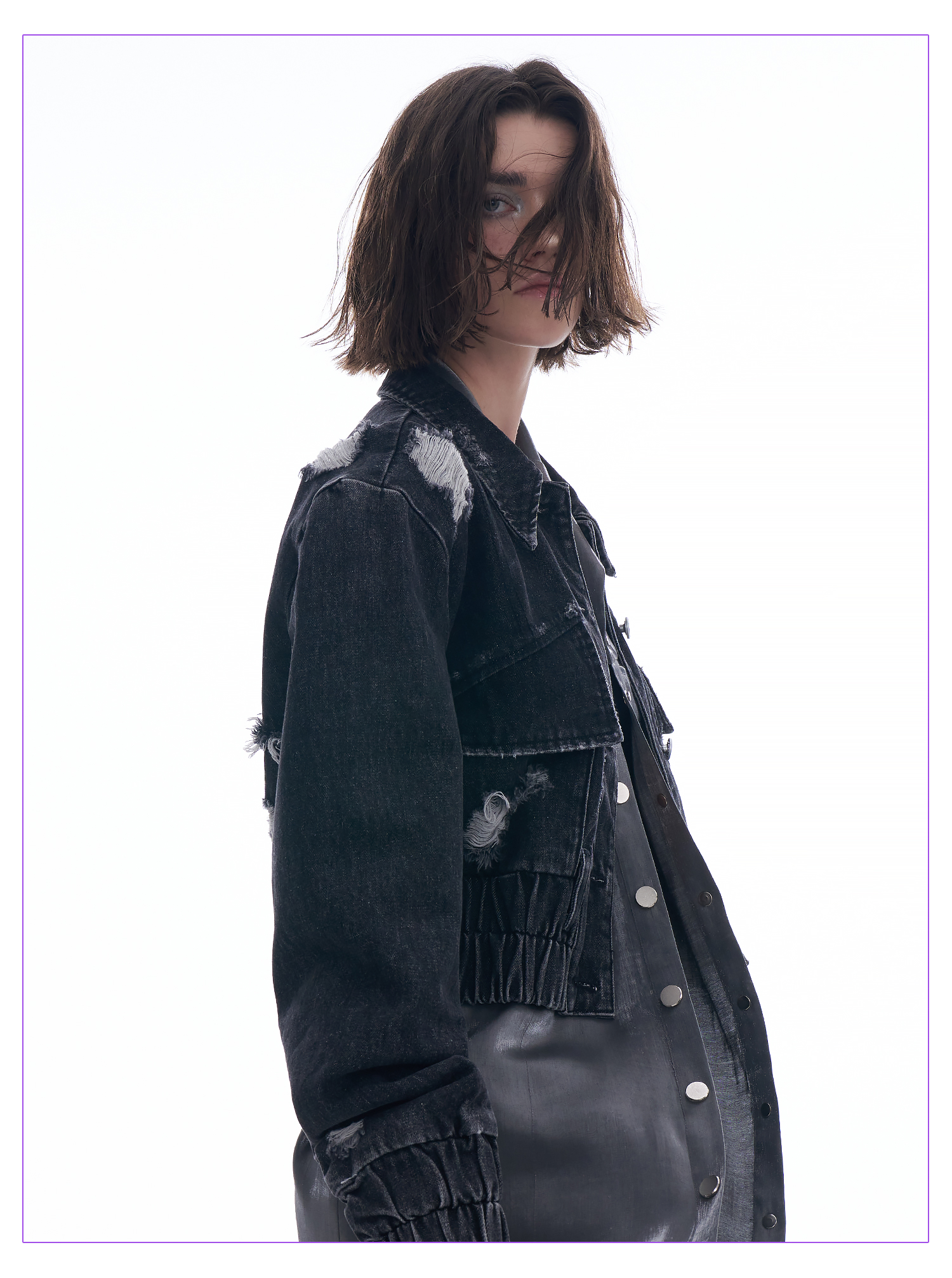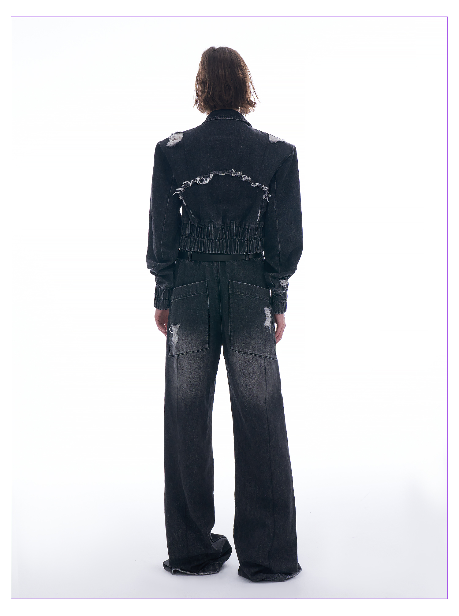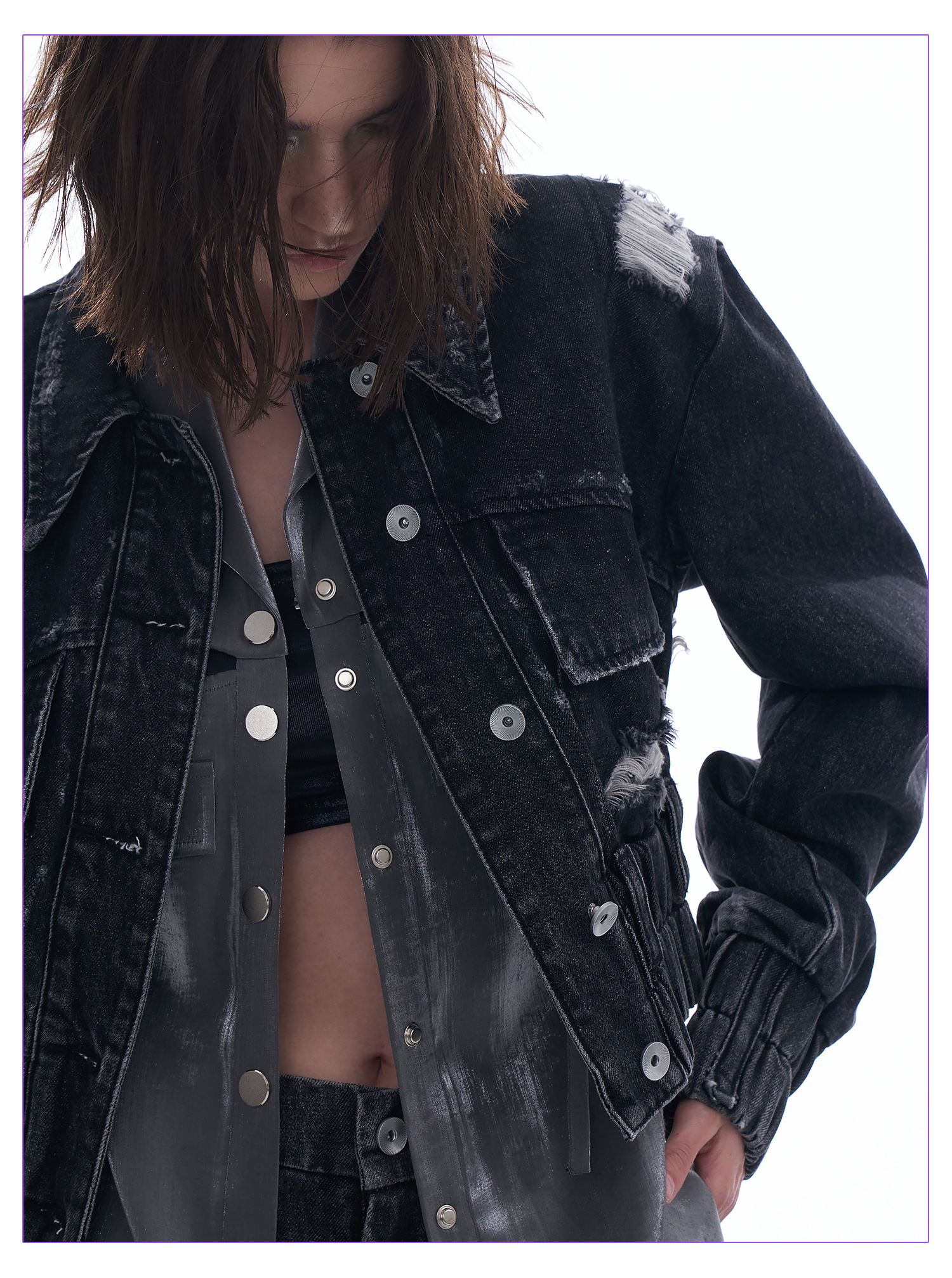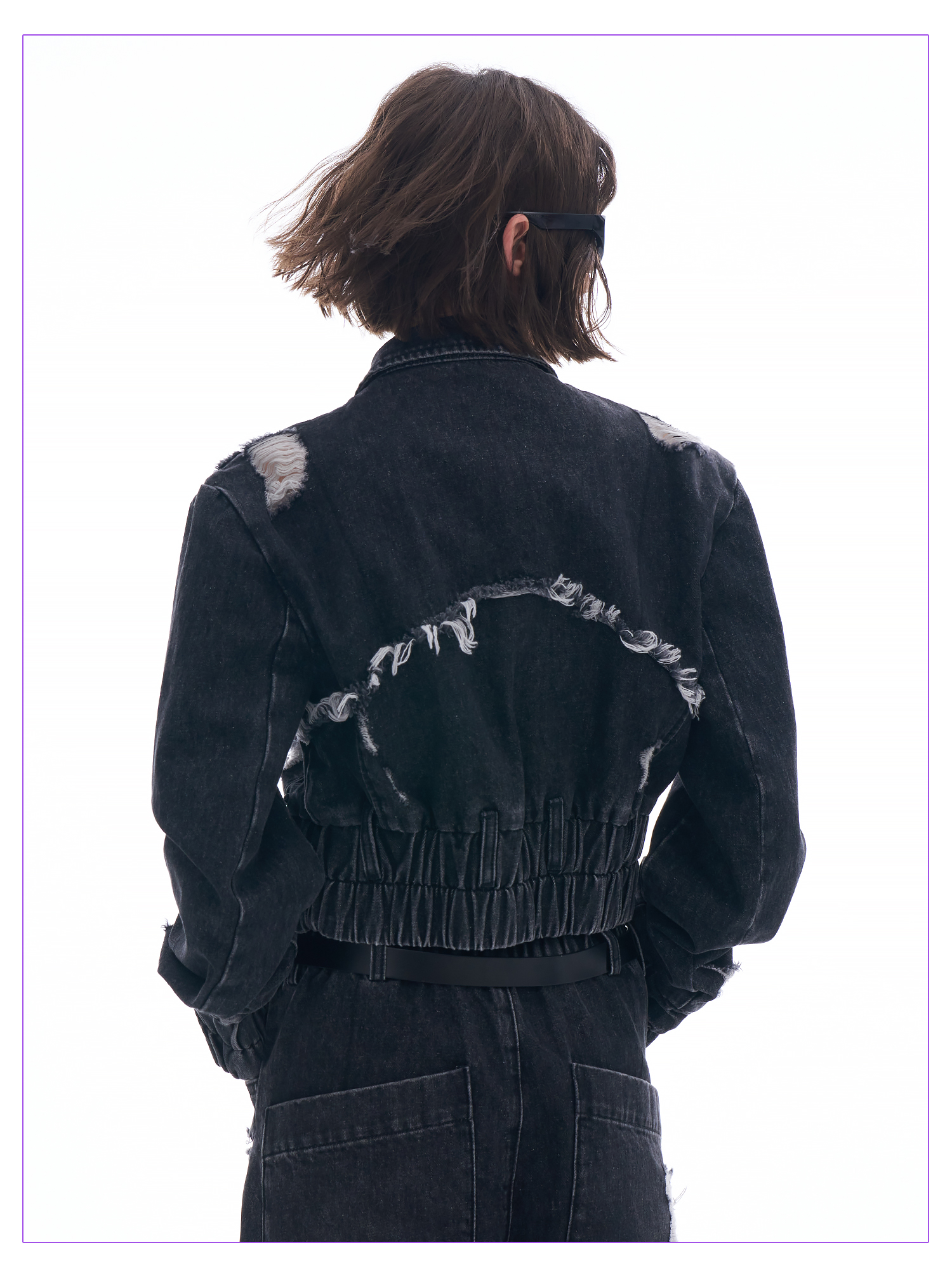 启世录TIWILLTANG “摇滚余晖”破洞牛仔外套女春秋显瘦水洗夹克