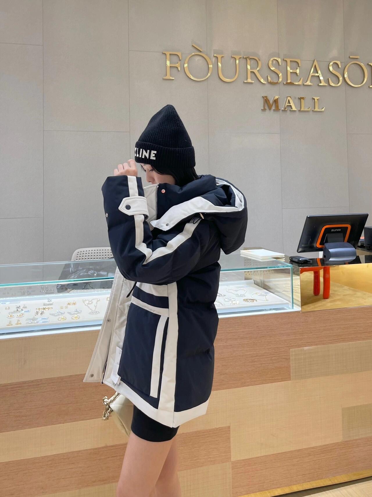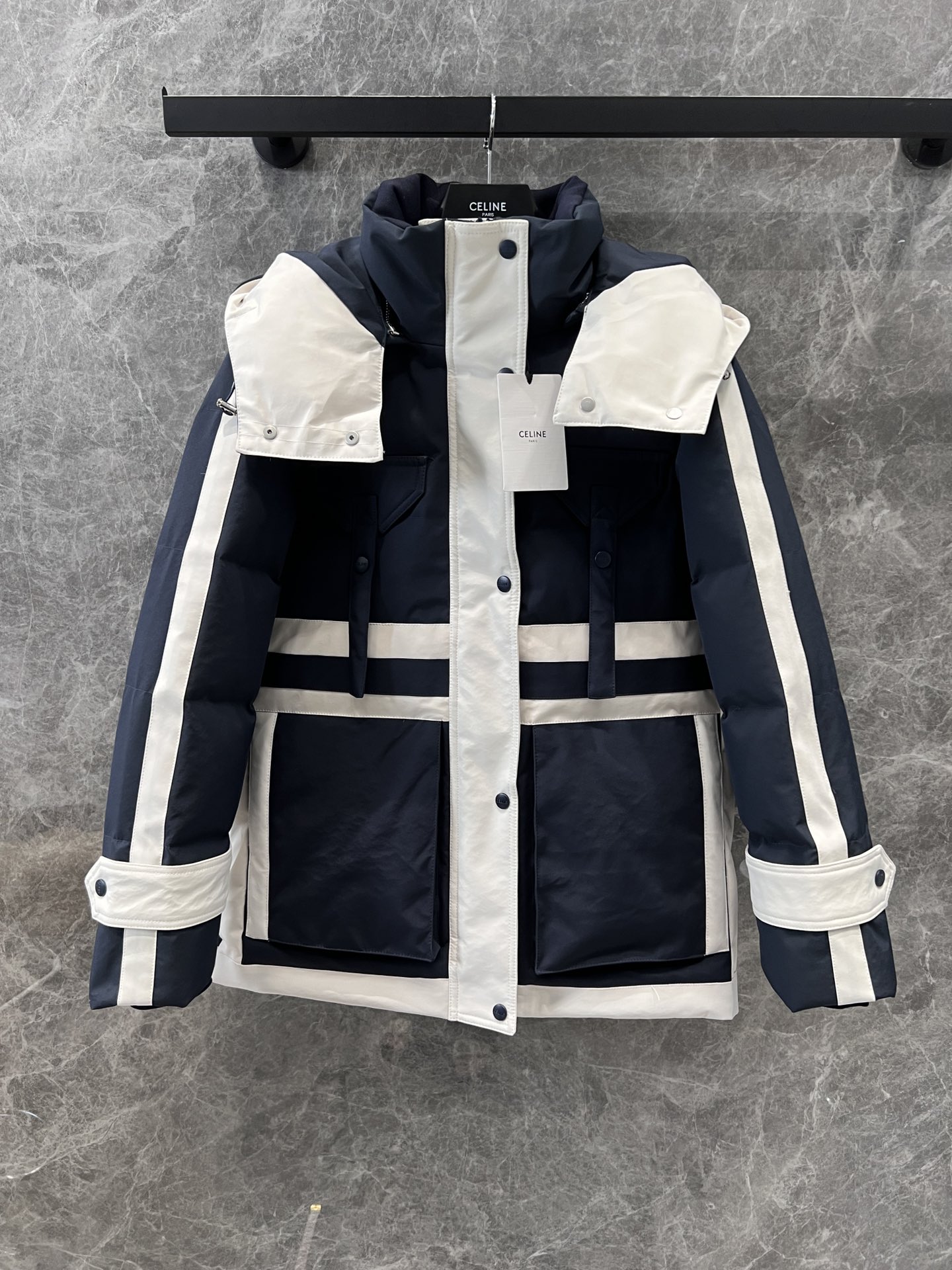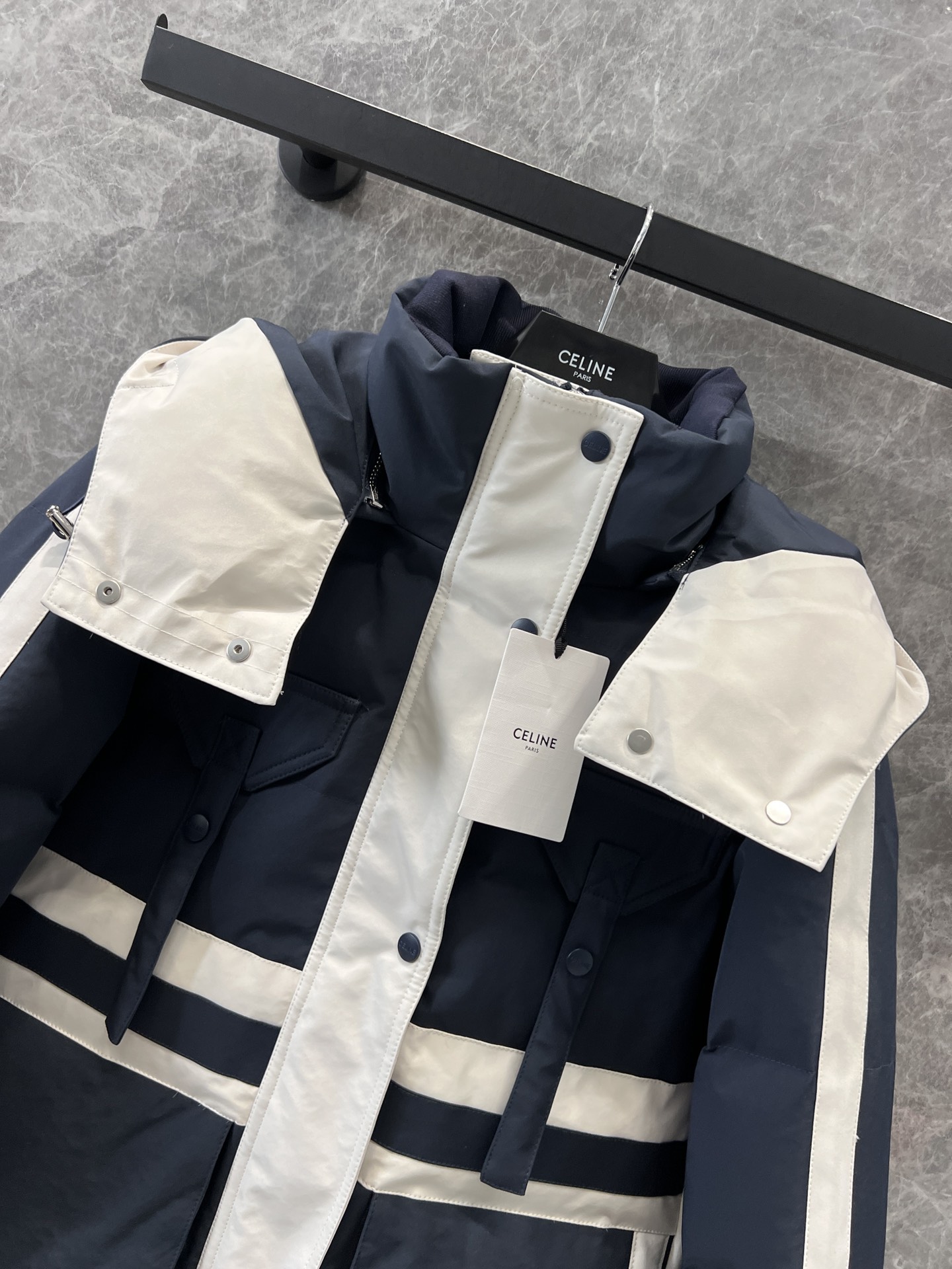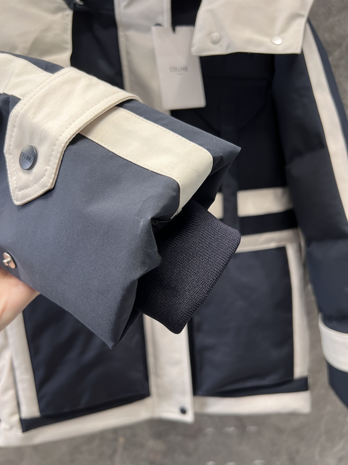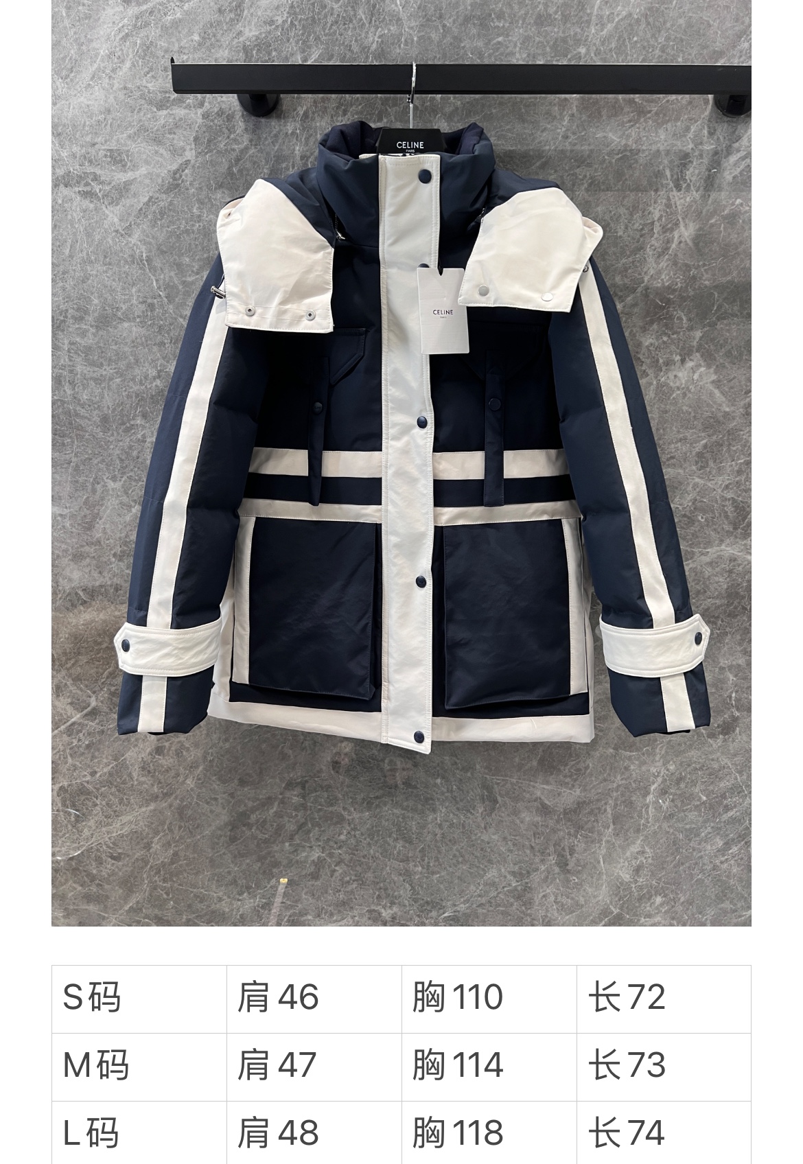 Celin* 24Fw秋冬新款 连帽立领工装风派克连帽羽绒服外套丨⚠独家高版出品!工装风 时尚新宠❤时髦又保暖 耐的款式 上身整个型廓感非常好 很藏肉 基本上各种身形都适穿 撞色的设计不会过于呆板沉闷 循序渐进的绗缝很时尚!现货发售S/M/L