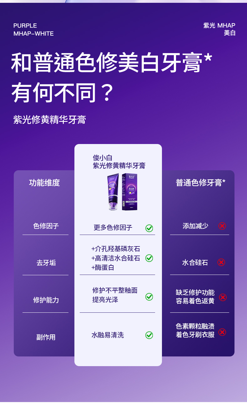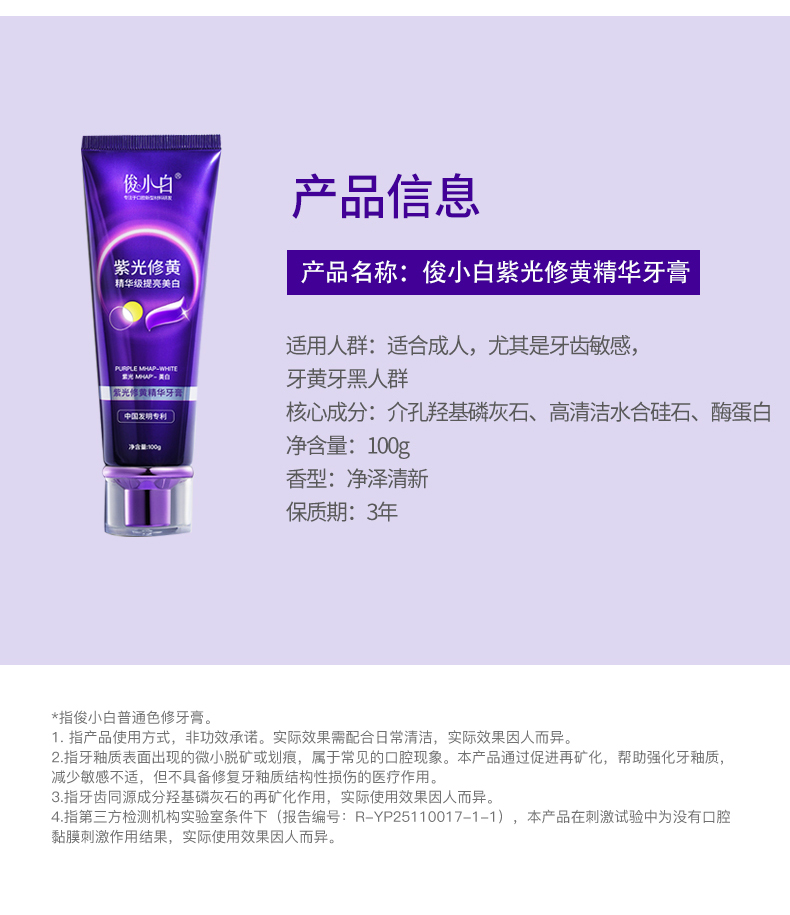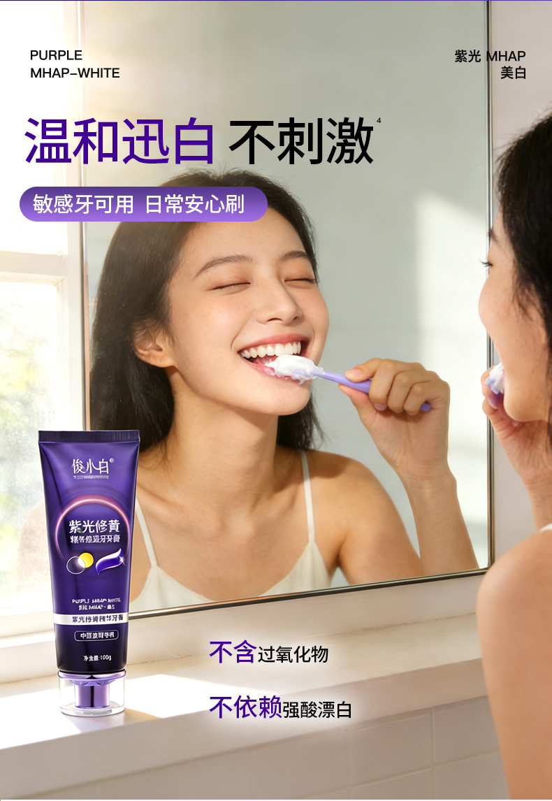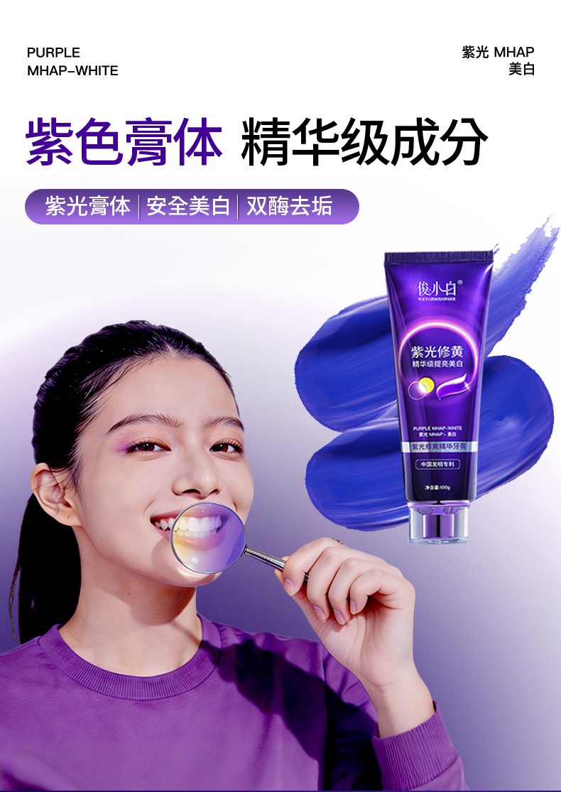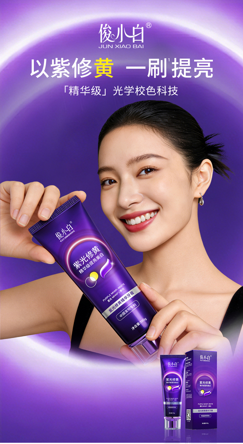 【紫光修黄 三效合一】以紫修黄 一刷提亮 -俊小白紫光修黄精华牙膏
