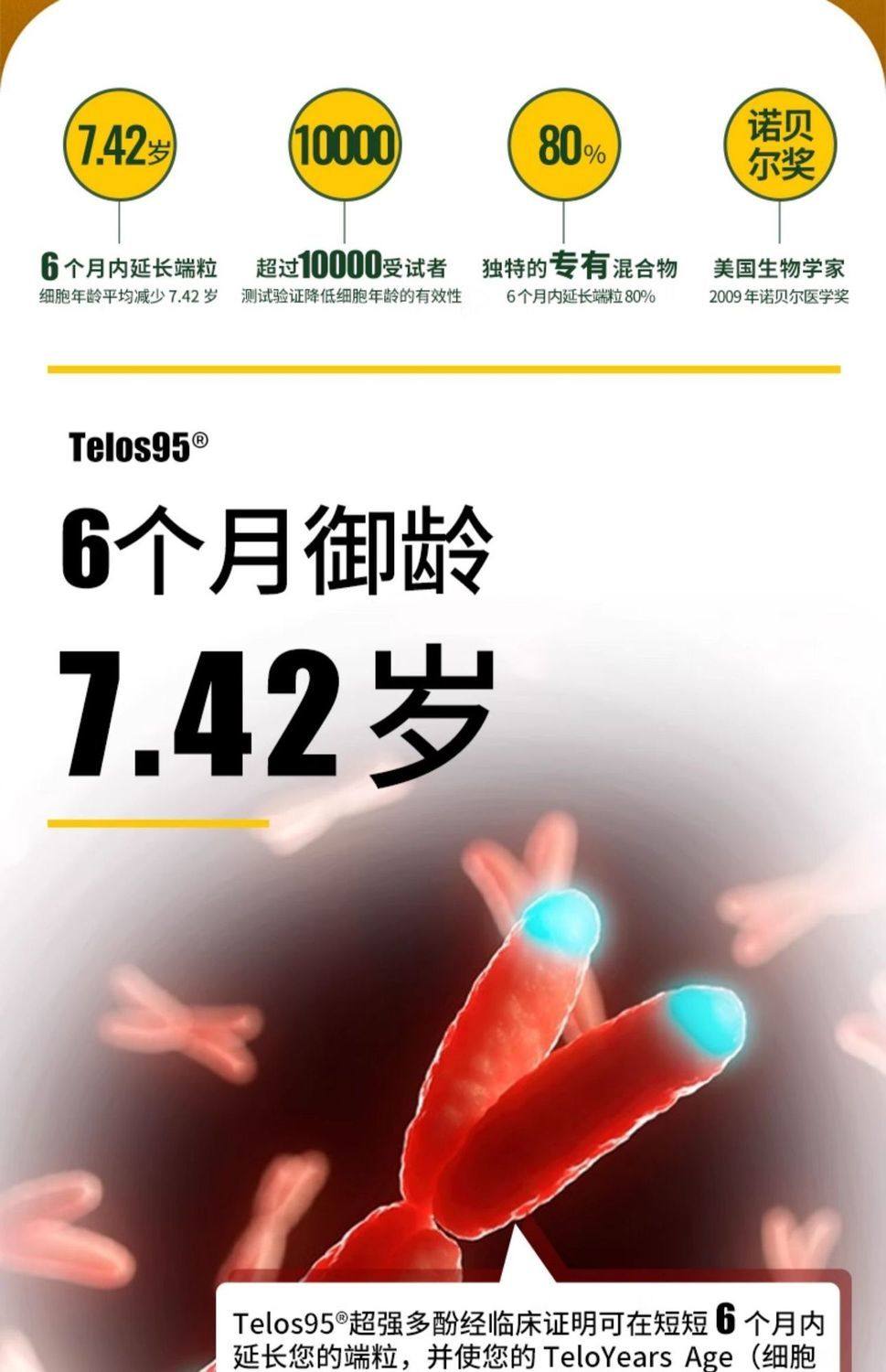 美国进口TeloX端粒酶延长端粒体DNA序列线粒体细胞保护染色体