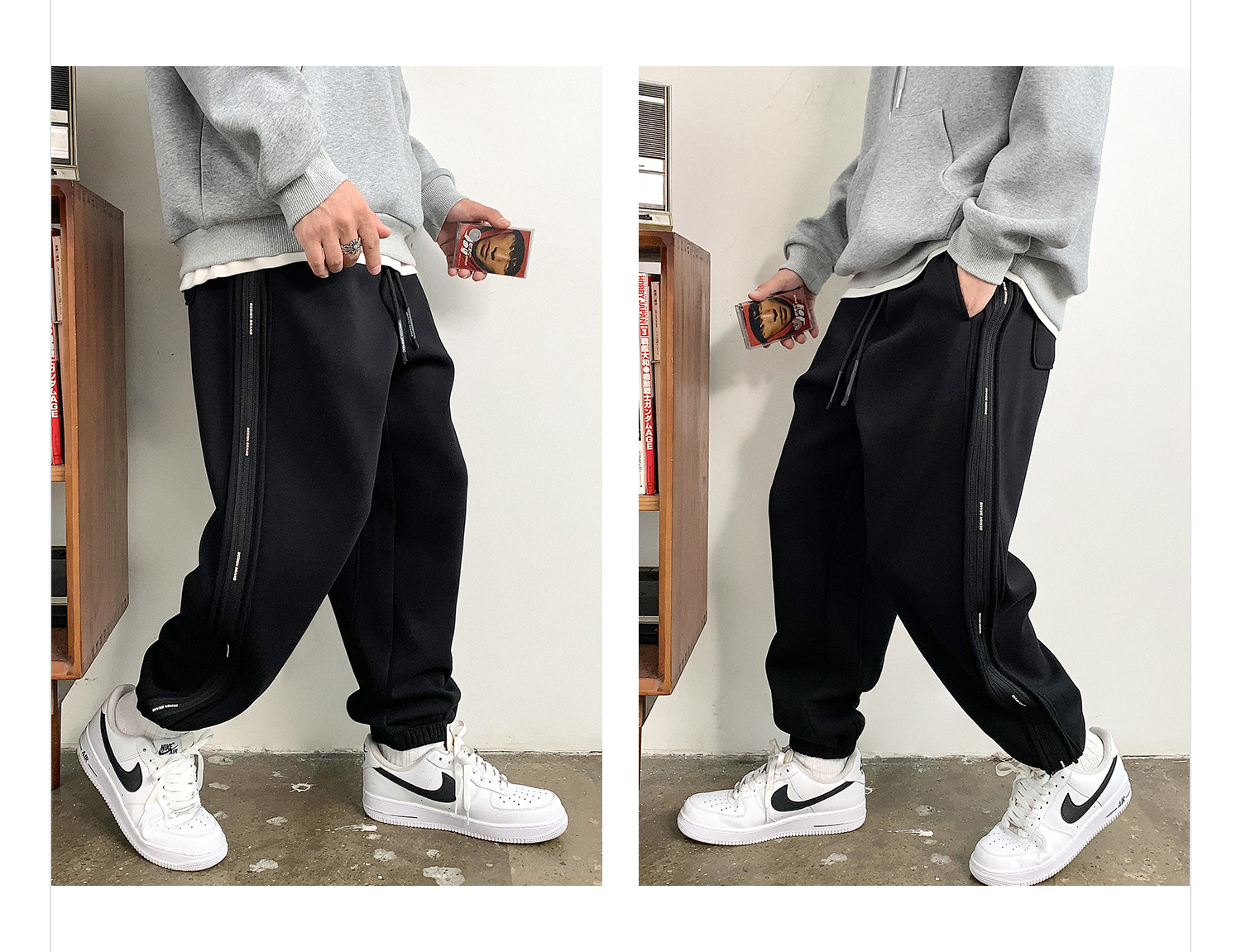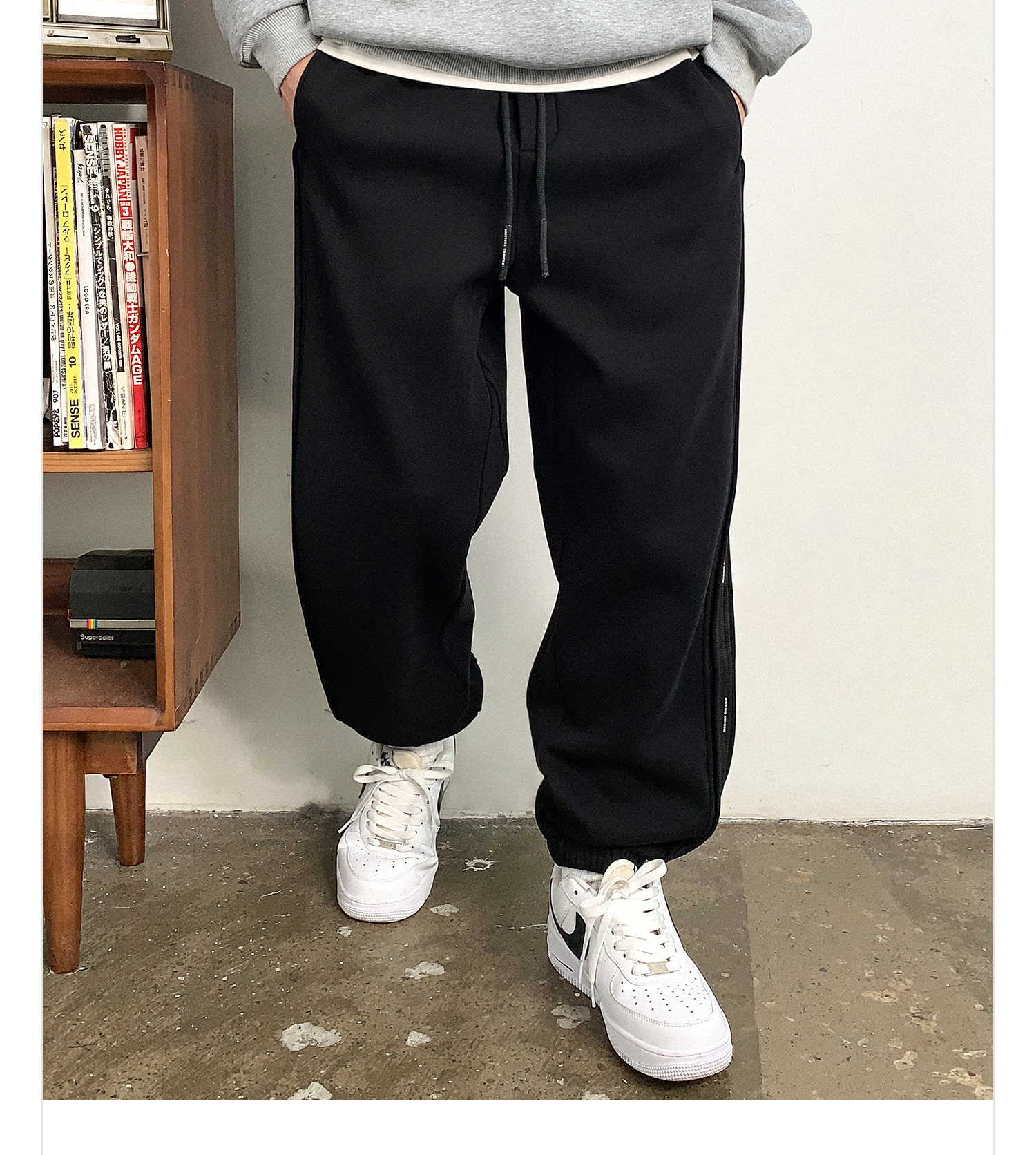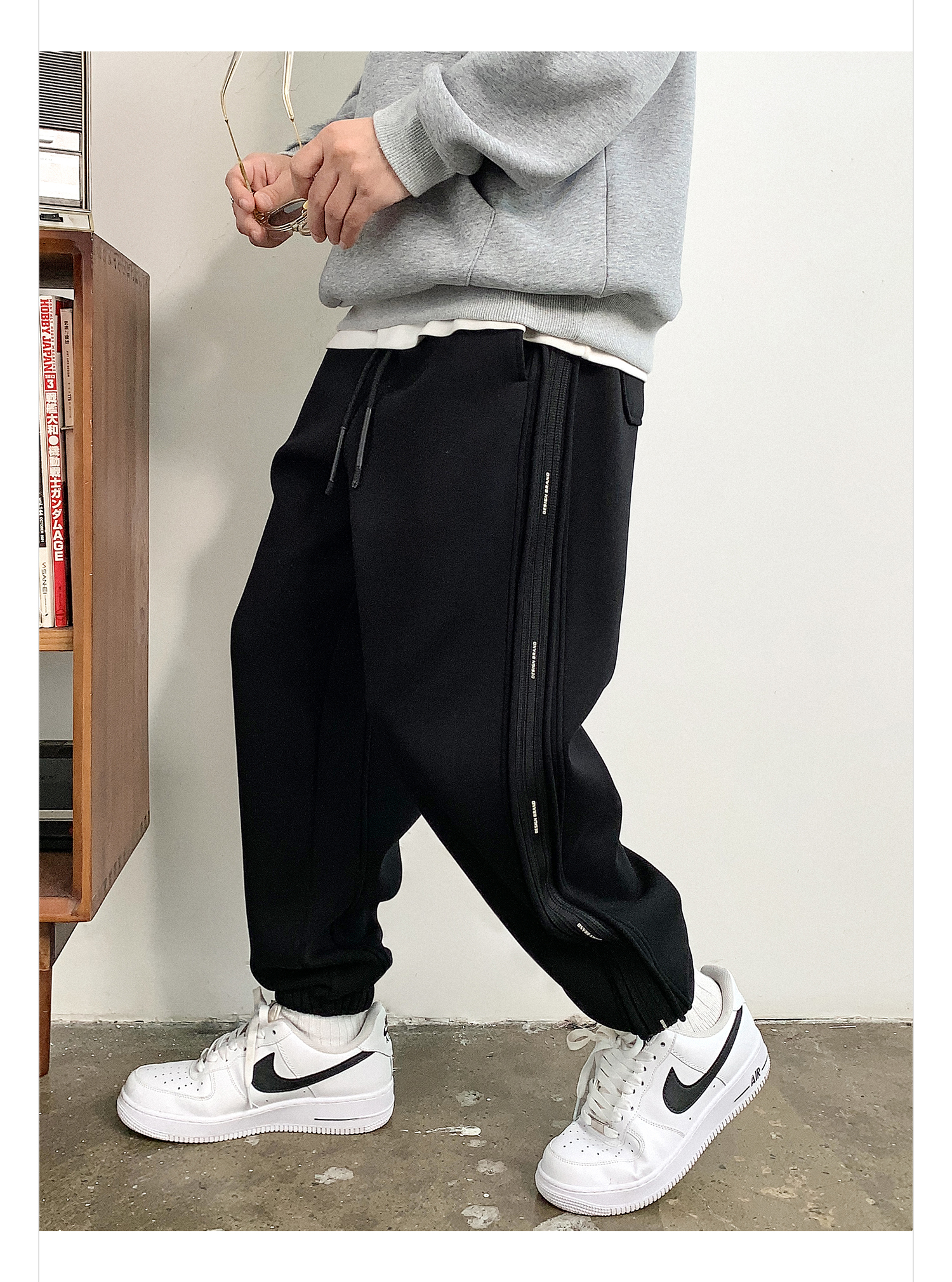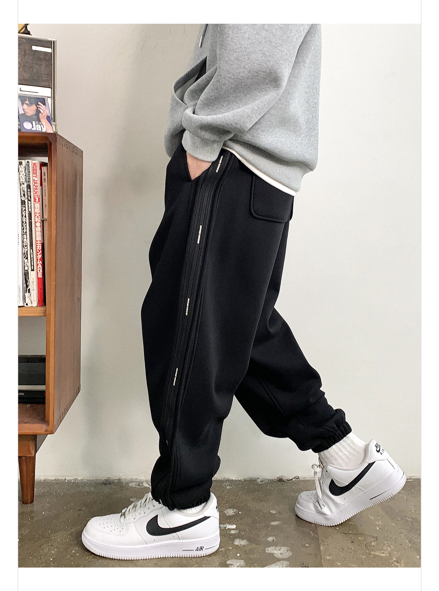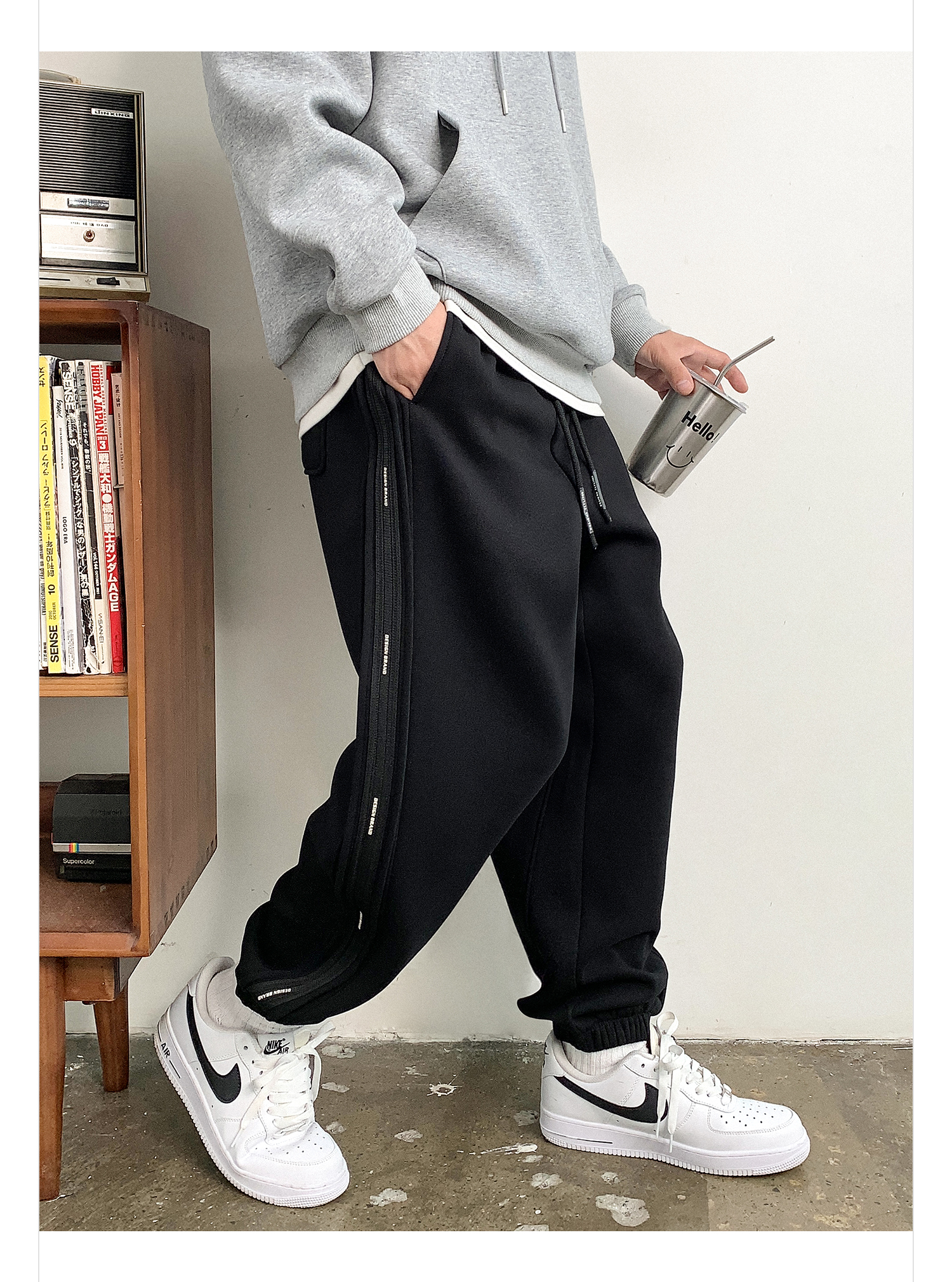 徐太浪时尚痞帅黑色运动卫裤男秋冬季加绒加厚宽松束脚哈伦裤长裤