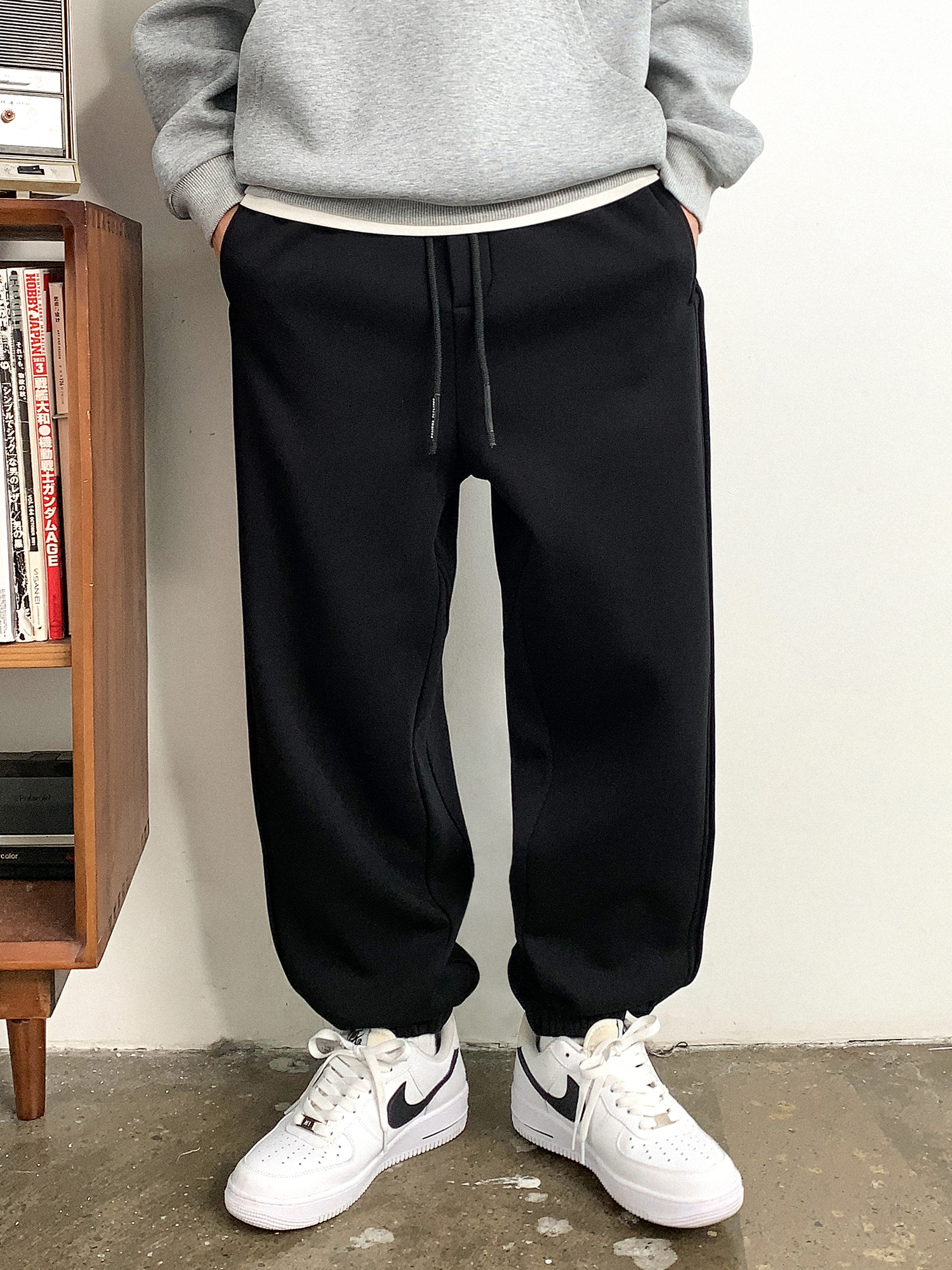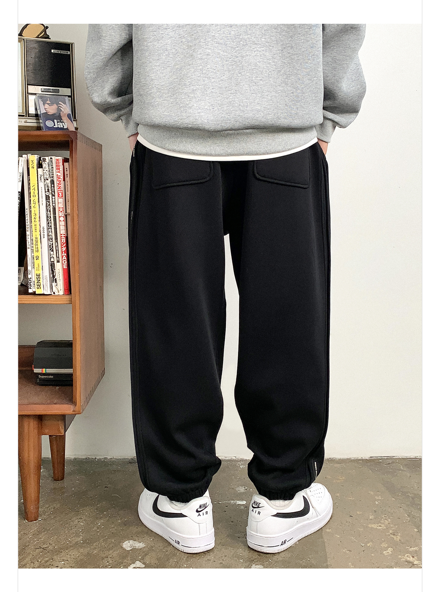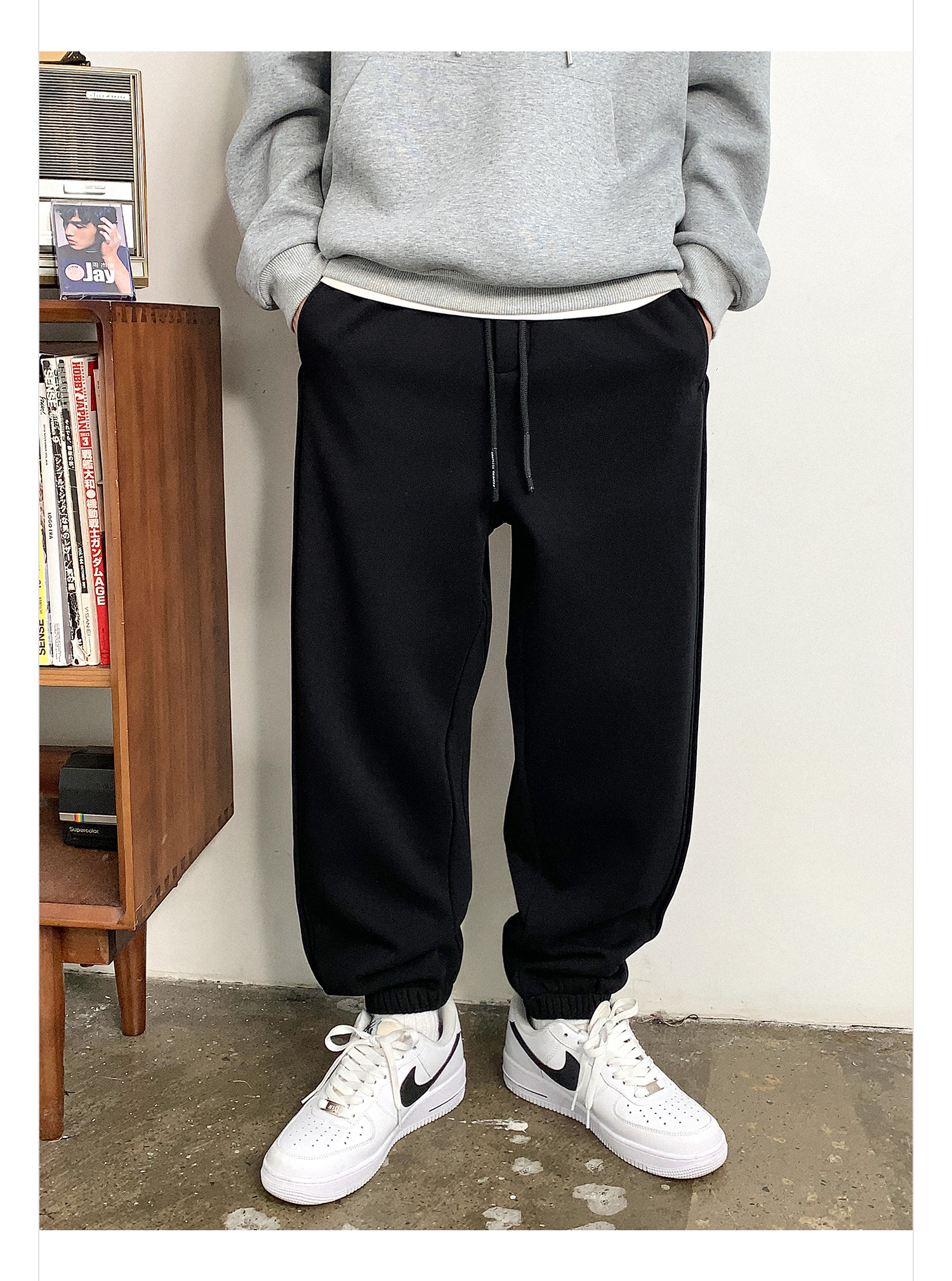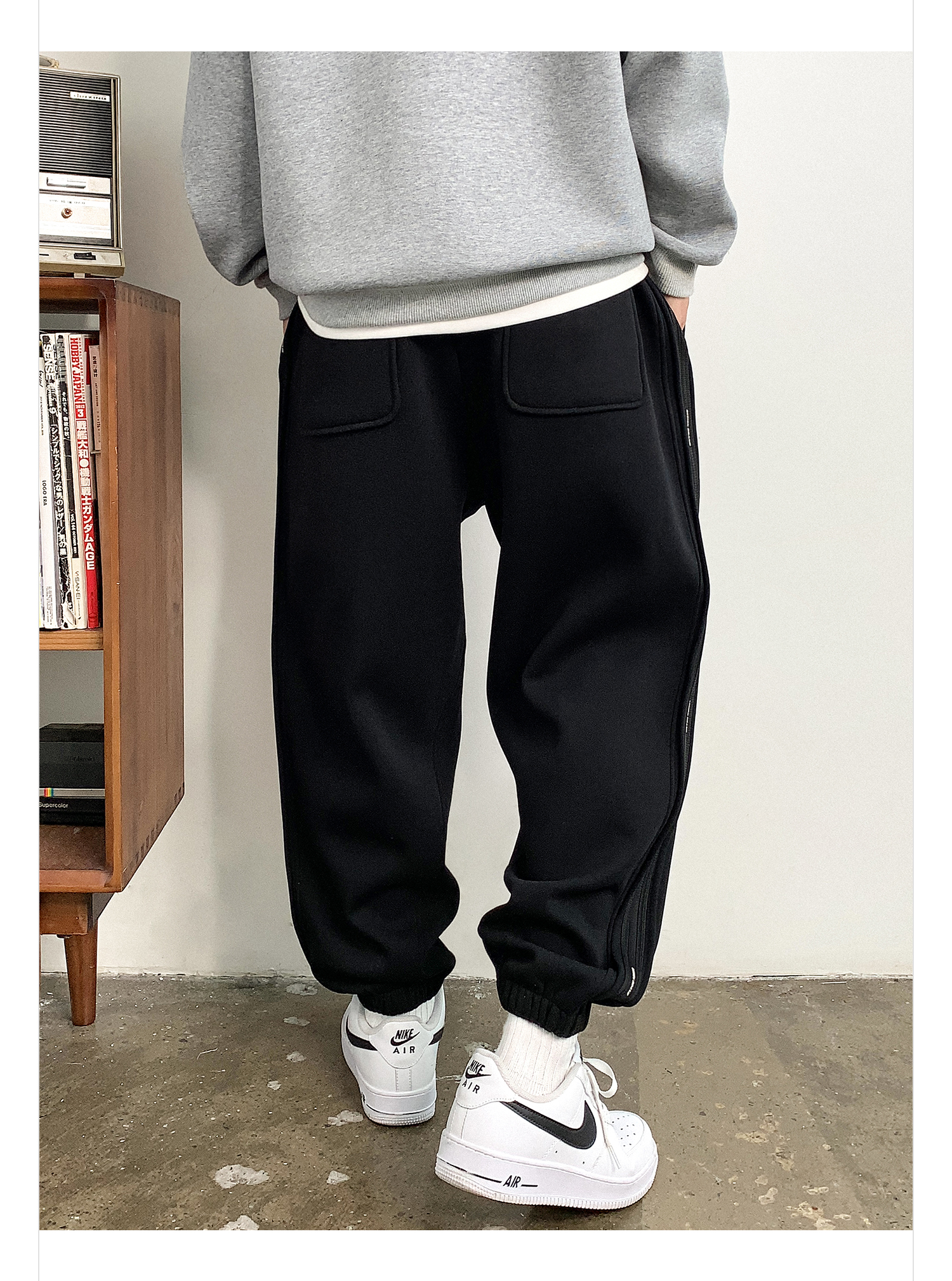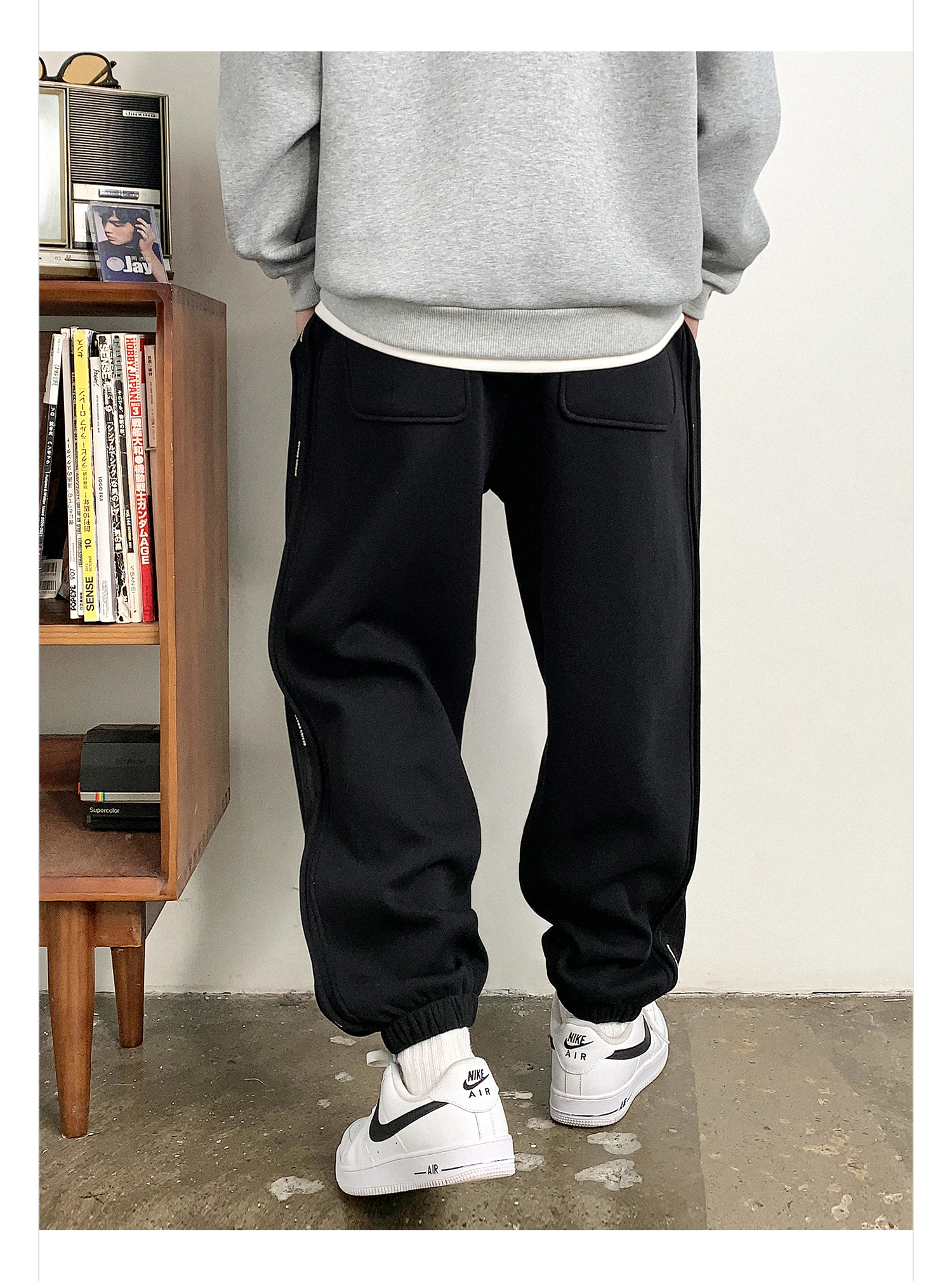 徐太浪时尚痞帅黑色运动卫裤男秋冬季加绒加厚宽松束脚哈伦裤长裤