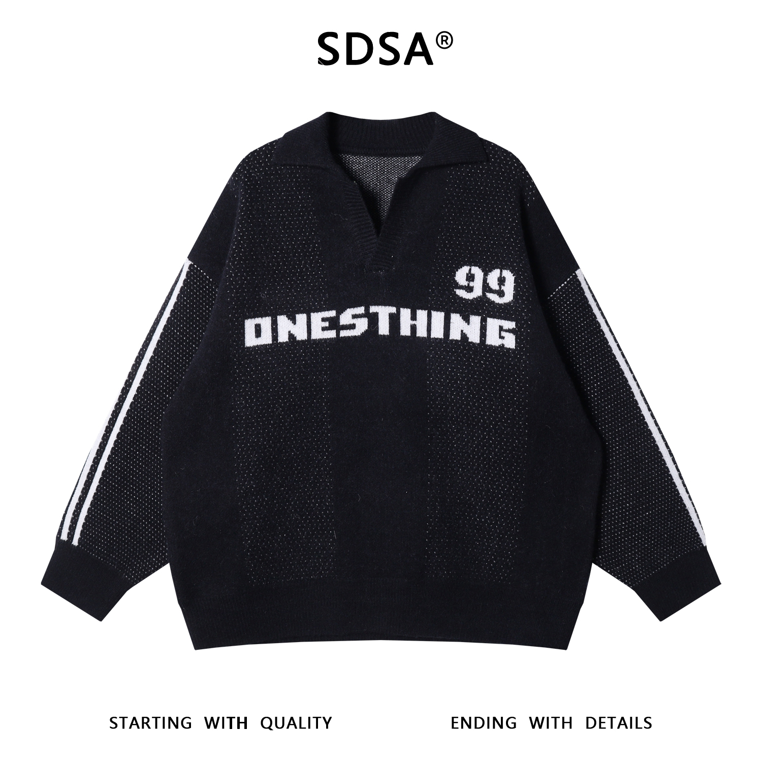 88115SDSA男士秋冬新款痞帅男装美式撞色字母数字翻领毛衣慵懒风百搭