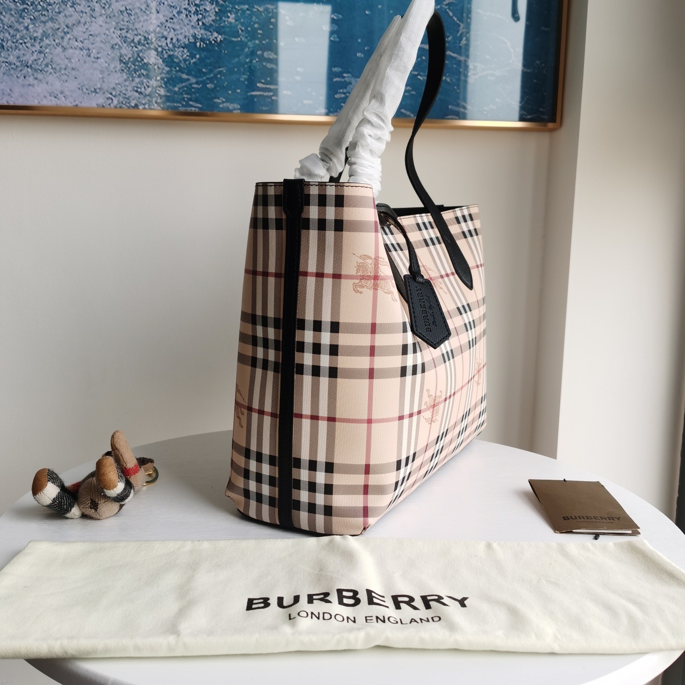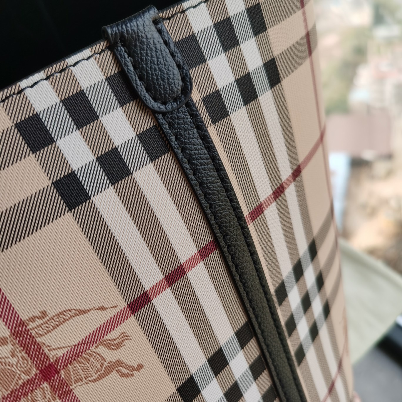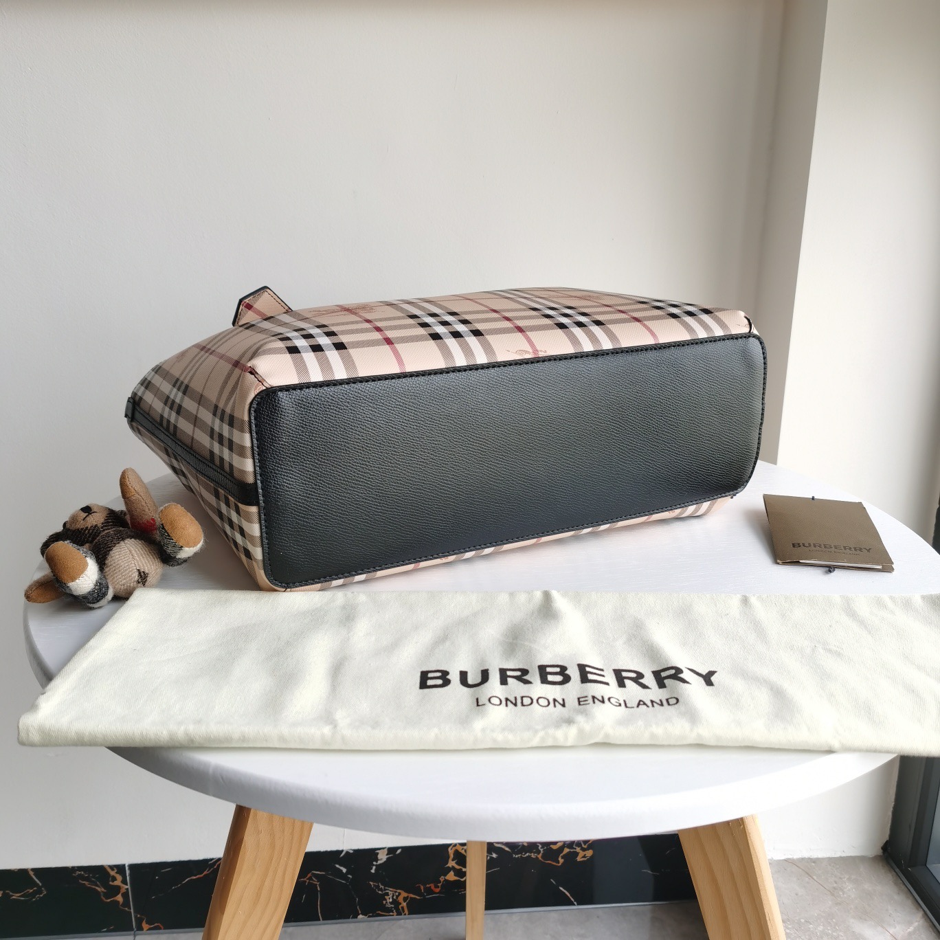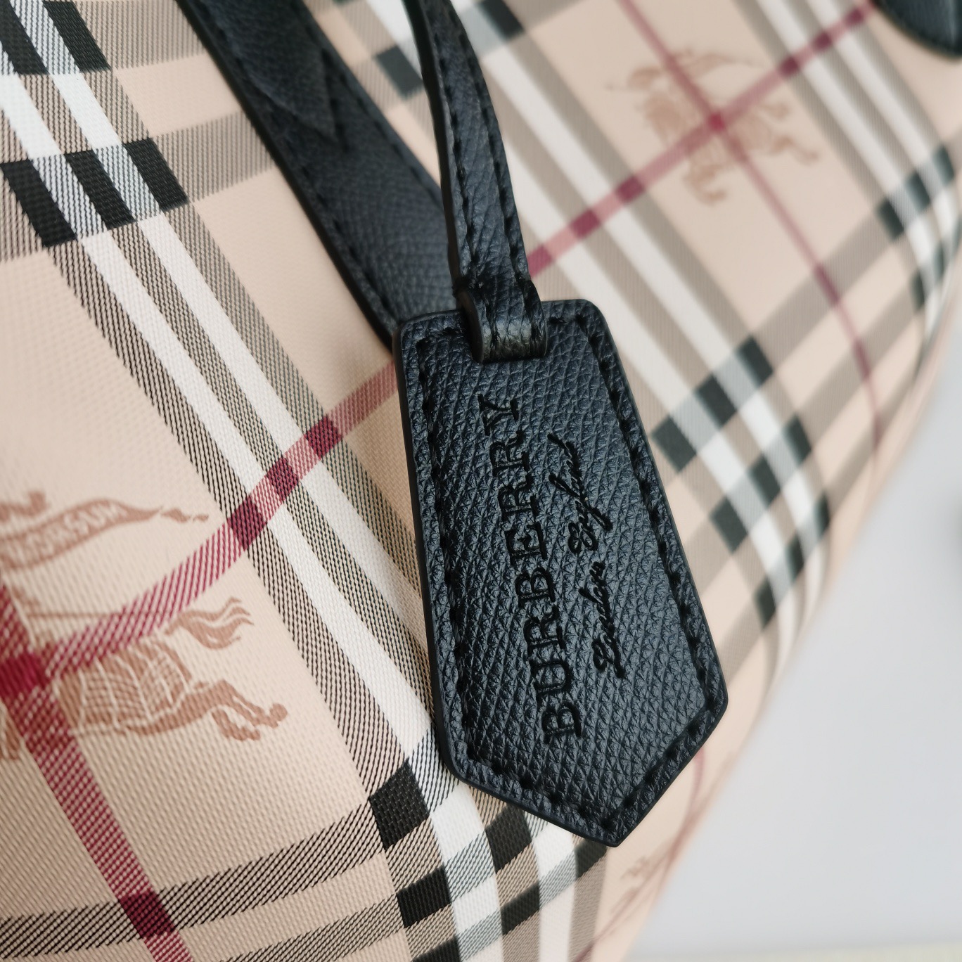 简约利落的实用功能型托特包,采用品牌标志性 haymarket格纹织物与考究皮革制成 将其内侧外翻,即可作为经典款皮包使用托特包采用无口袋设计,充裕的内部空间轻松容纳日常随身物品